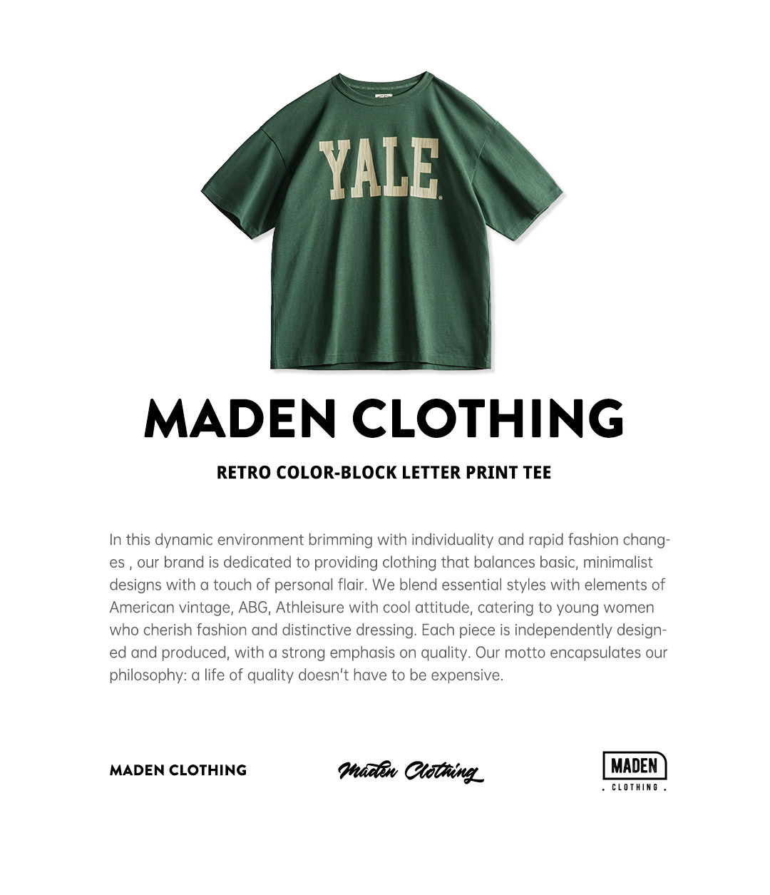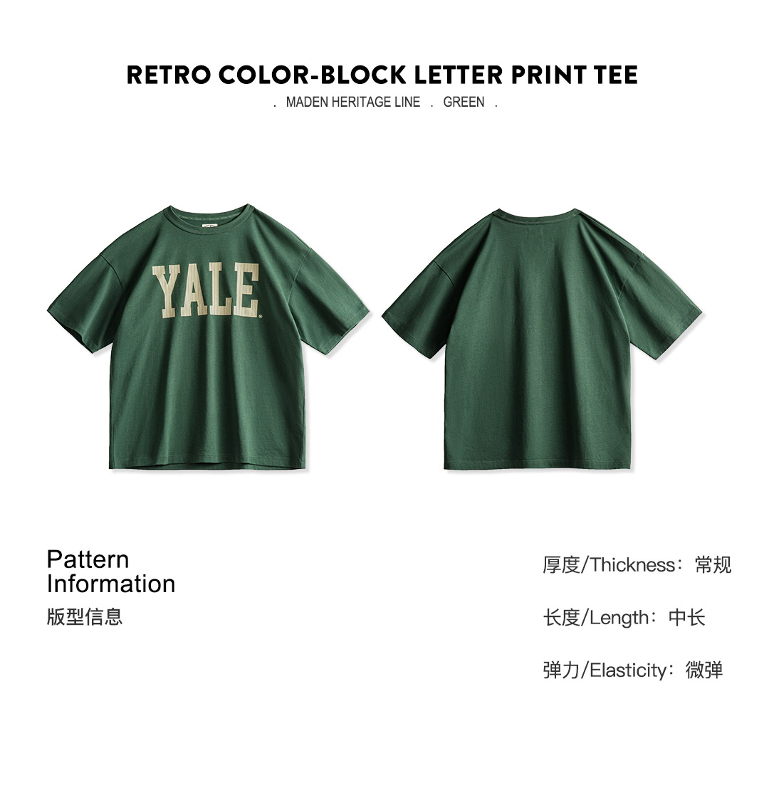 马登女装美式撞色字母印花T恤学院风耶鲁大学纯棉短袖上衣女夏季