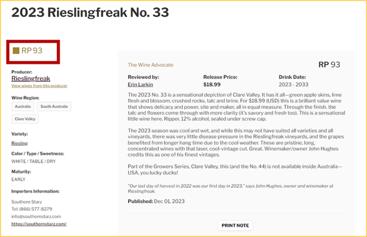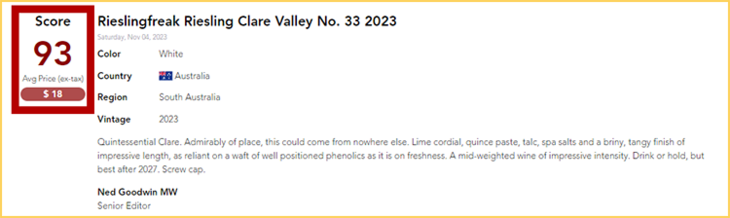 RP&JS双93高分!澳洲当红炸子鸡!雷司令怪杰克莱尔谷33号干白 Rieslingfreak No.33 Clare Valley Riesling 2023