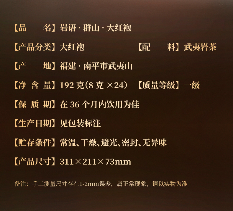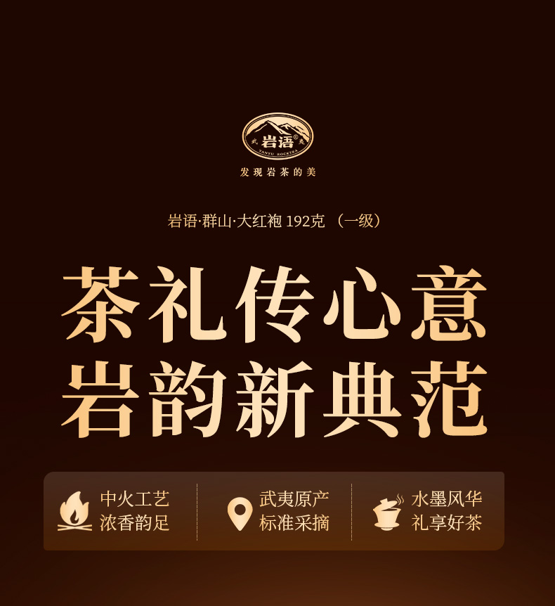 岩语 群山大红袍礼盒装 武夷山岩茶一级茶叶正宗中火乌龙茶送礼192g