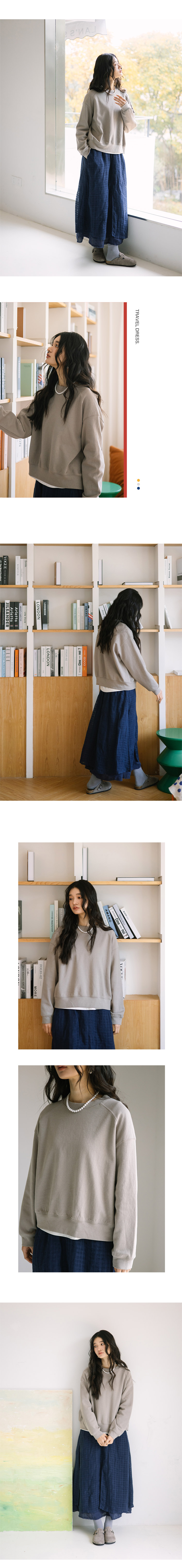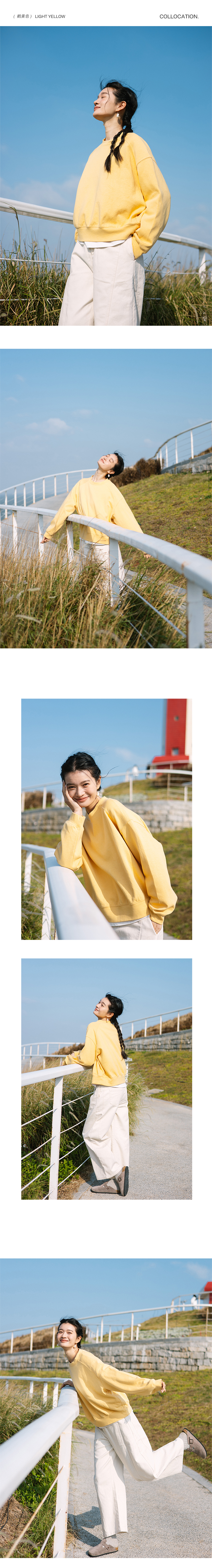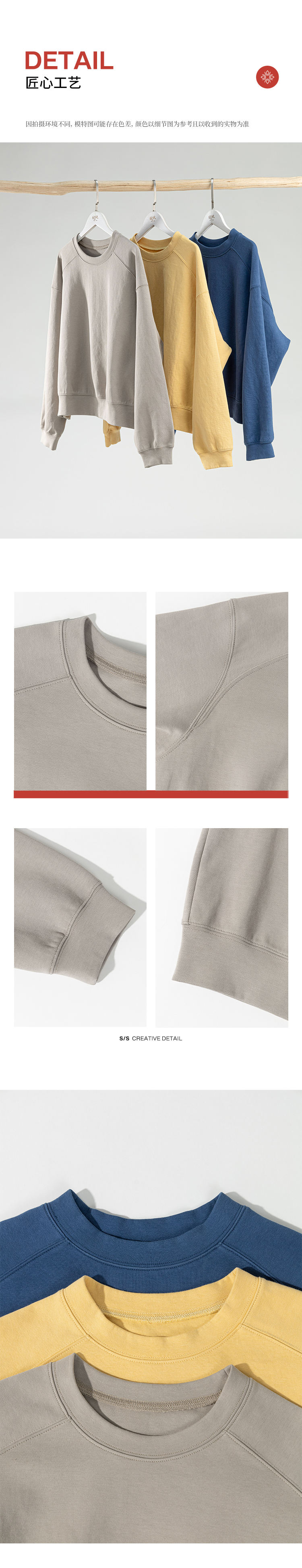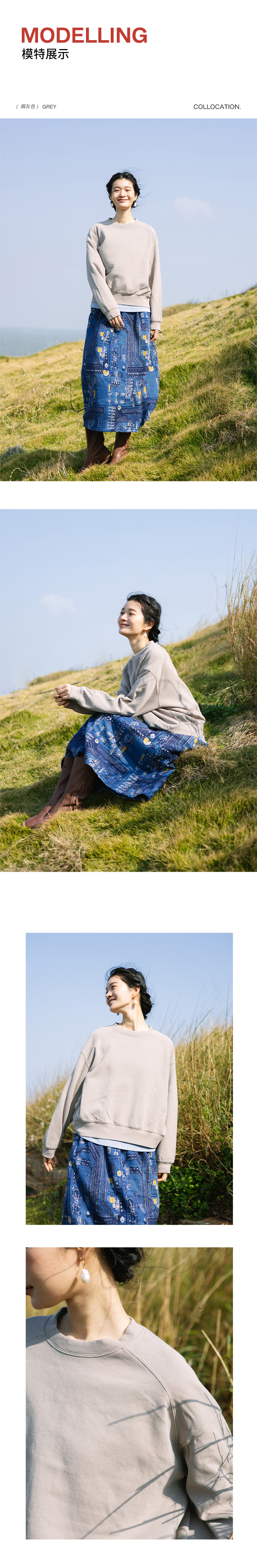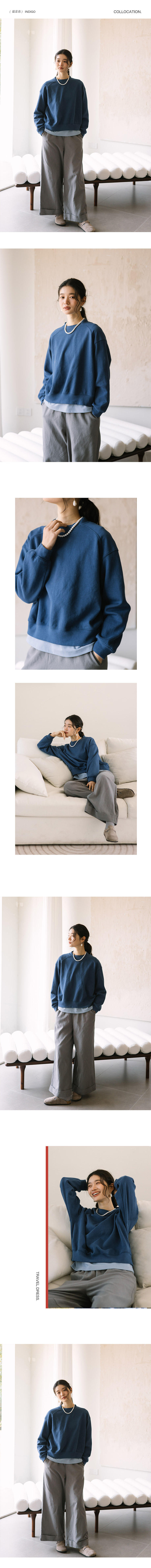 绽放旅行女装063朵/纯棉经典廓形感圆领插肩套头上衣透气休闲卫衣