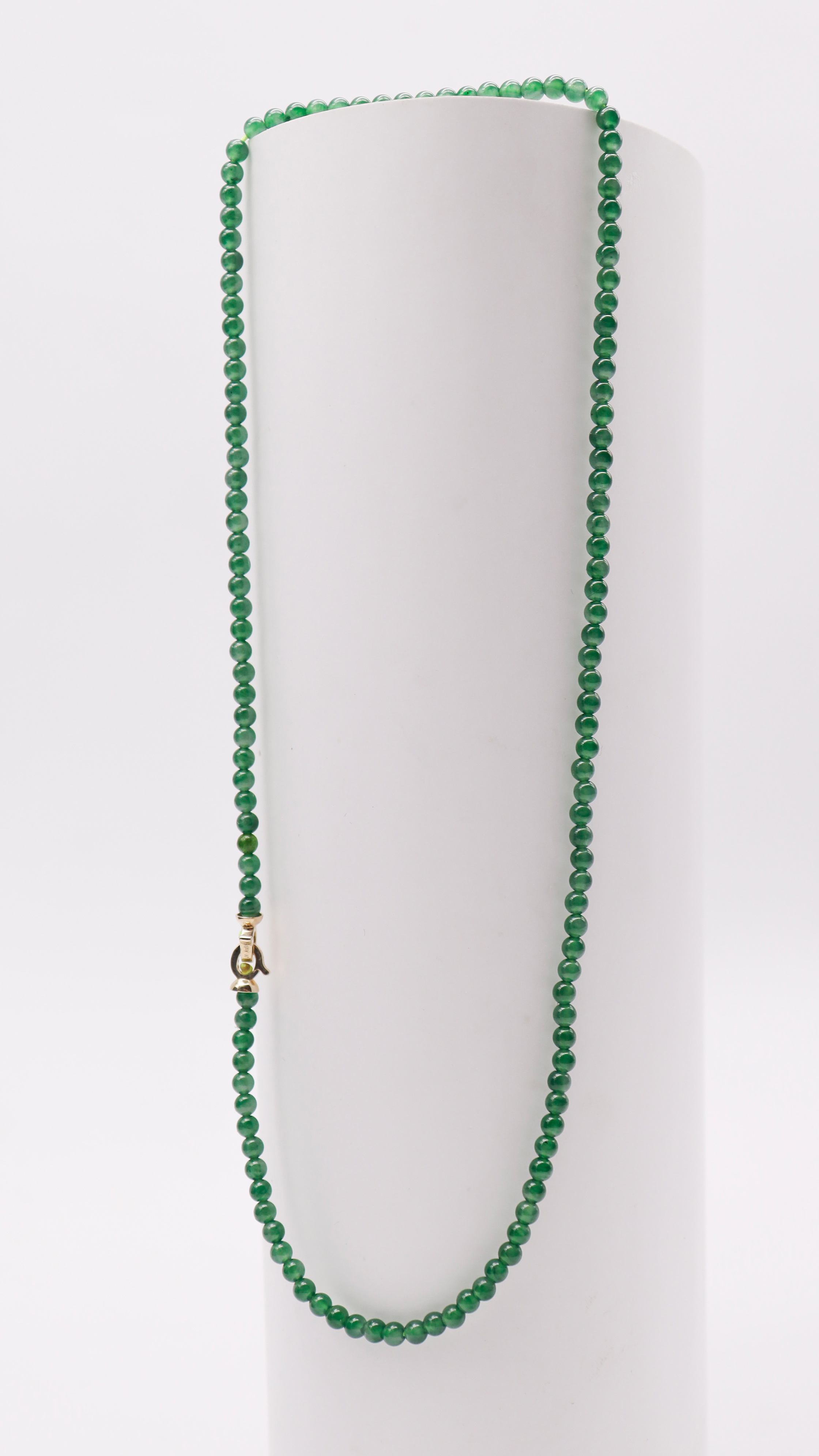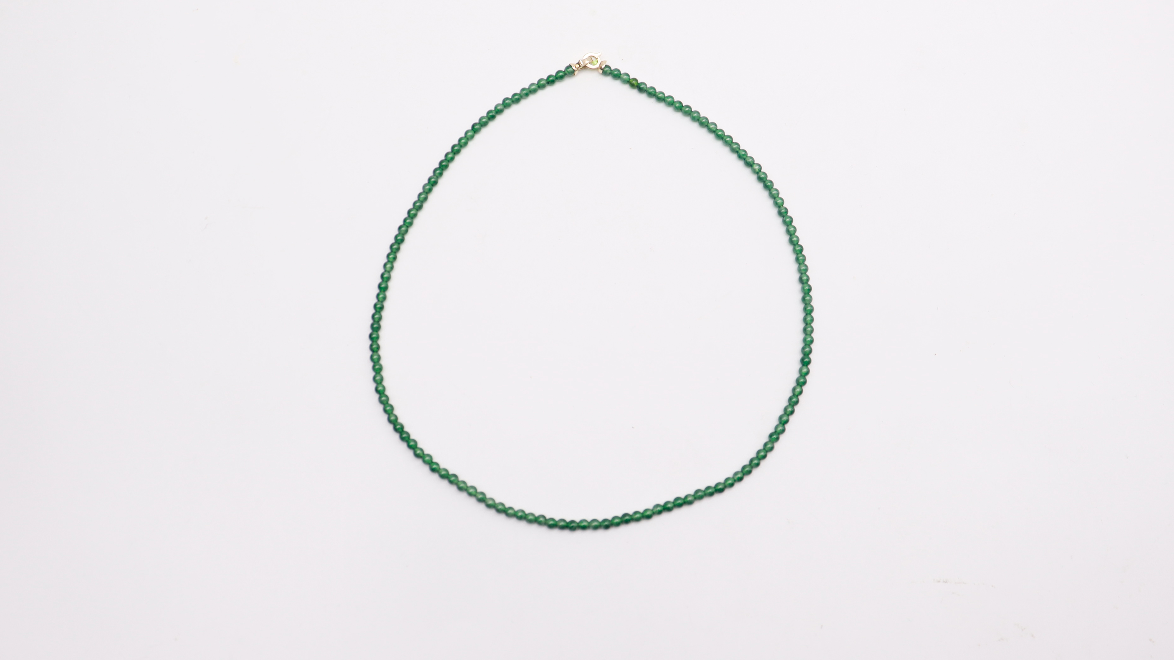一串细腻温润,水头十足,通透色泽好的翡翠项链,挂在脖颈间,顿时优雅高级。可以搭配各种服饰。