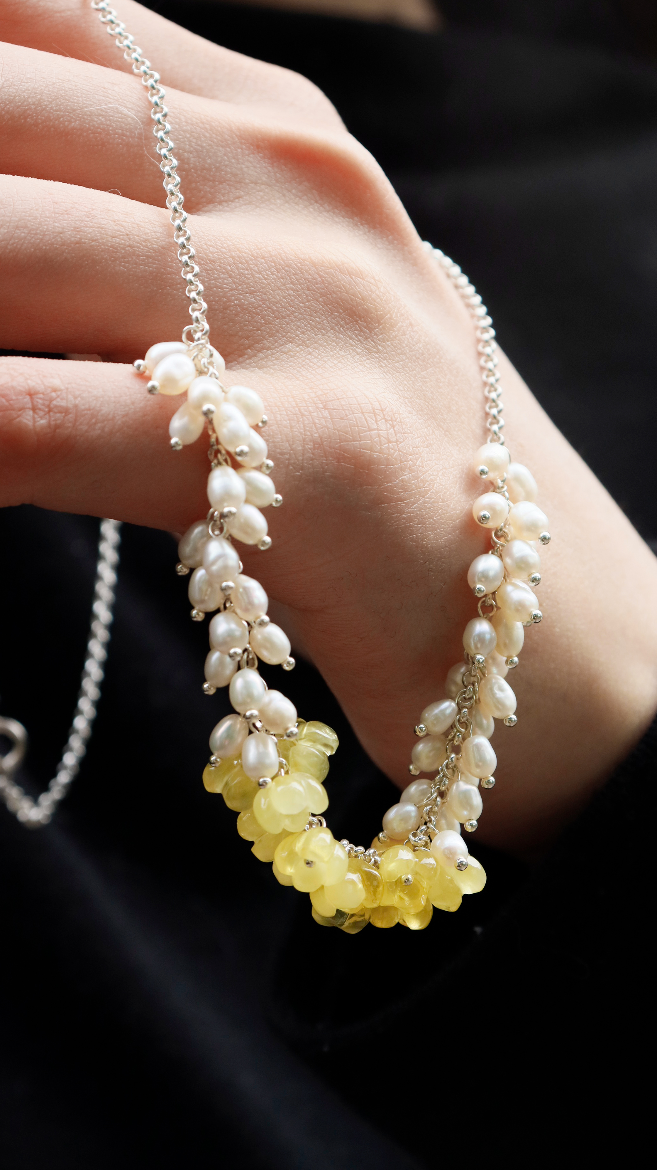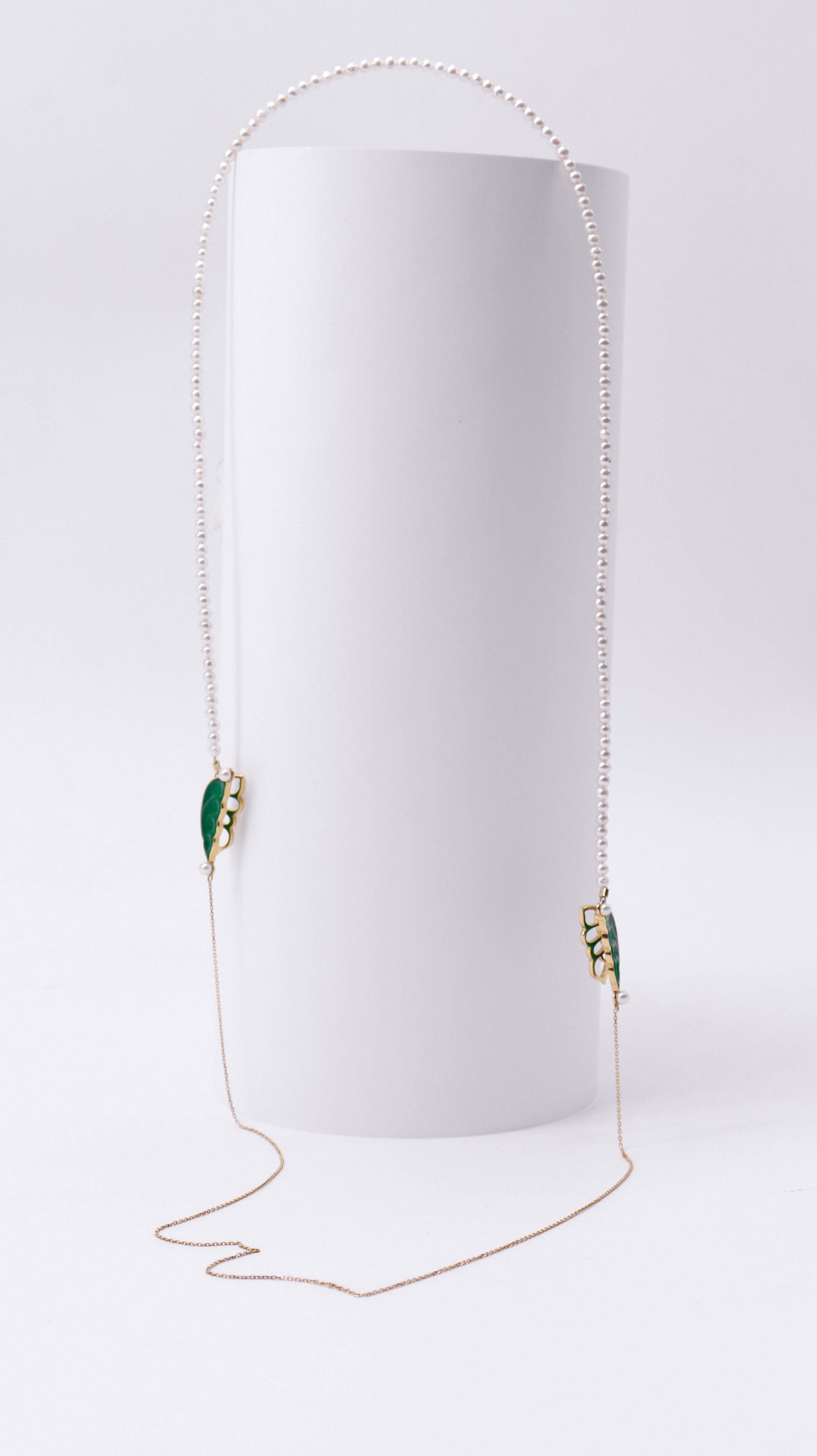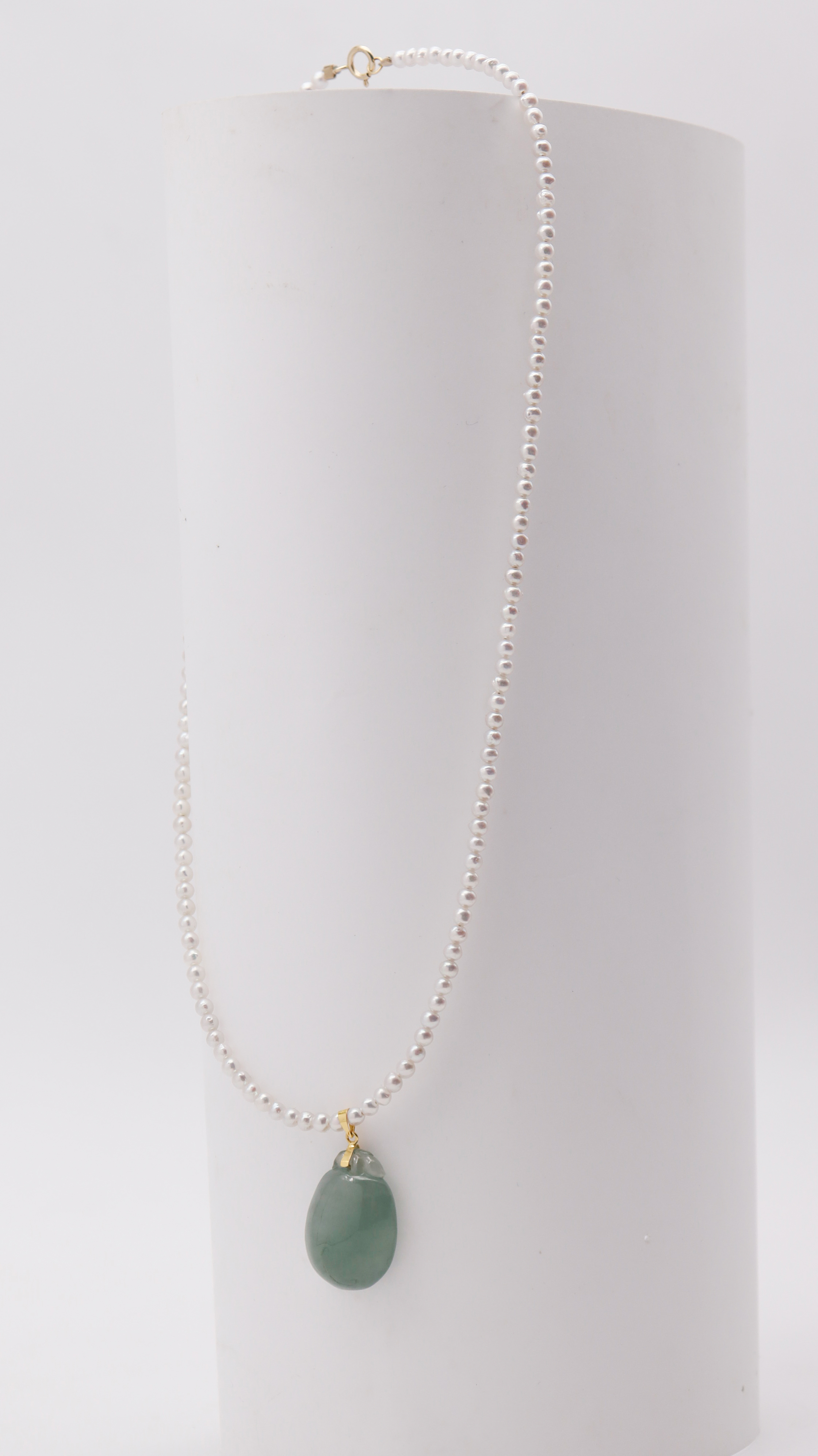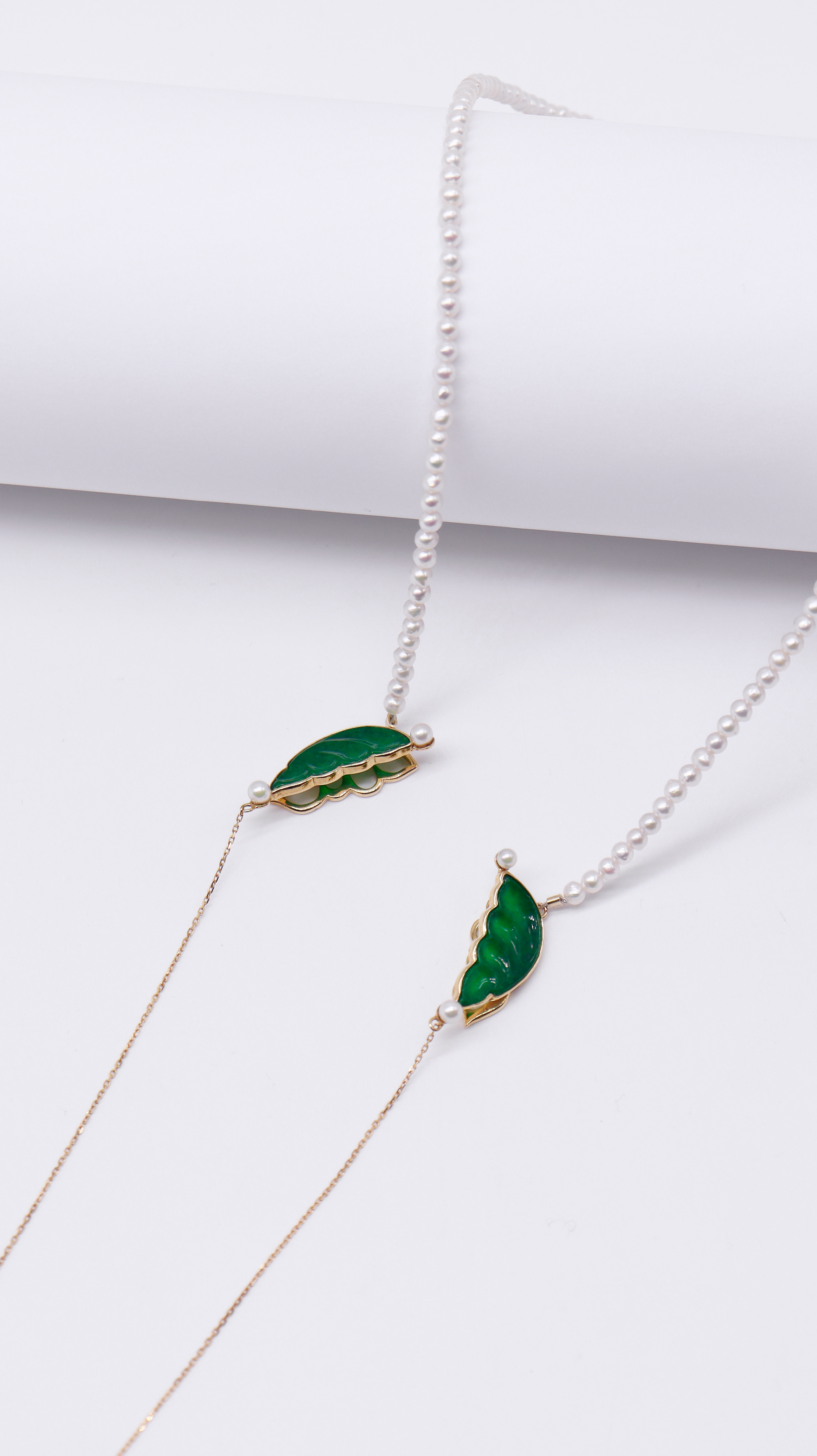 材质有翡翠,黄金,珍珠,一半链条一半珍珠的设计,搭配翡翠的点缀,整条项链特别又时髦。一年四季都可佩戴。