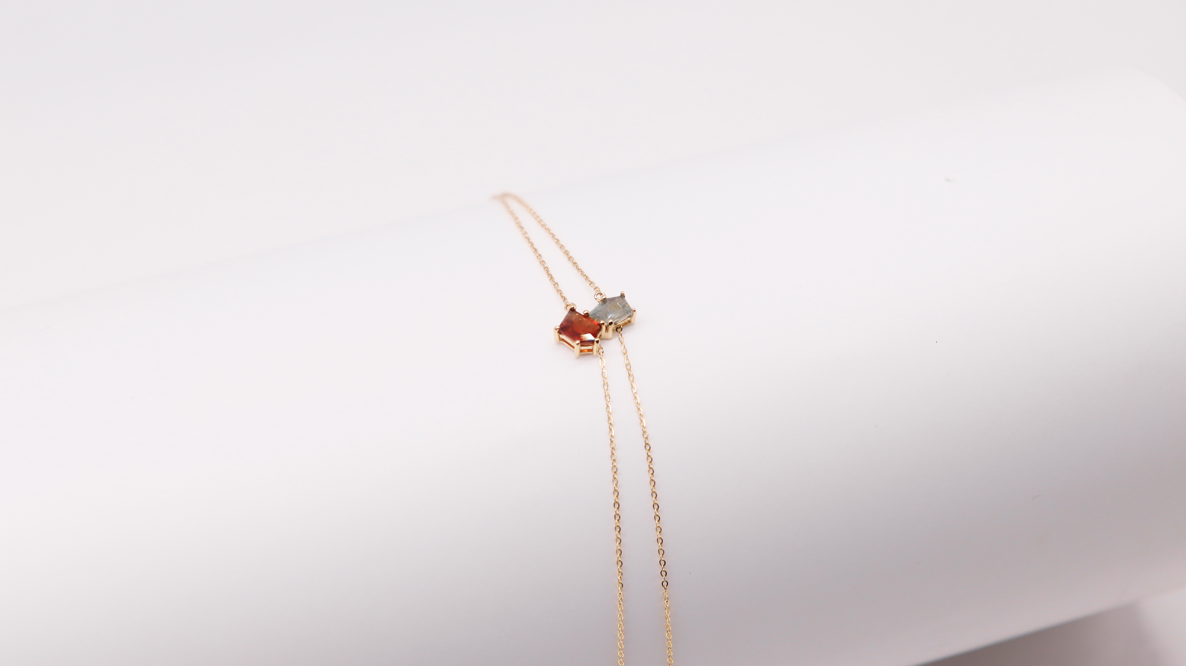 这款是现代立体设计搭配了尖晶石和18k金,简单的服饰就能显现搭配的功力。
