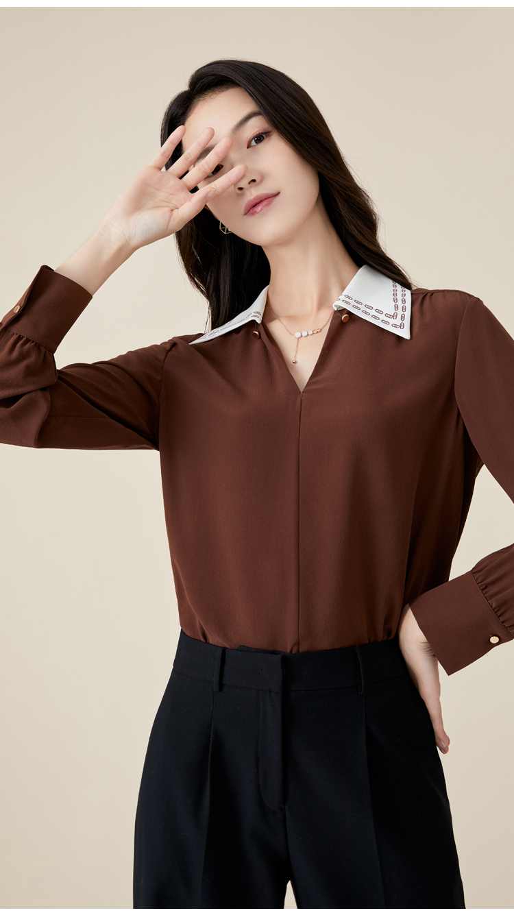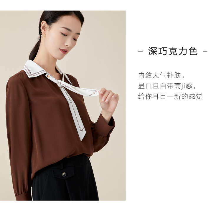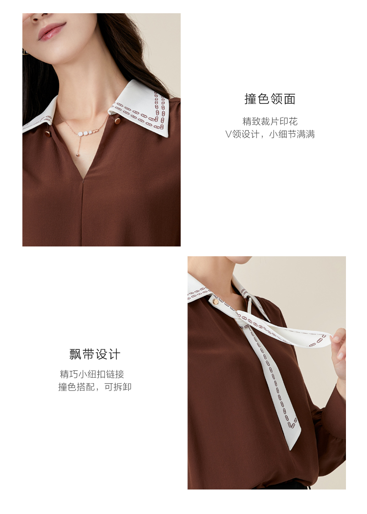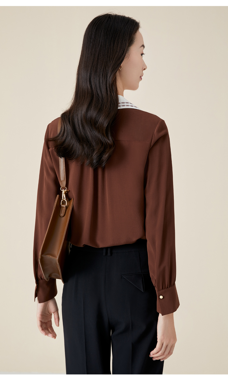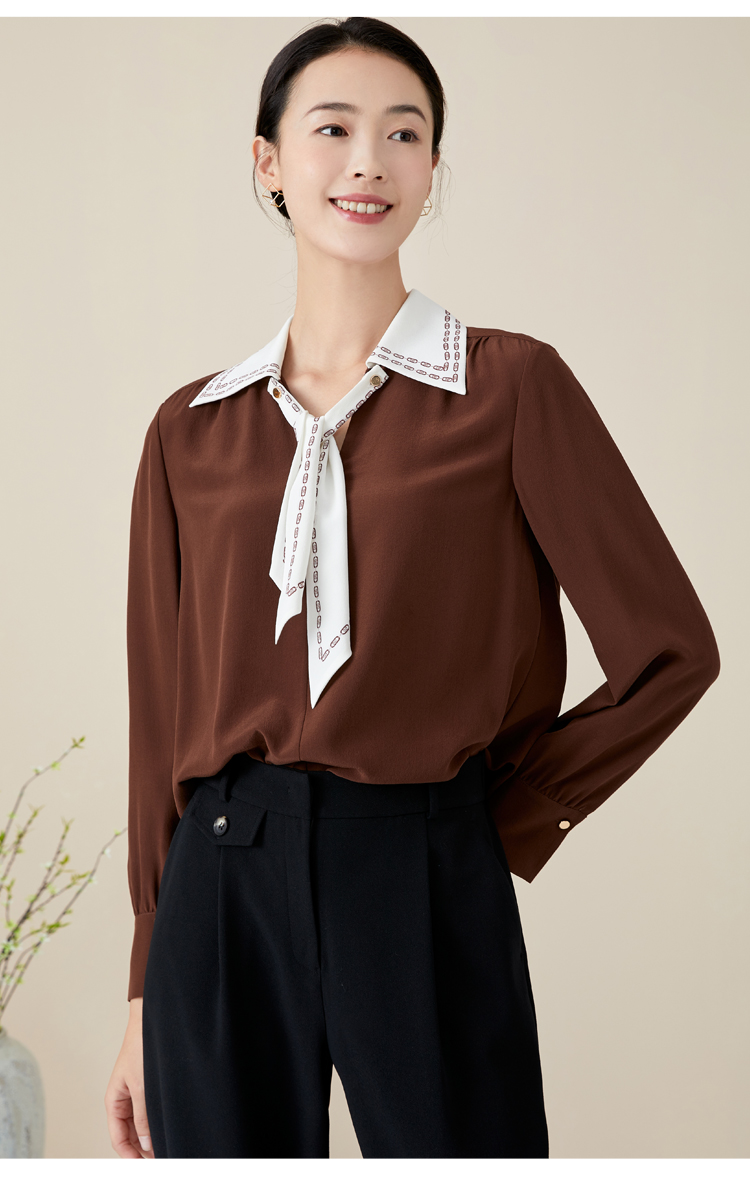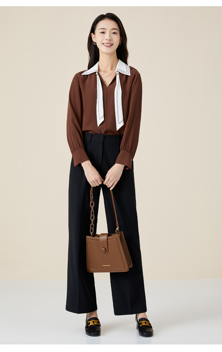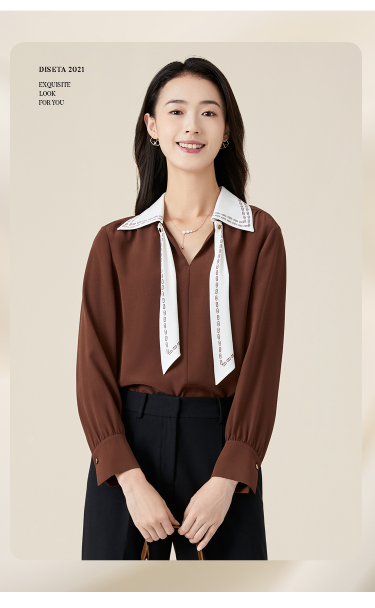 玳莎V领衬衫式上衣女新款初秋薄款飘带设计感长袖直筒衬衫 BC31309