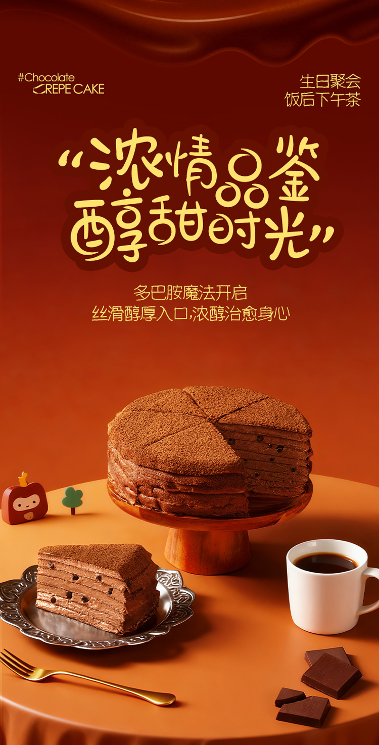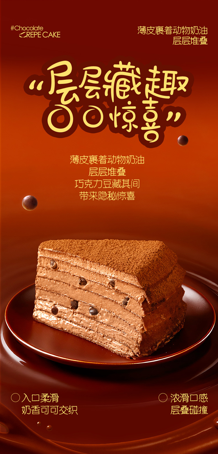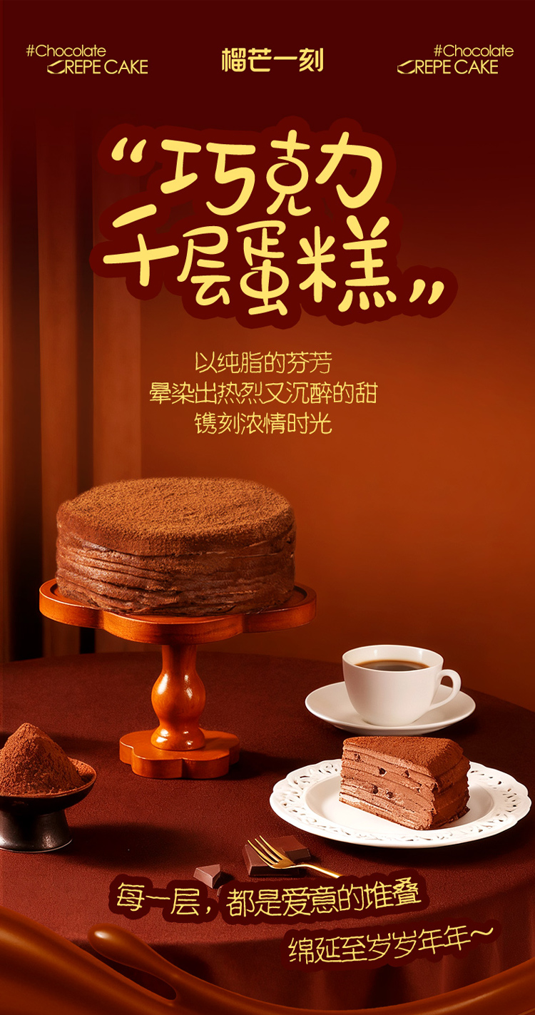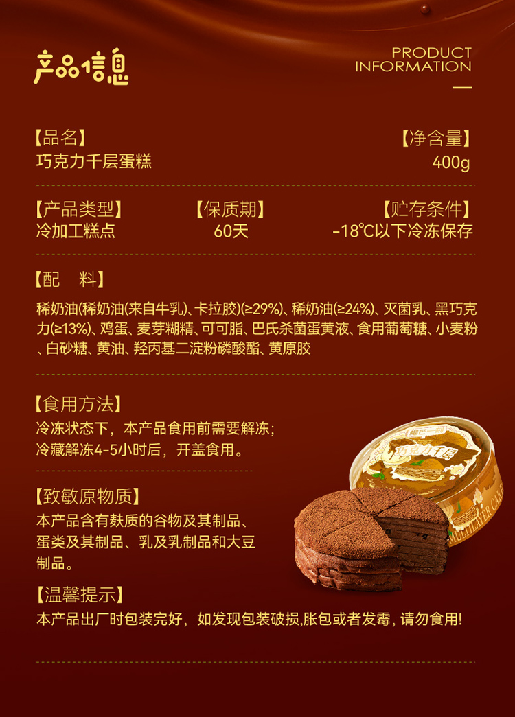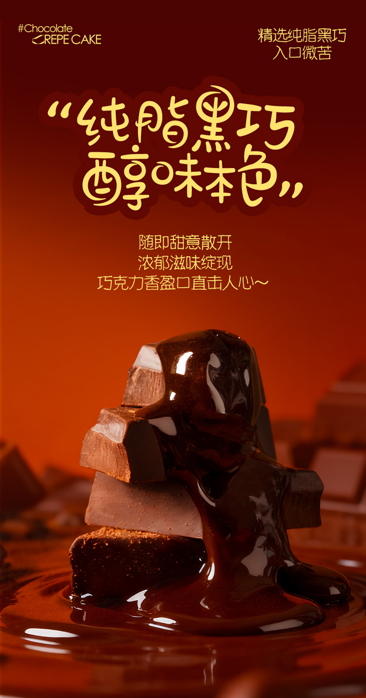 【新品上市】榴芒一刻六英寸纯脂黑巧醇味本味巧克力千层蛋糕400克/盒巧克力 HY
