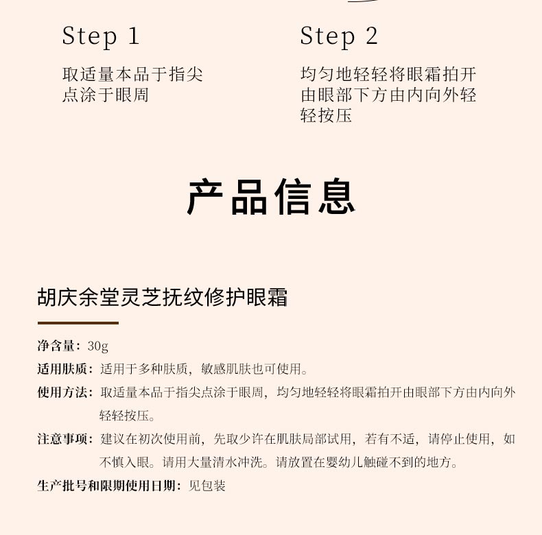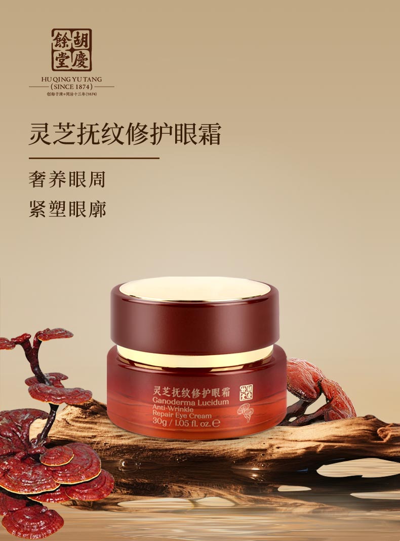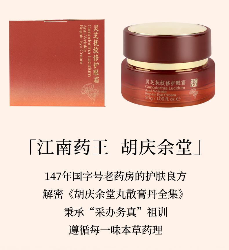 胡庆余堂灵芝抚纹修护眼霜补水保湿抗皱修护眼眸淡纹舒缓国货眼霜送拨筋棒