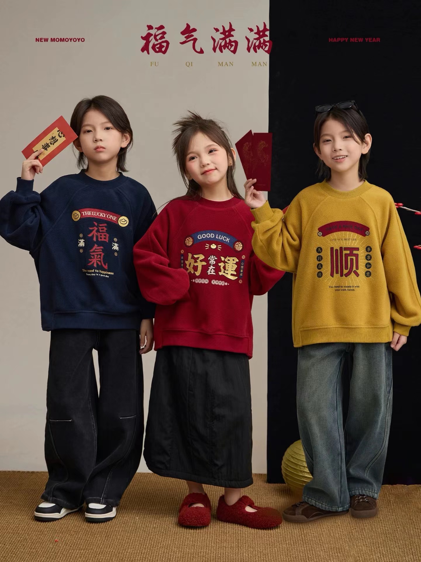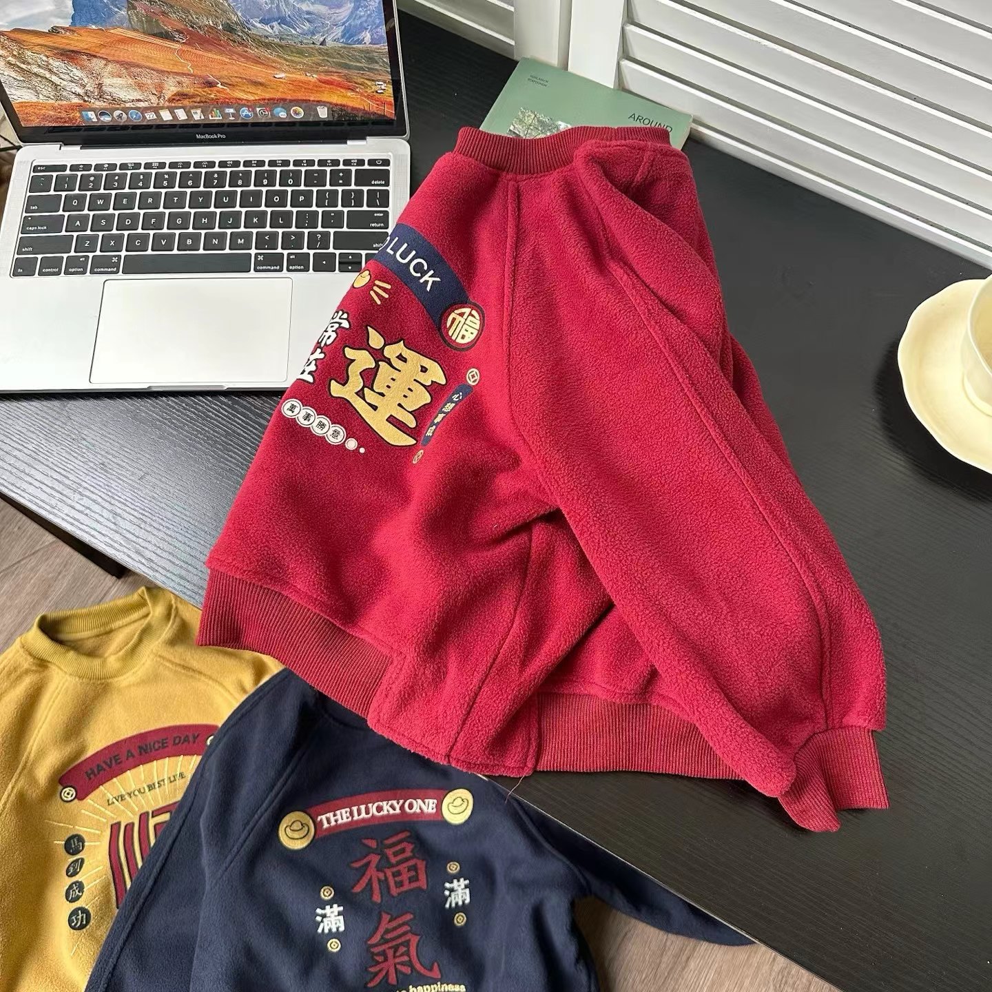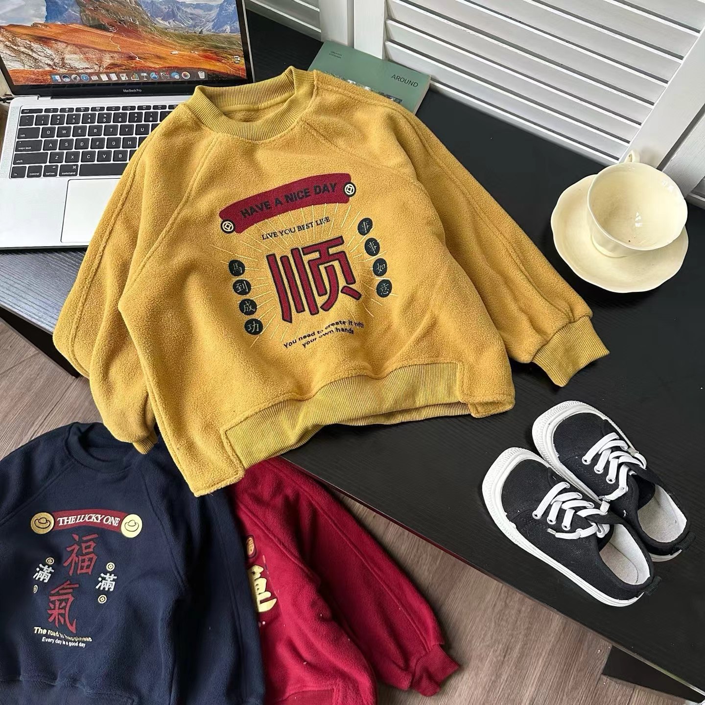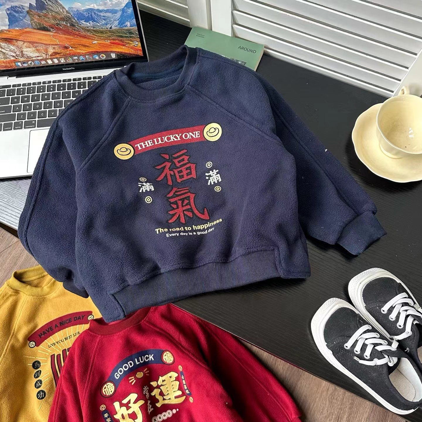 【新年万事好运摇粒绒卫衣】财气满满寓意吉祥温暖有型 分分钟拿捏你!三个色可选,大胆文字组合自带时髦感 外穿吸睛 内搭保暖有层次110-170码,可配亲子!很随意就能穿出慵懒糕级感的穿搭真的太顶了