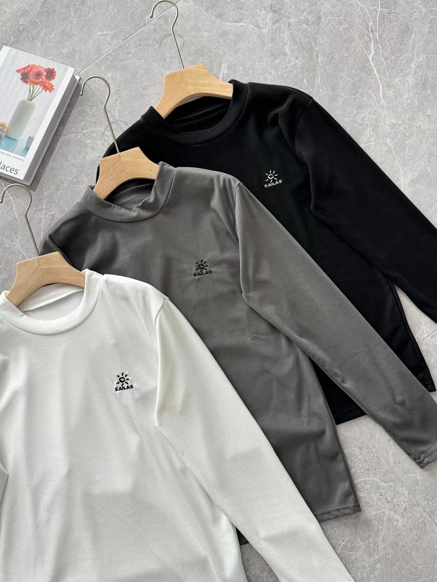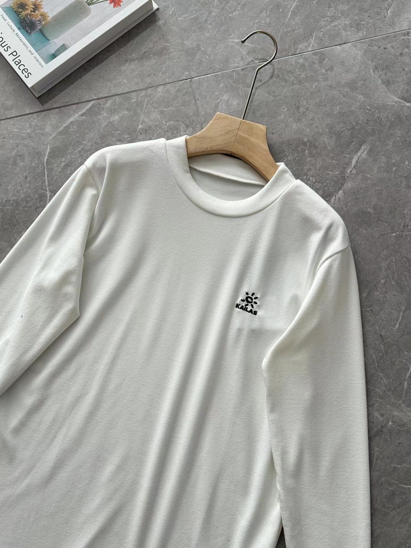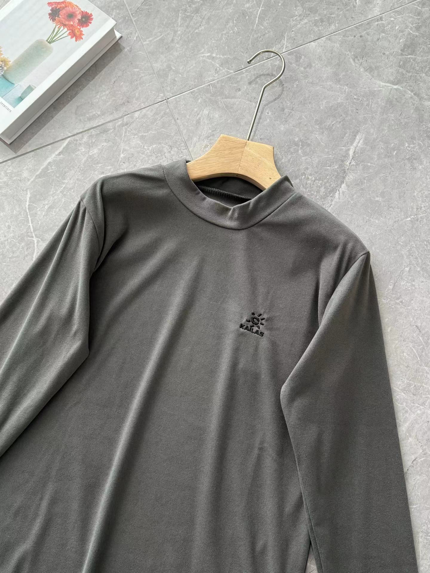 刺绣自发热德绒面料打底衫内搭!!客供自发热双面德绒面料!重磅高克重460克!含氨纶!四维弹力!可以说羽绒服里面穿一件小太阳打底就ok了!内搭一件过冬!设计!保暖有型!胸口3D万针刺绣!糕级感直接拉满!经久耐穿不变形!大降温,这种自留三件无压力!送人也很有心意!