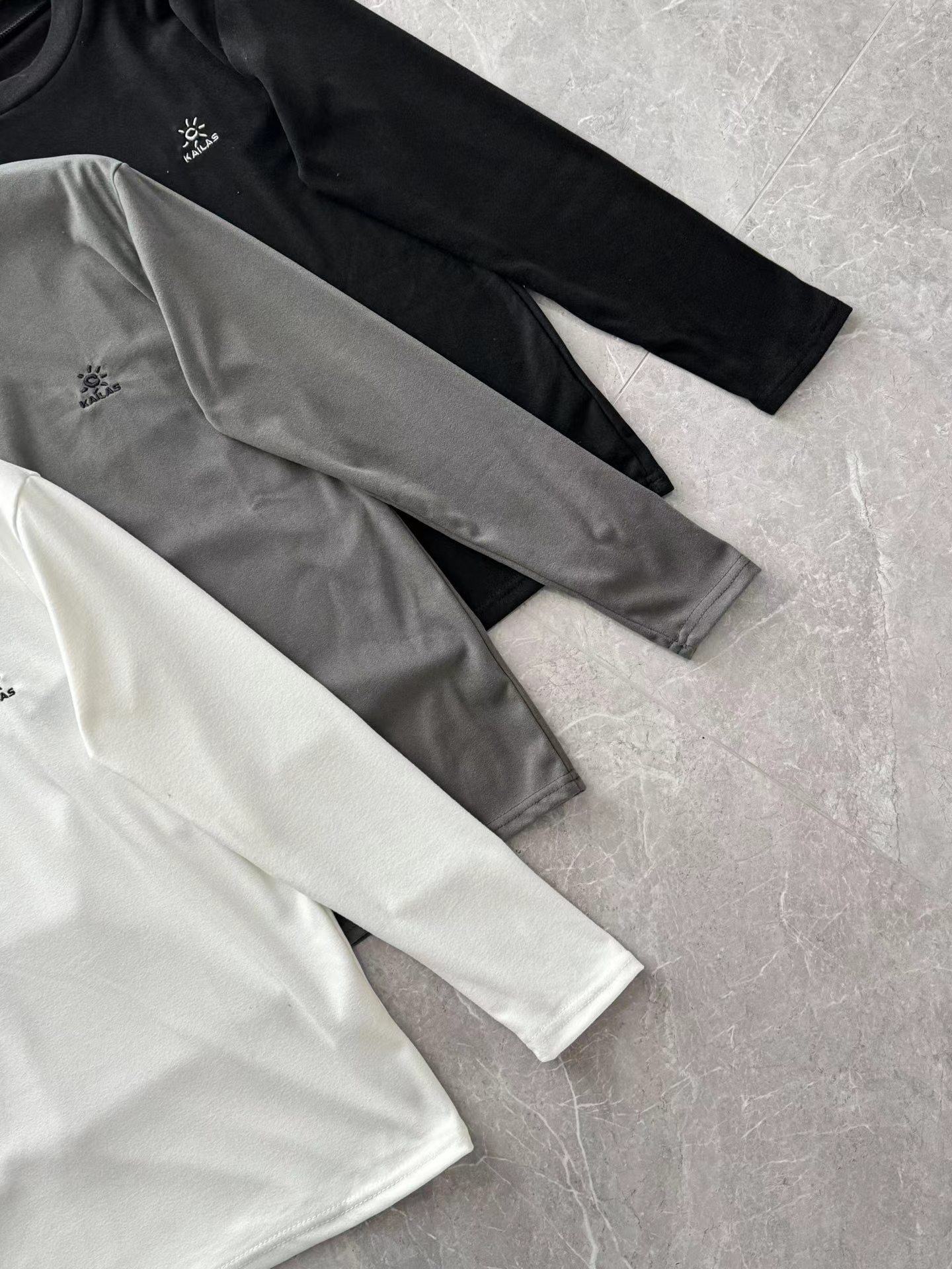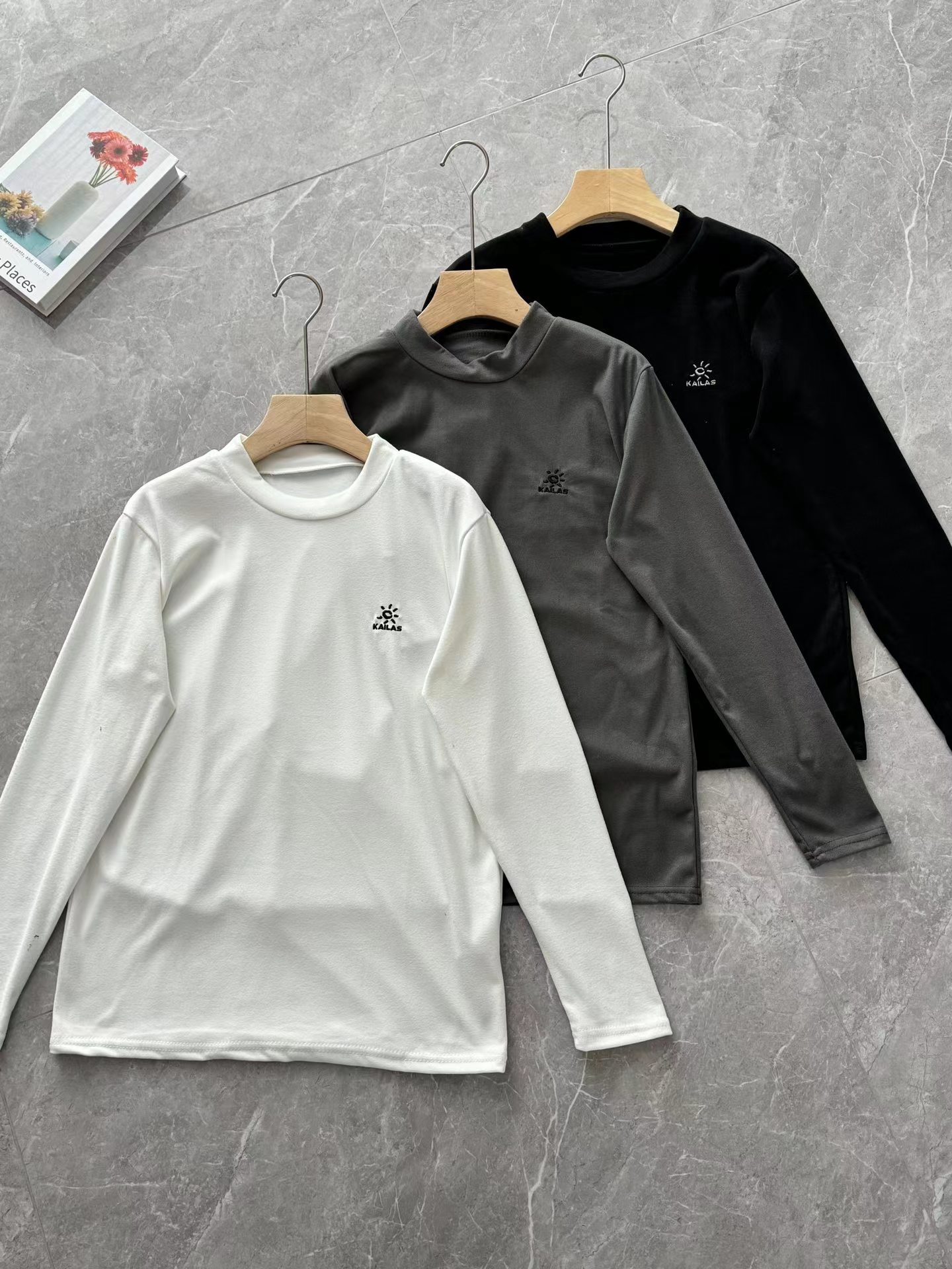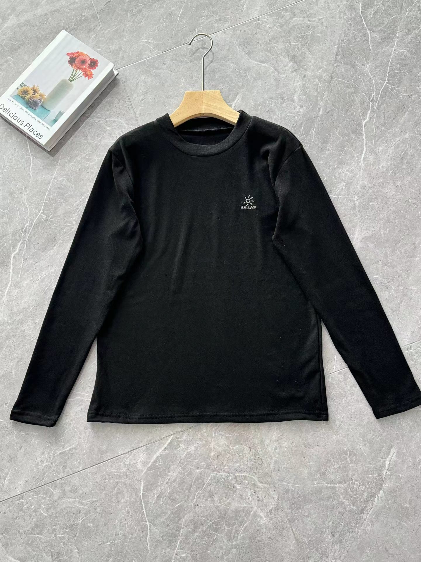 刺绣自发热德绒面料打底衫内搭!!客供自发热双面德绒面料!重磅高克重460克!含氨纶!四维弹力!可以说羽绒服里面穿一件小太阳打底就ok了!内搭一件过冬!设计!保暖有型!胸口3D万针刺绣!糕级感直接拉满!经久耐穿不变形!大降温,这种自留三件无压力!送人也很有心意!