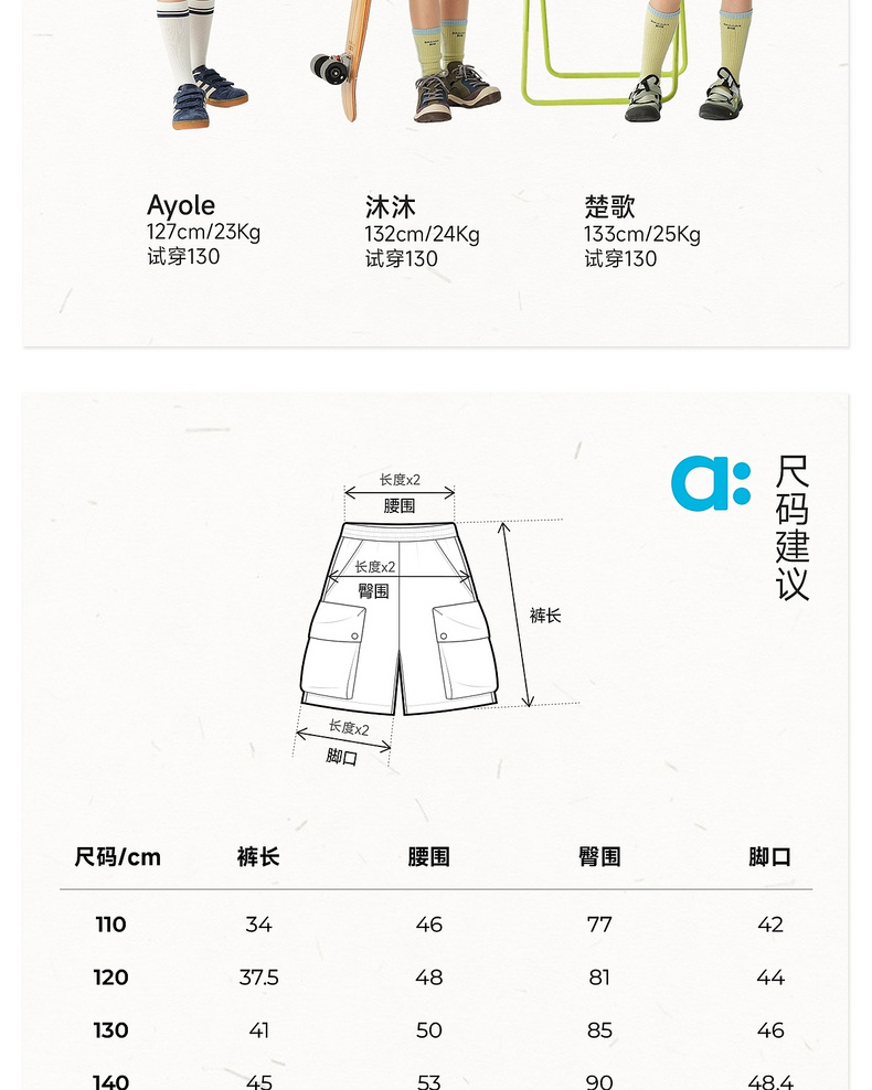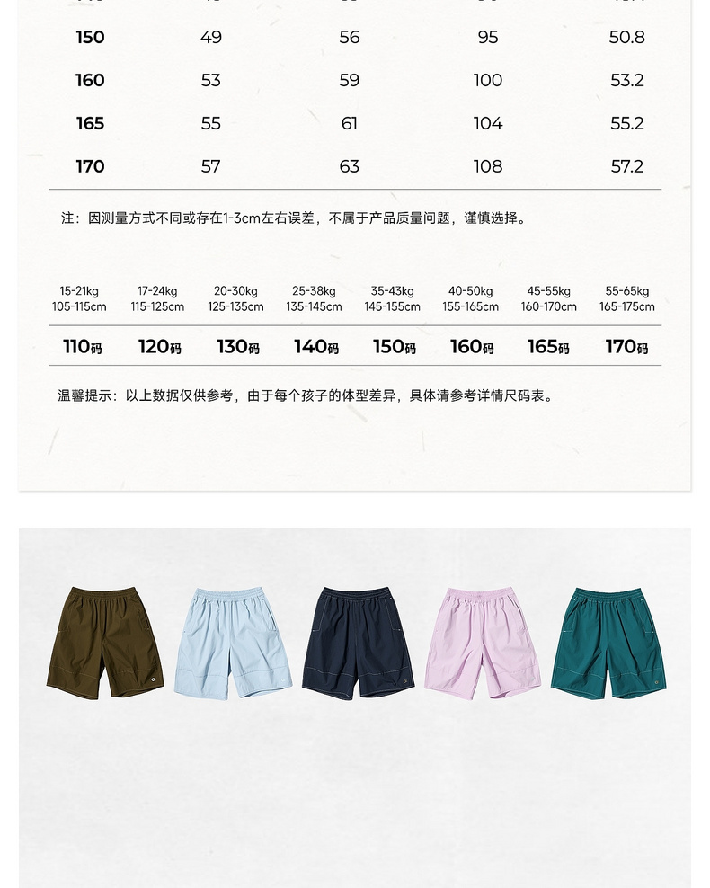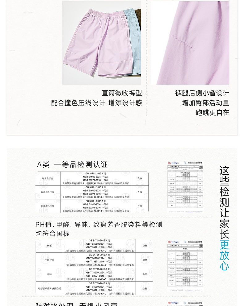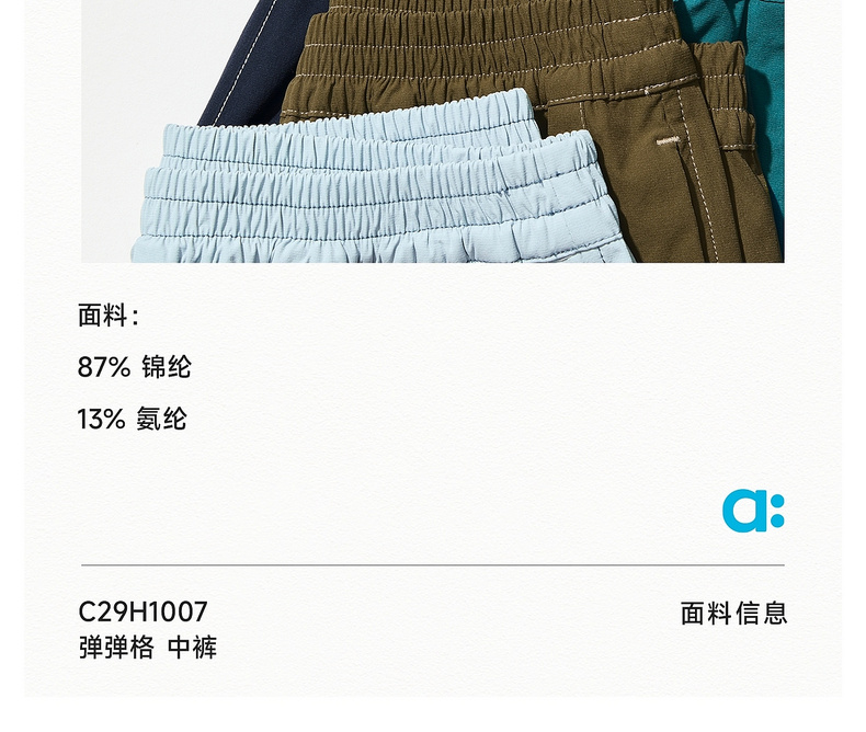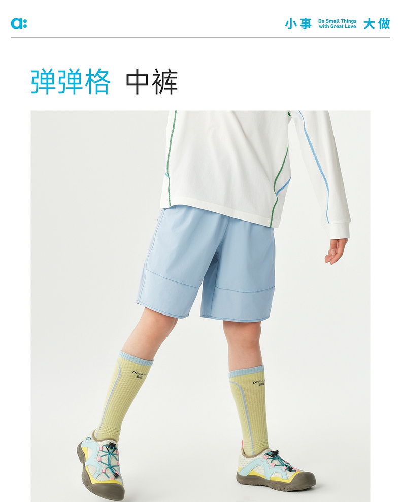 allblu幼岚【轻质棉纹防泼水中裤】儿童裤子A类26春新款男童女童