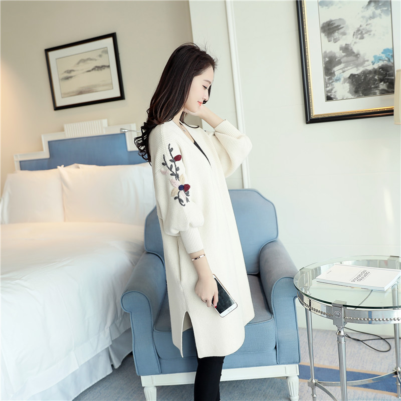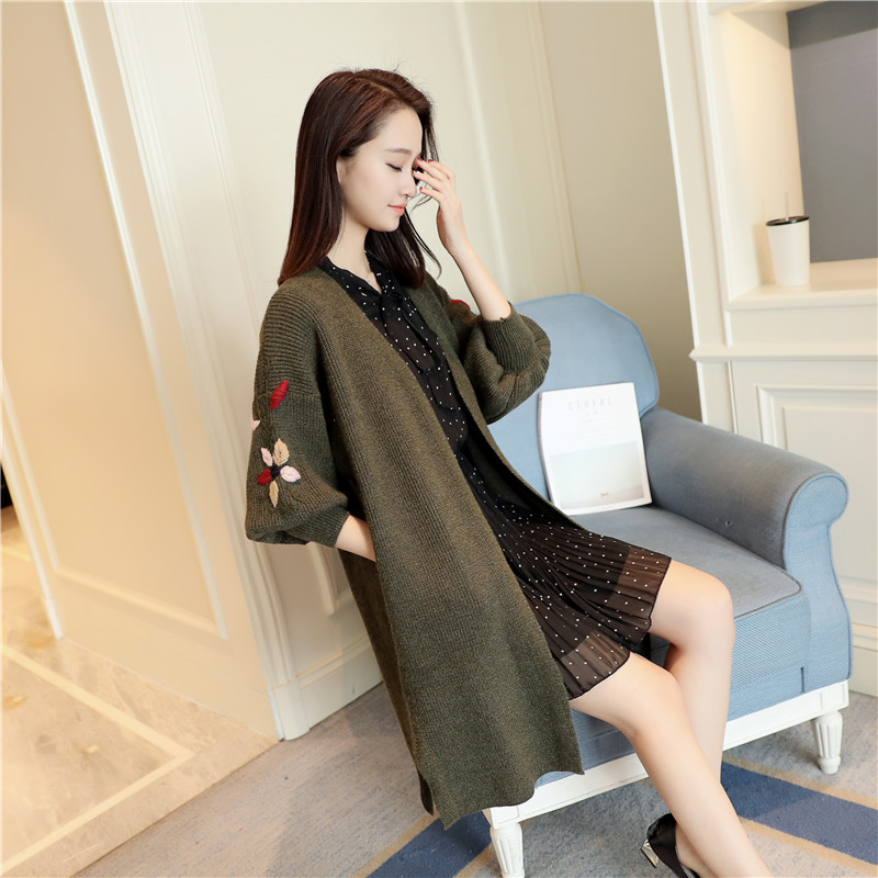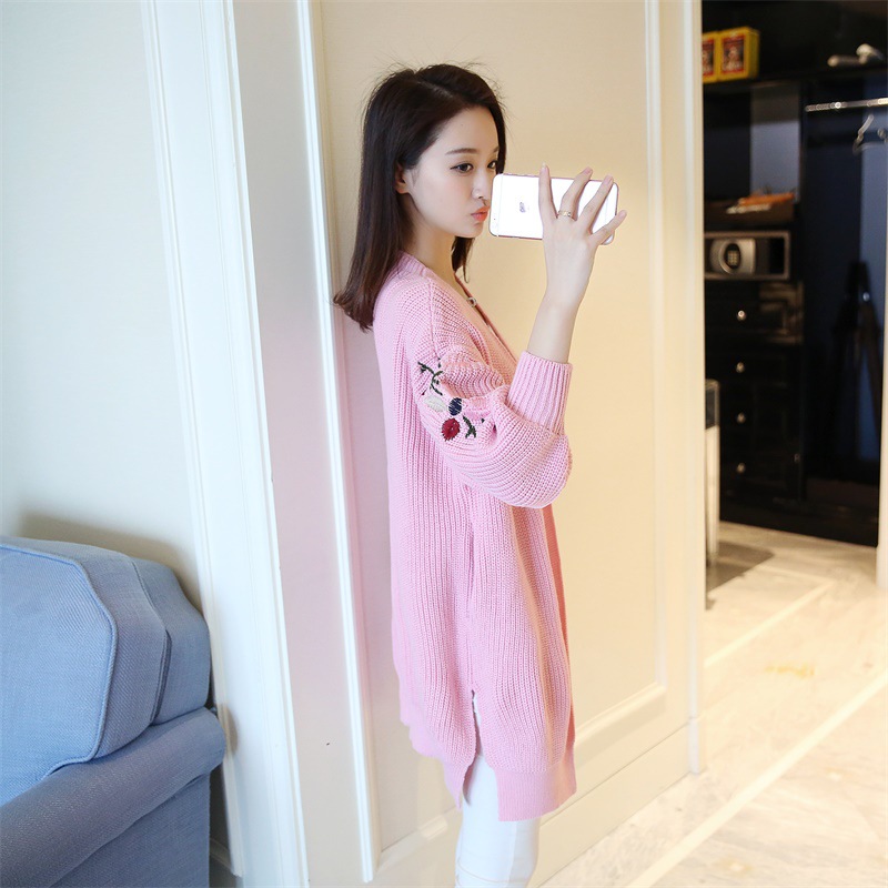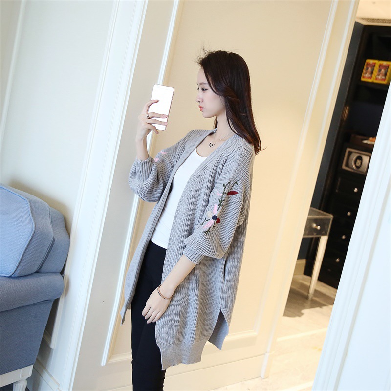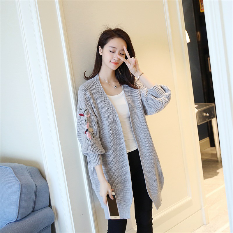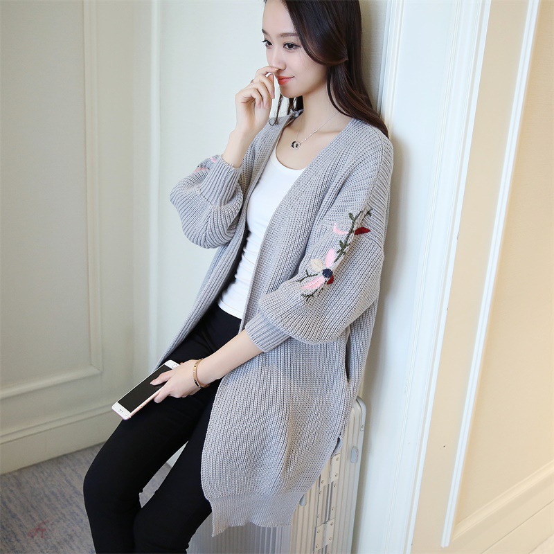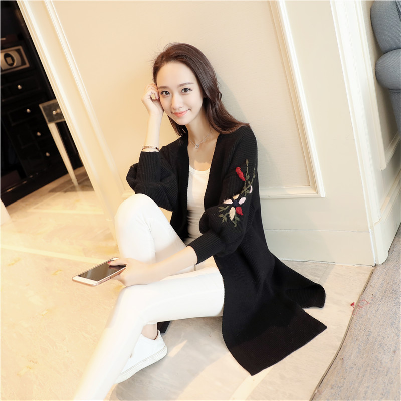 【毛衣】秋季韩版新款女装刺绣毛衣女开衫中长款宽松灯笼袖毛衫针织衫