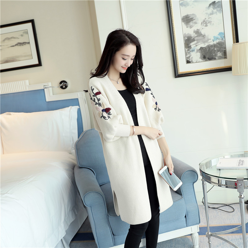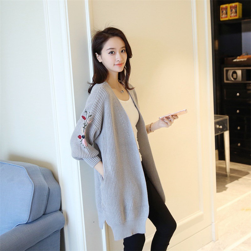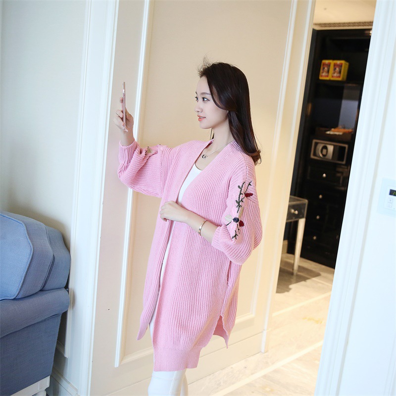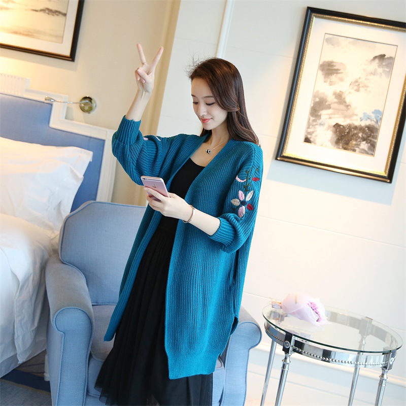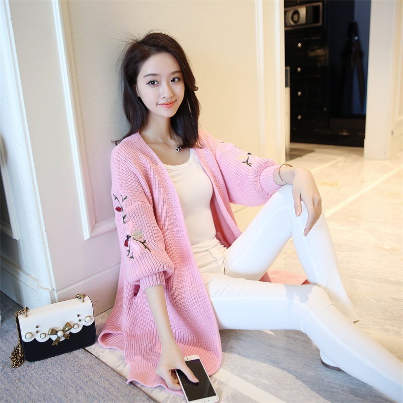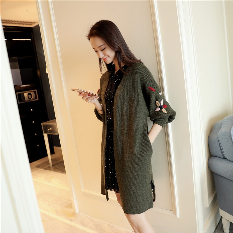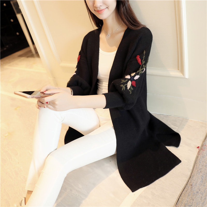 【毛衣】秋季韩版新款女装刺绣毛衣女开衫中长款宽松灯笼袖毛衫针织衫