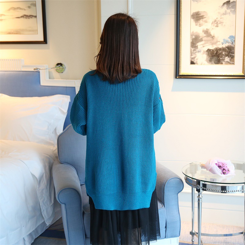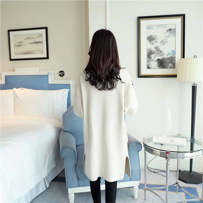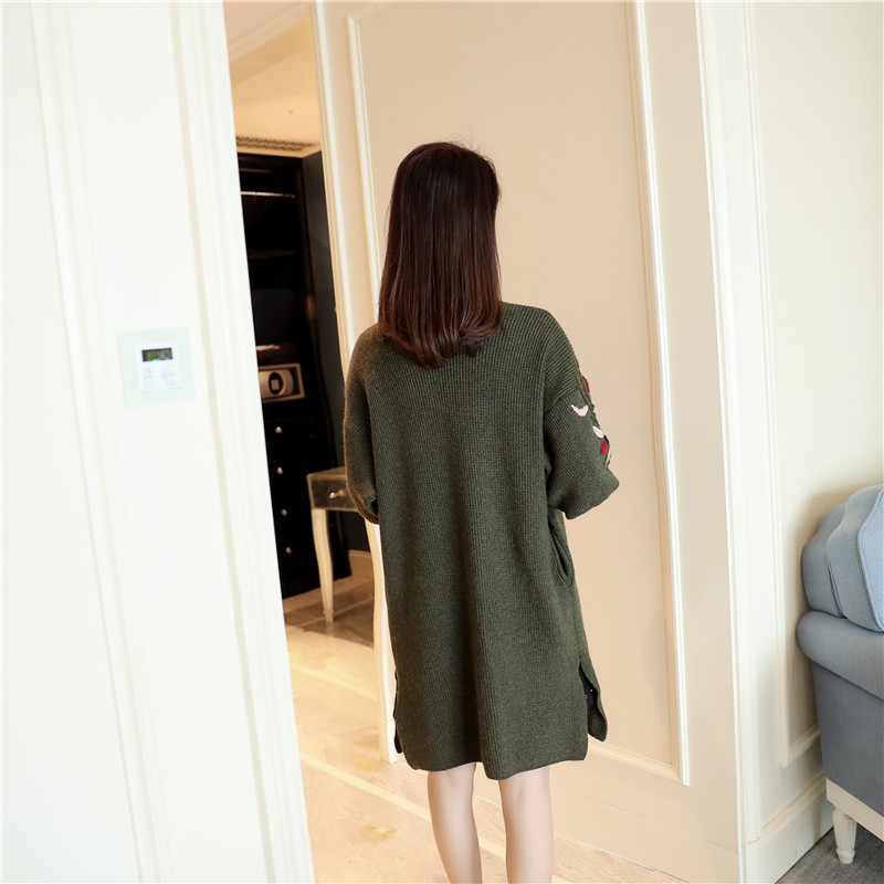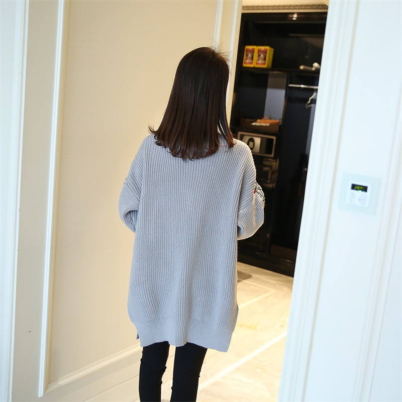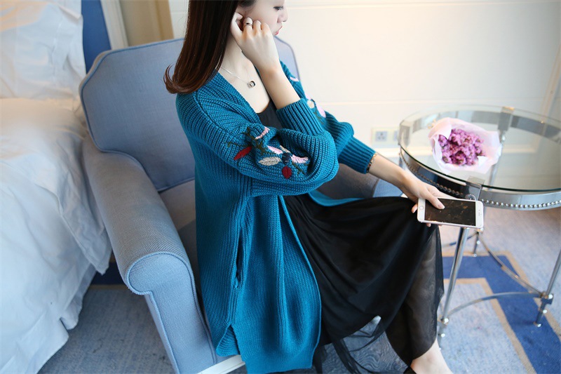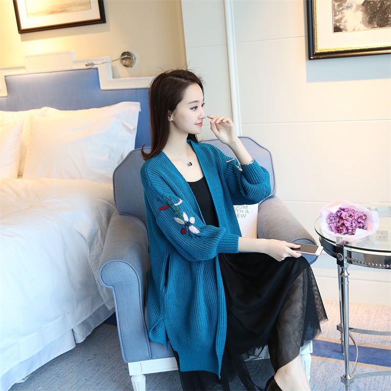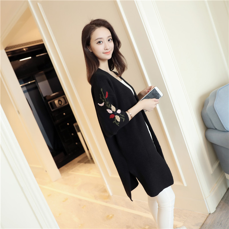 【毛衣】秋季韩版新款女装刺绣毛衣女开衫中长款宽松灯笼袖毛衫针织衫
