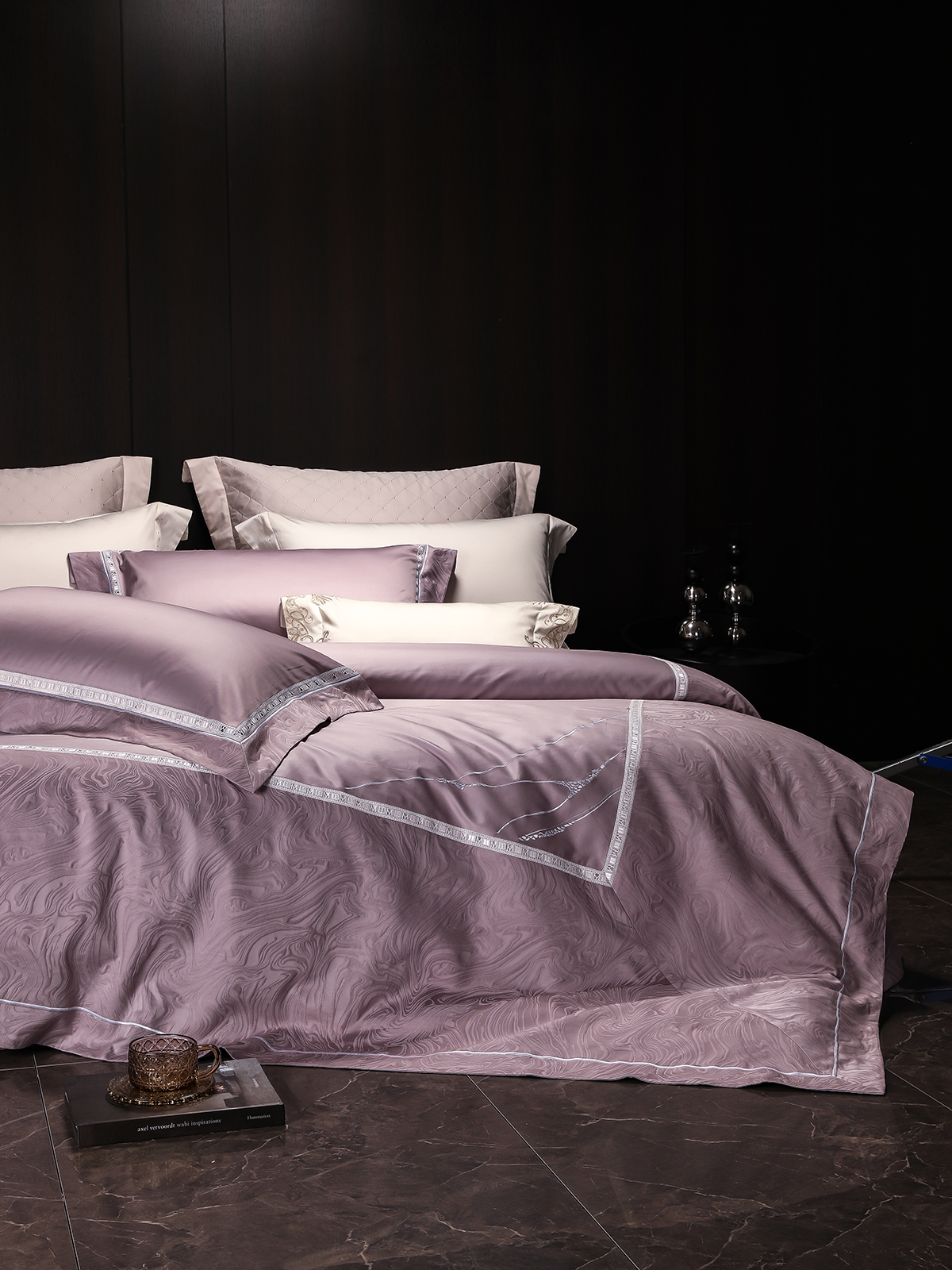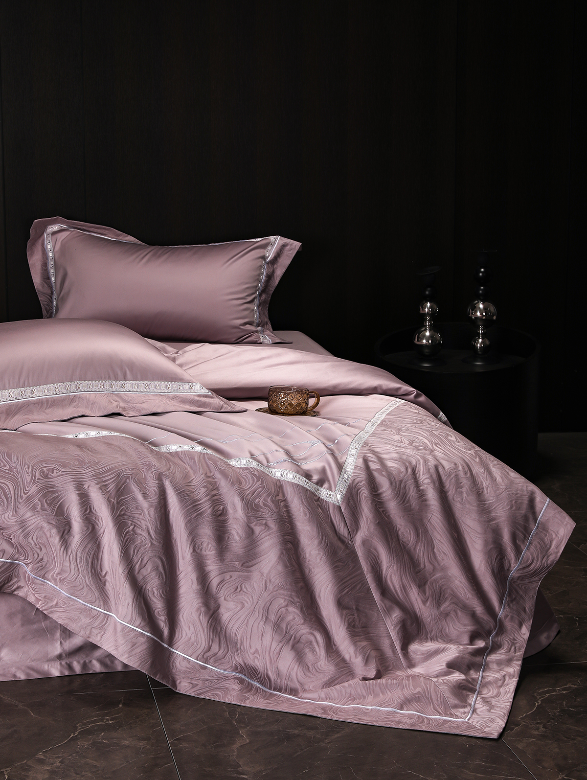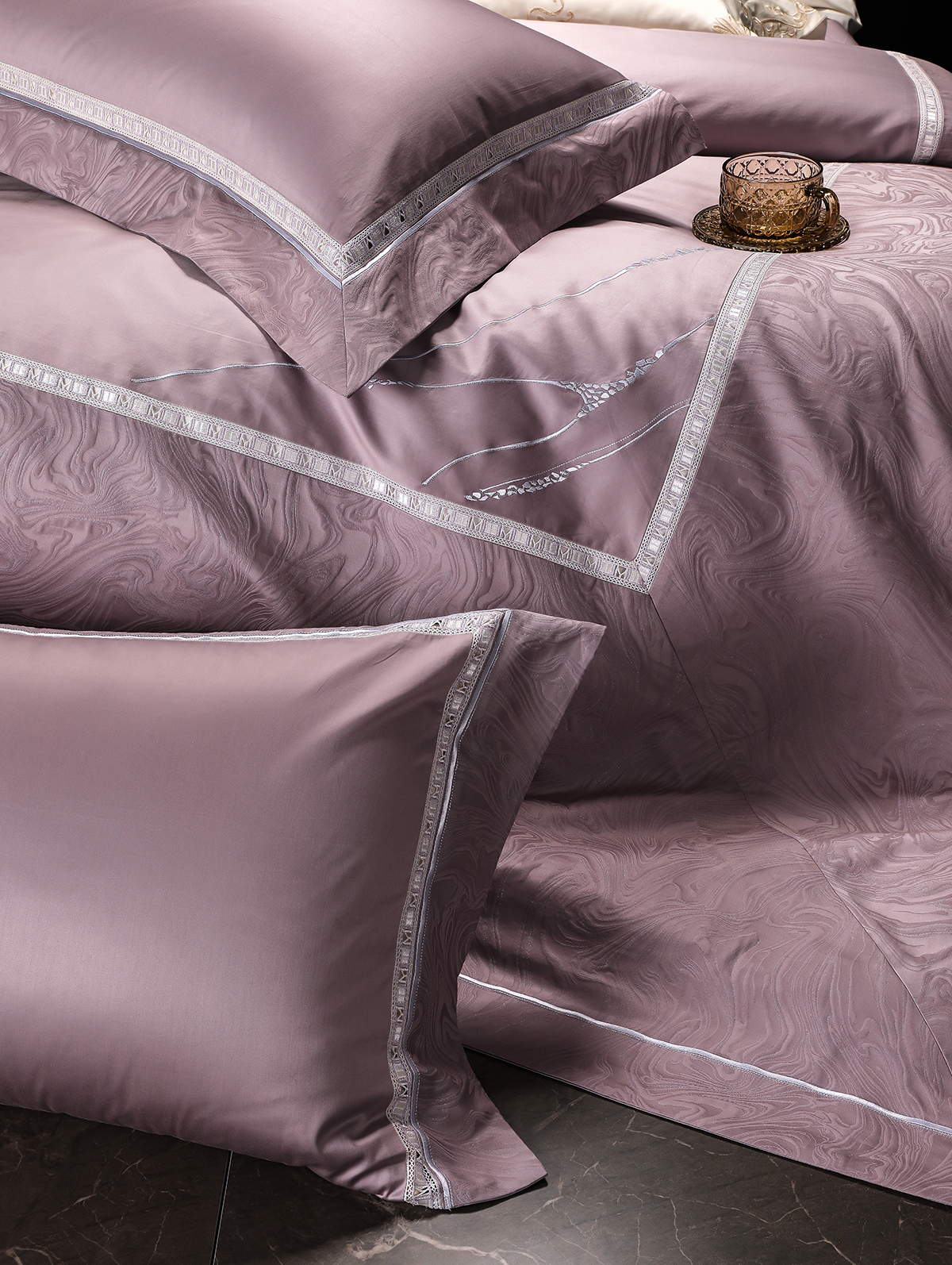 80支长绒棉染色提花四件套-云璃(紫)