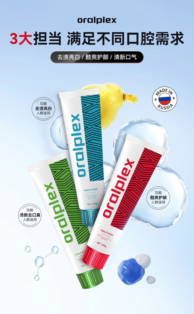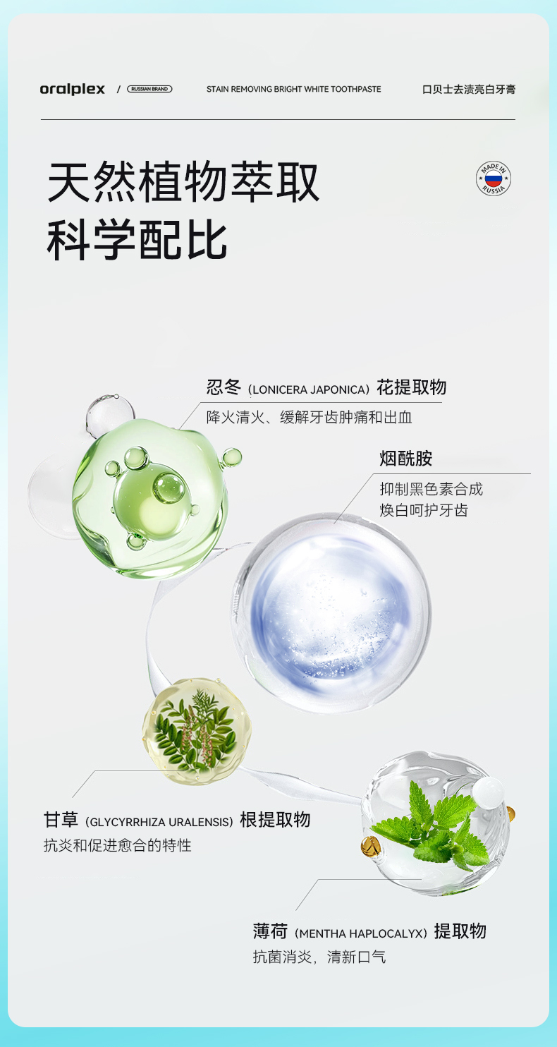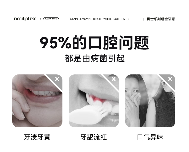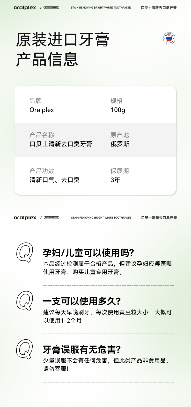 俄罗斯Oralplex口贝士牙膏组合 美白去渍 清爽护龈 口臭拜拜
