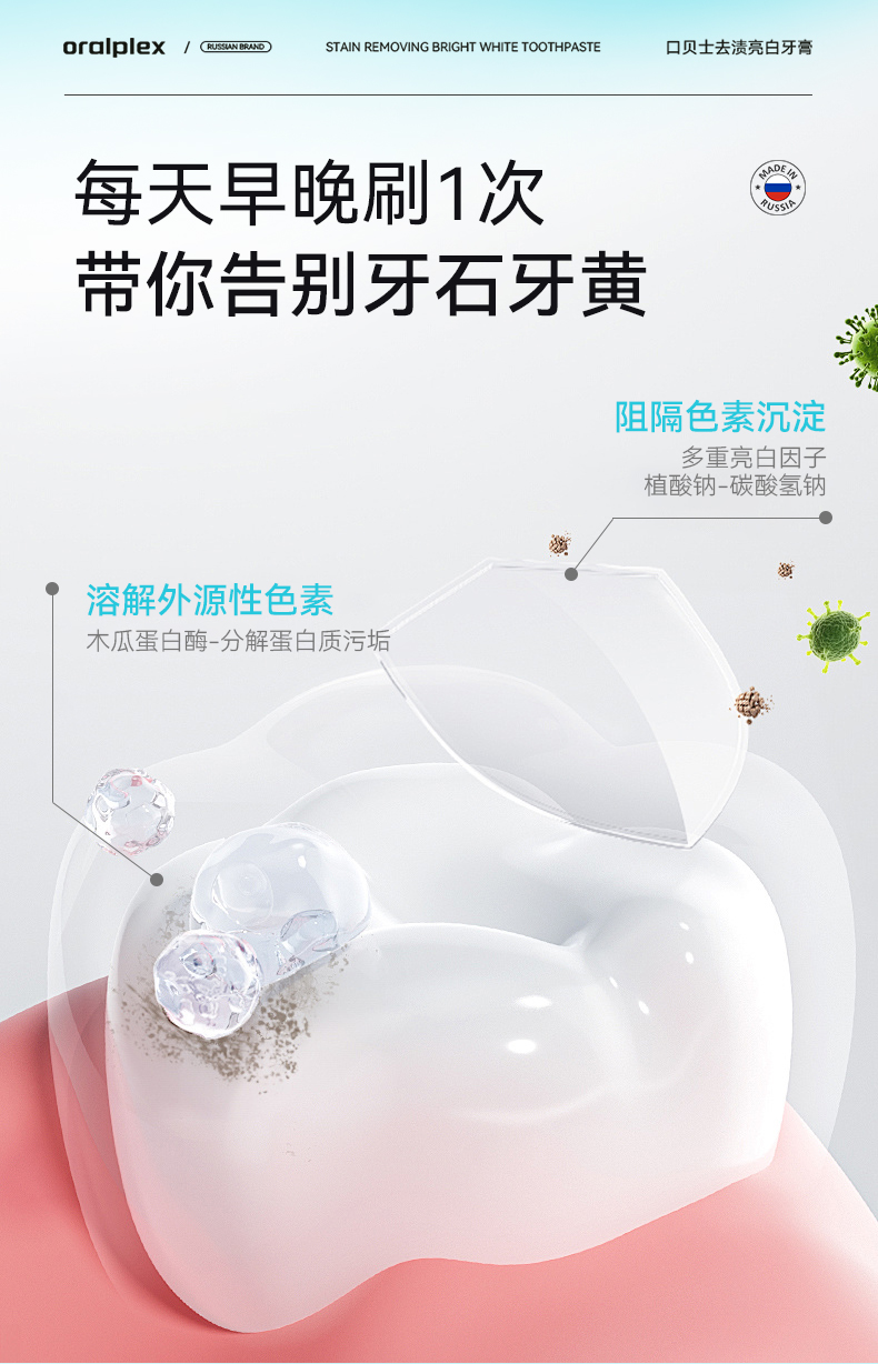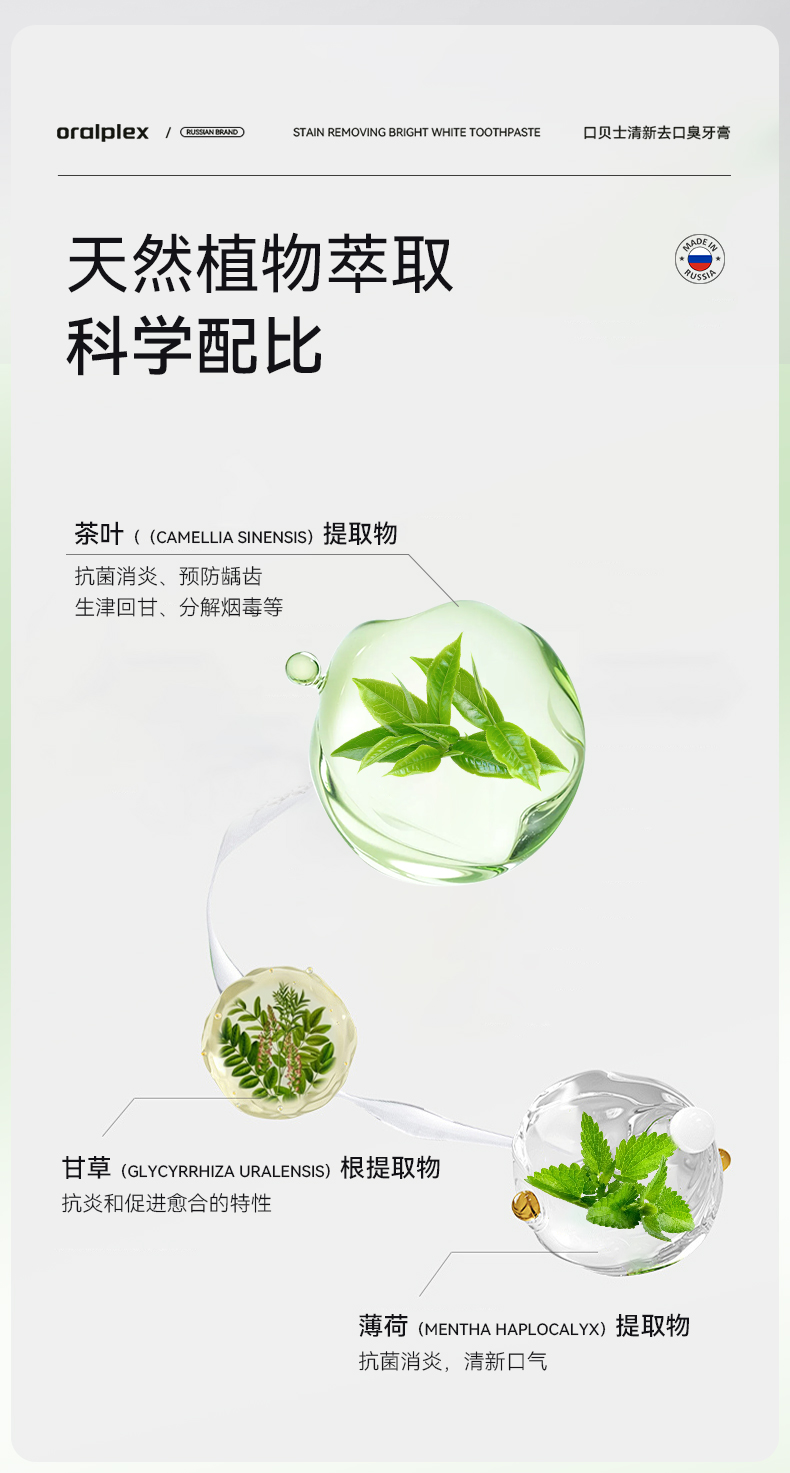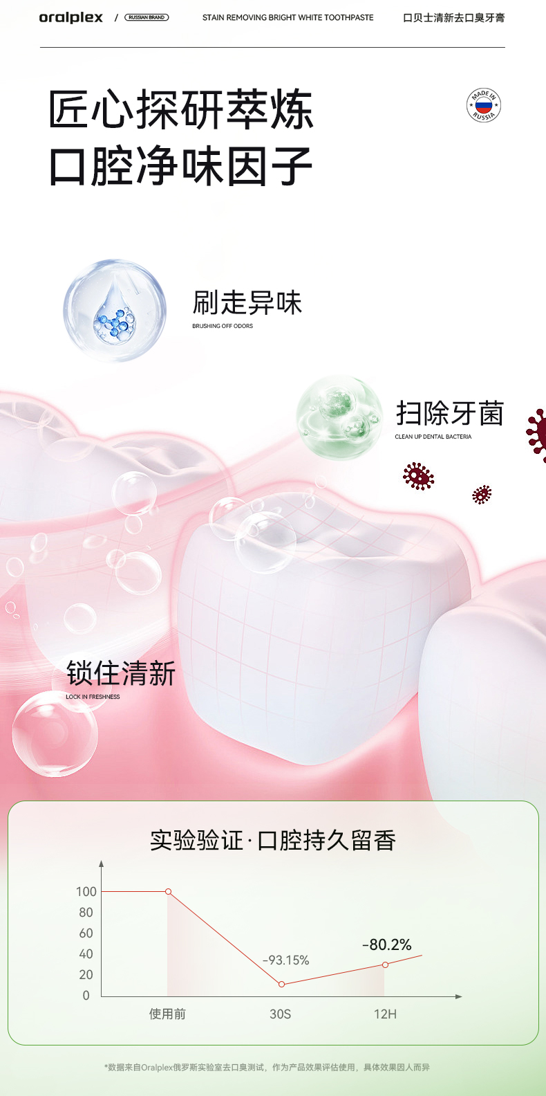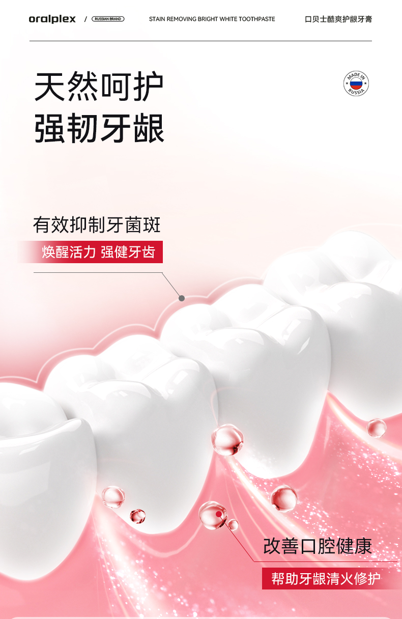 俄罗斯Oralplex口贝士牙膏组合 美白去渍 清爽护龈 口臭拜拜