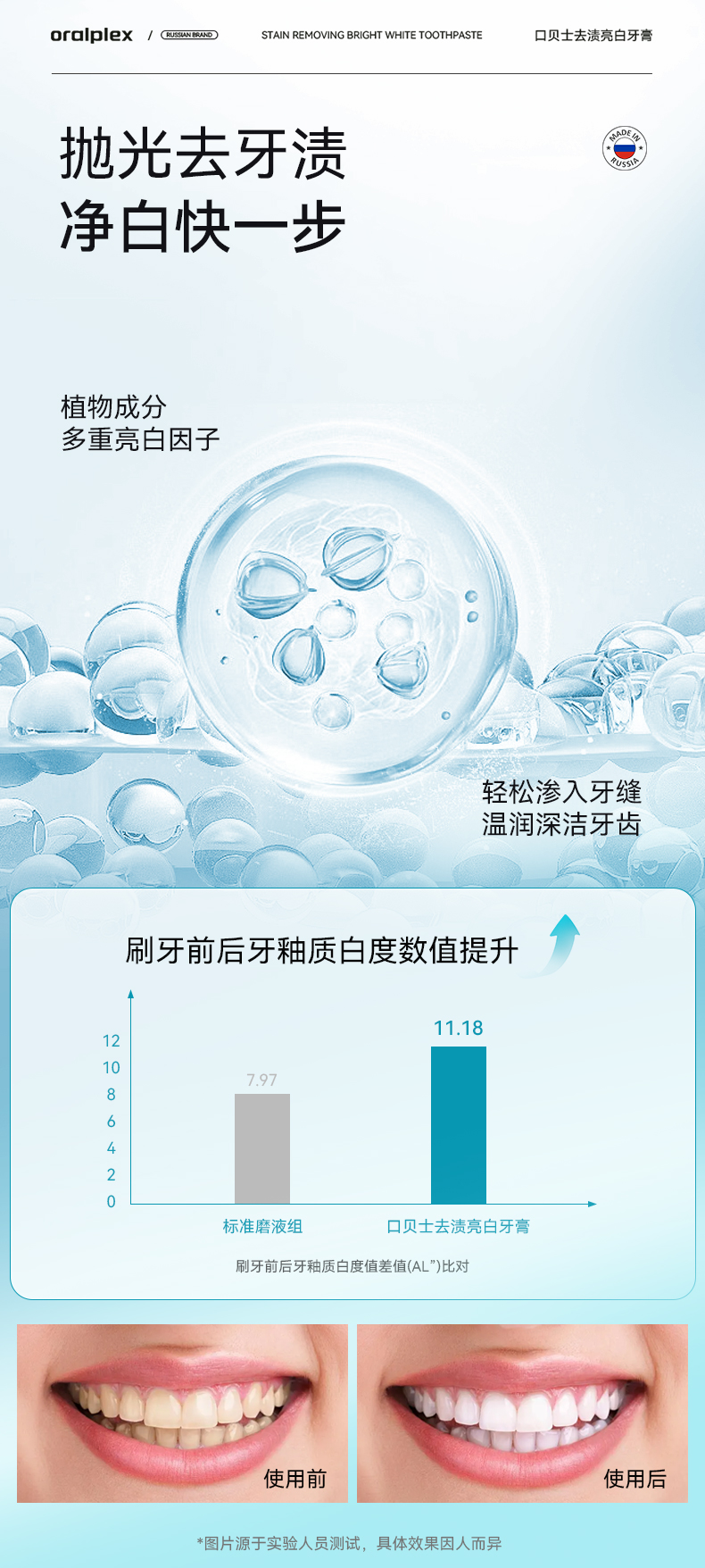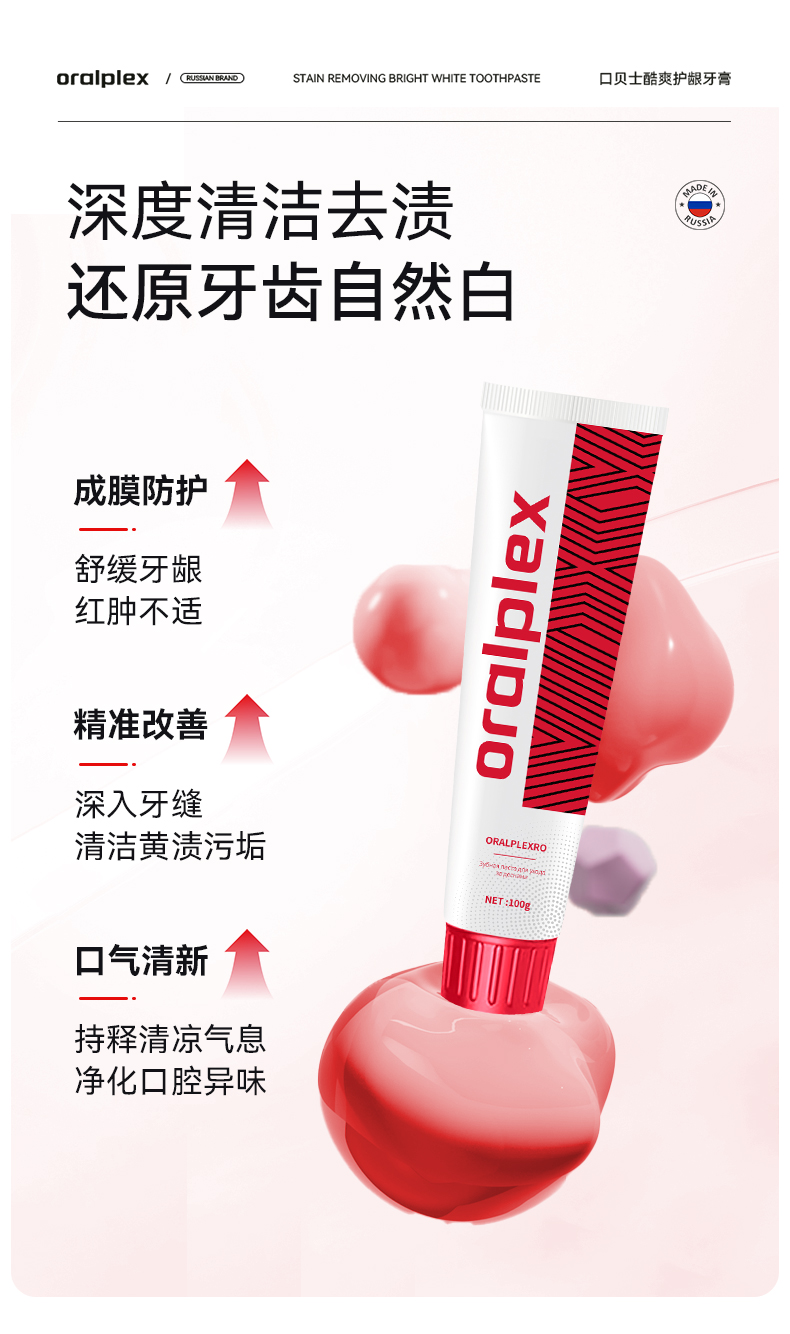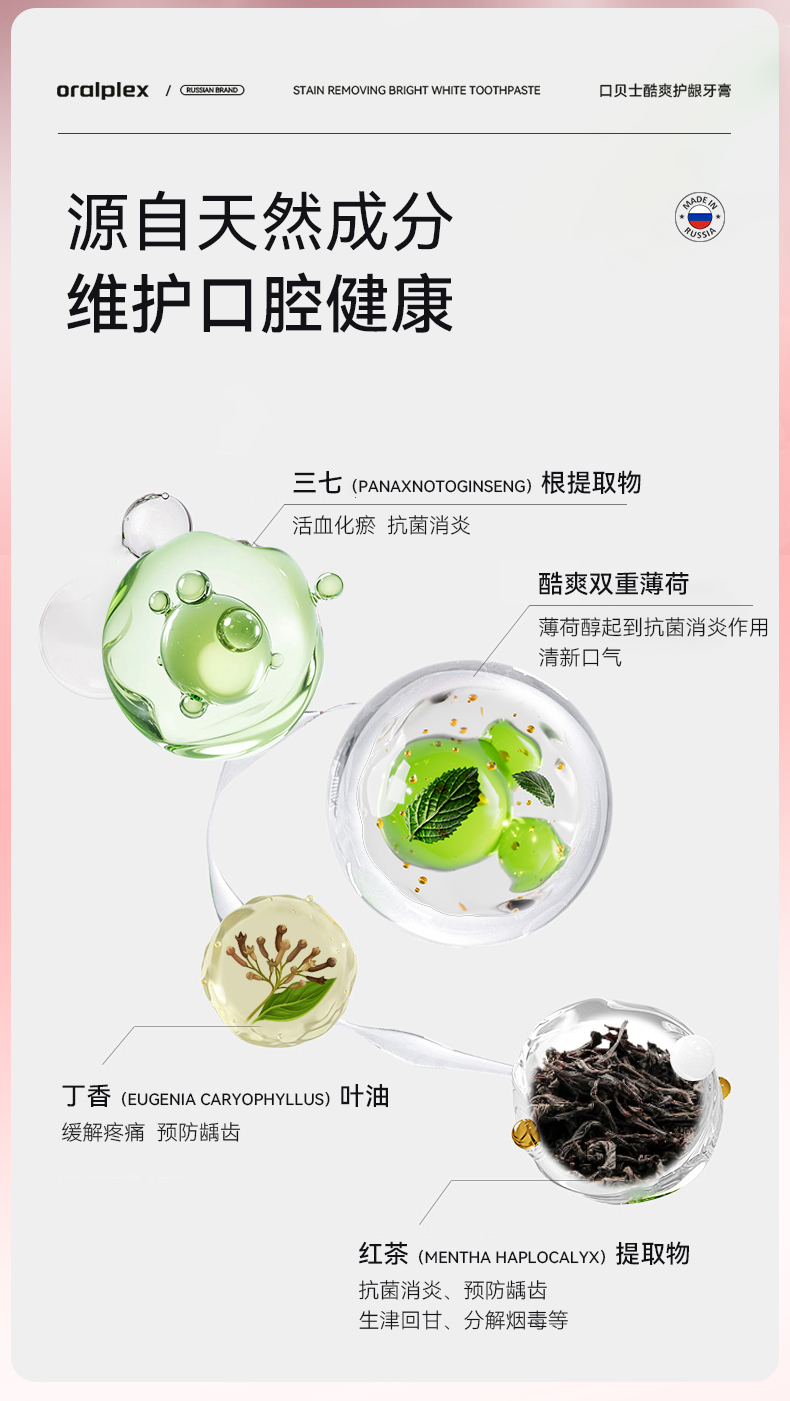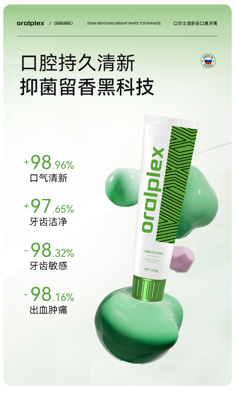 俄罗斯Oralplex口贝士牙膏组合 美白去渍 清爽护龈 口臭拜拜