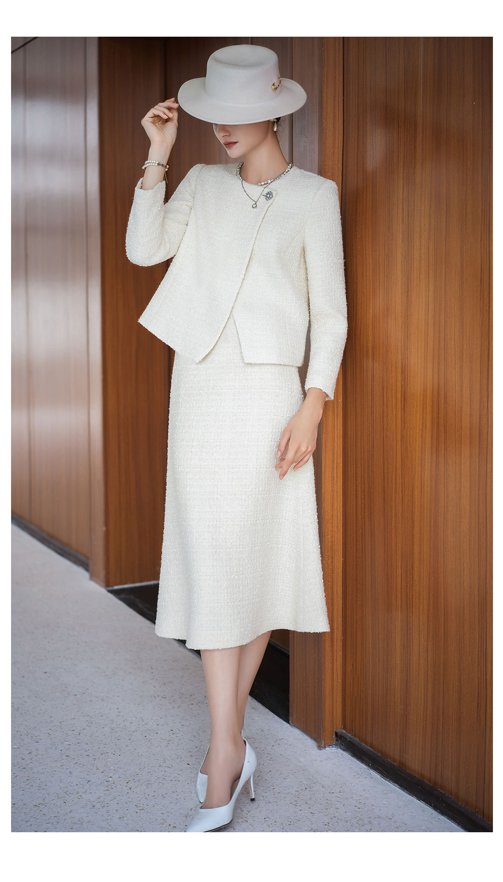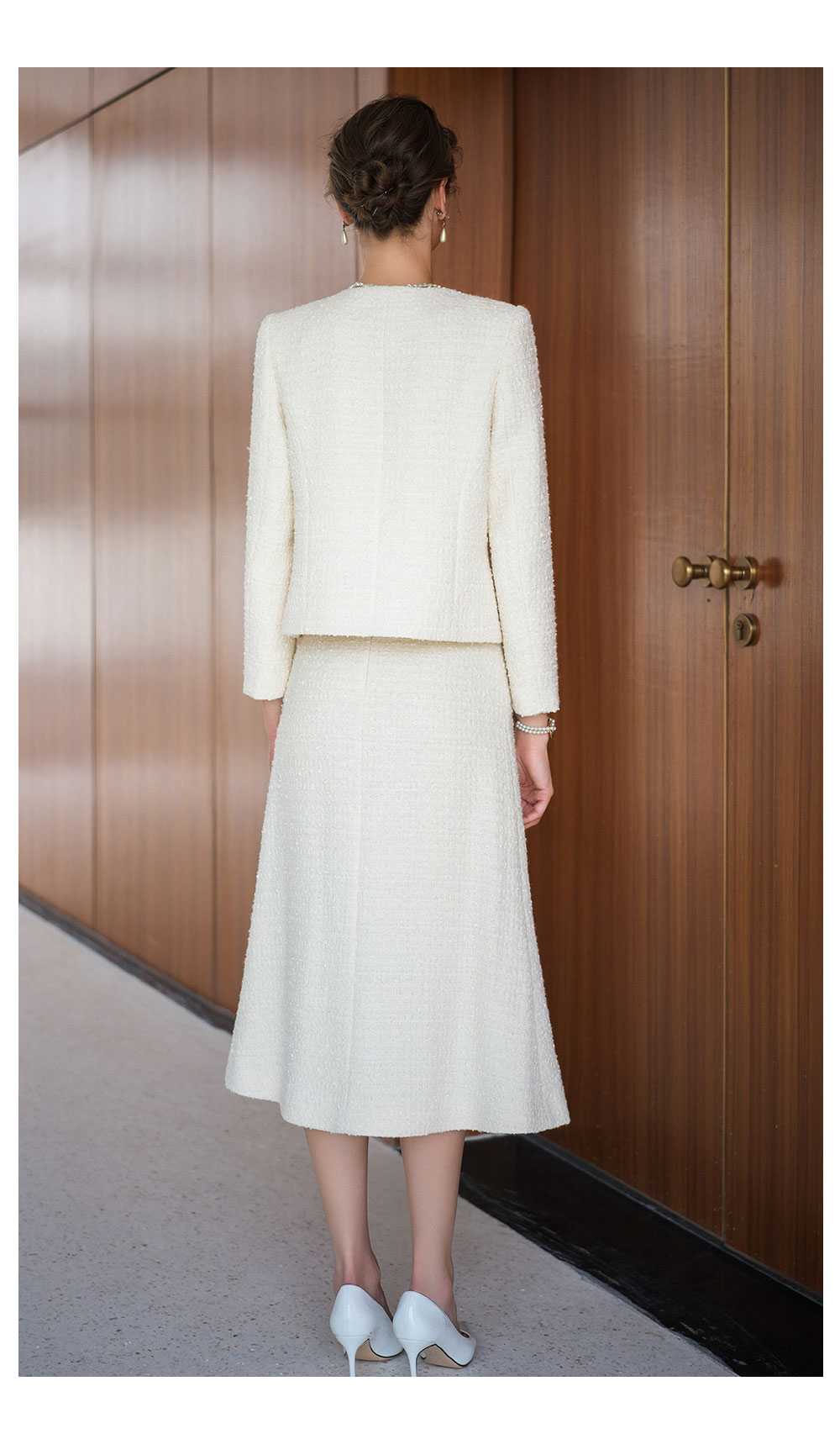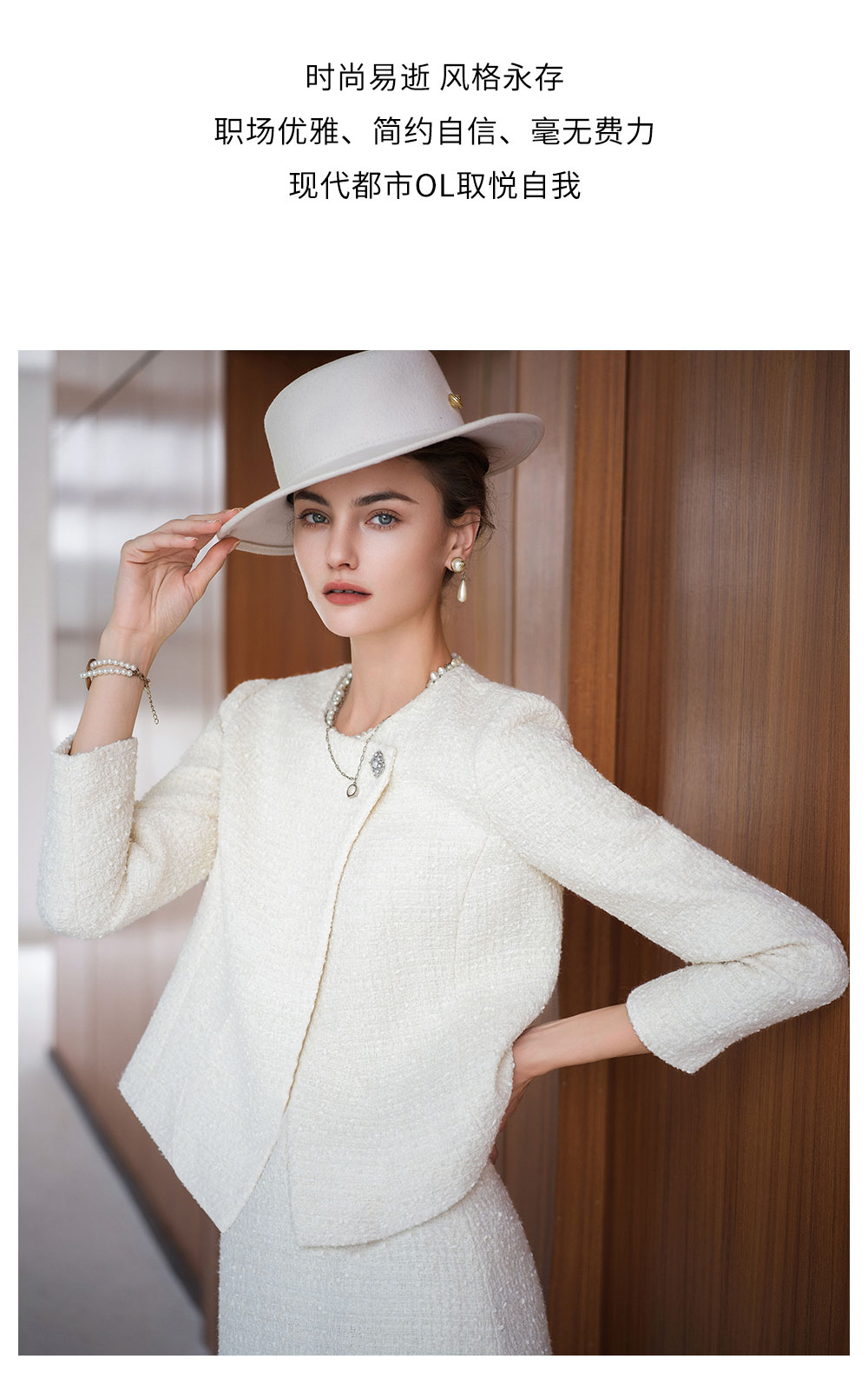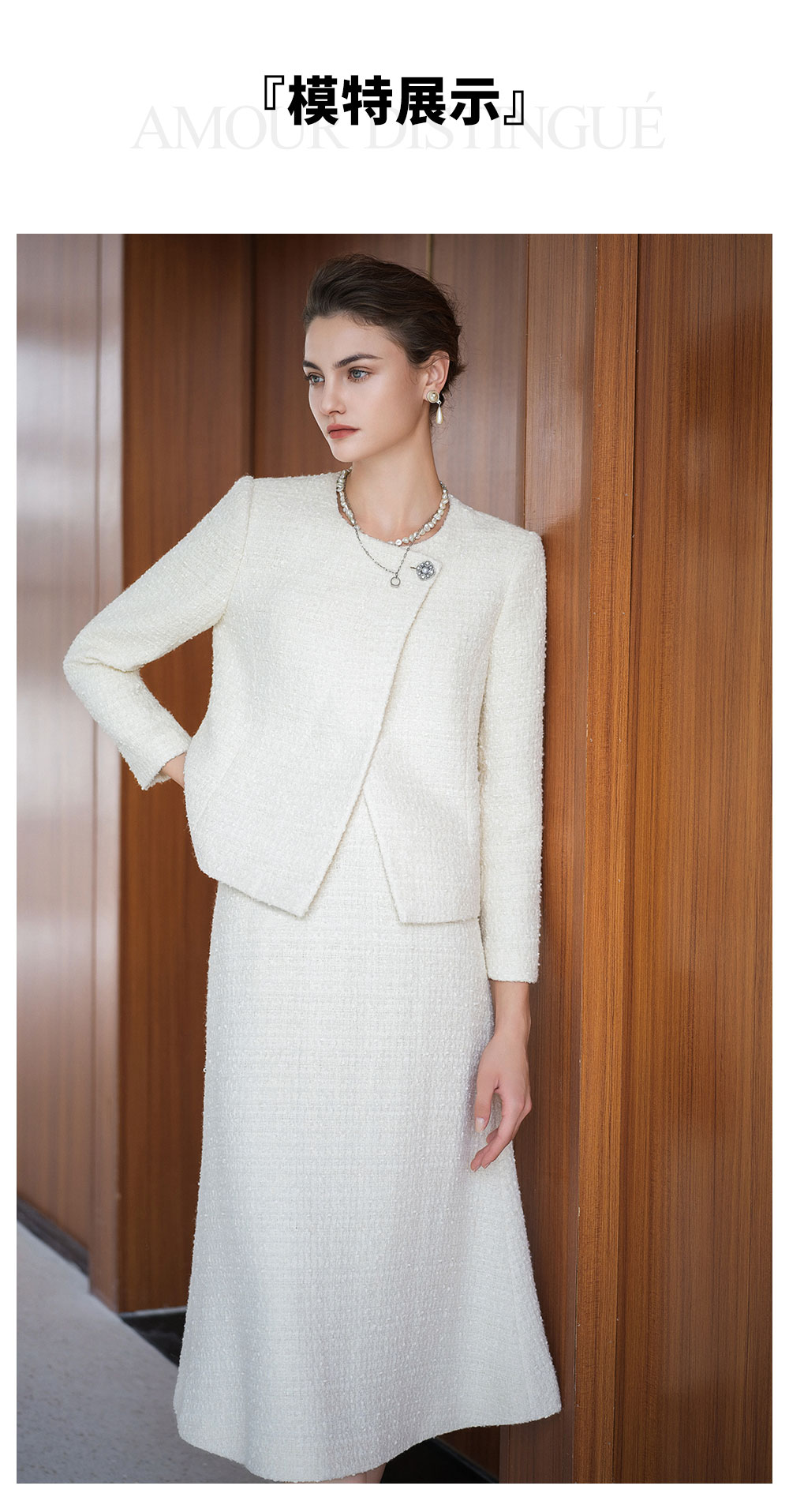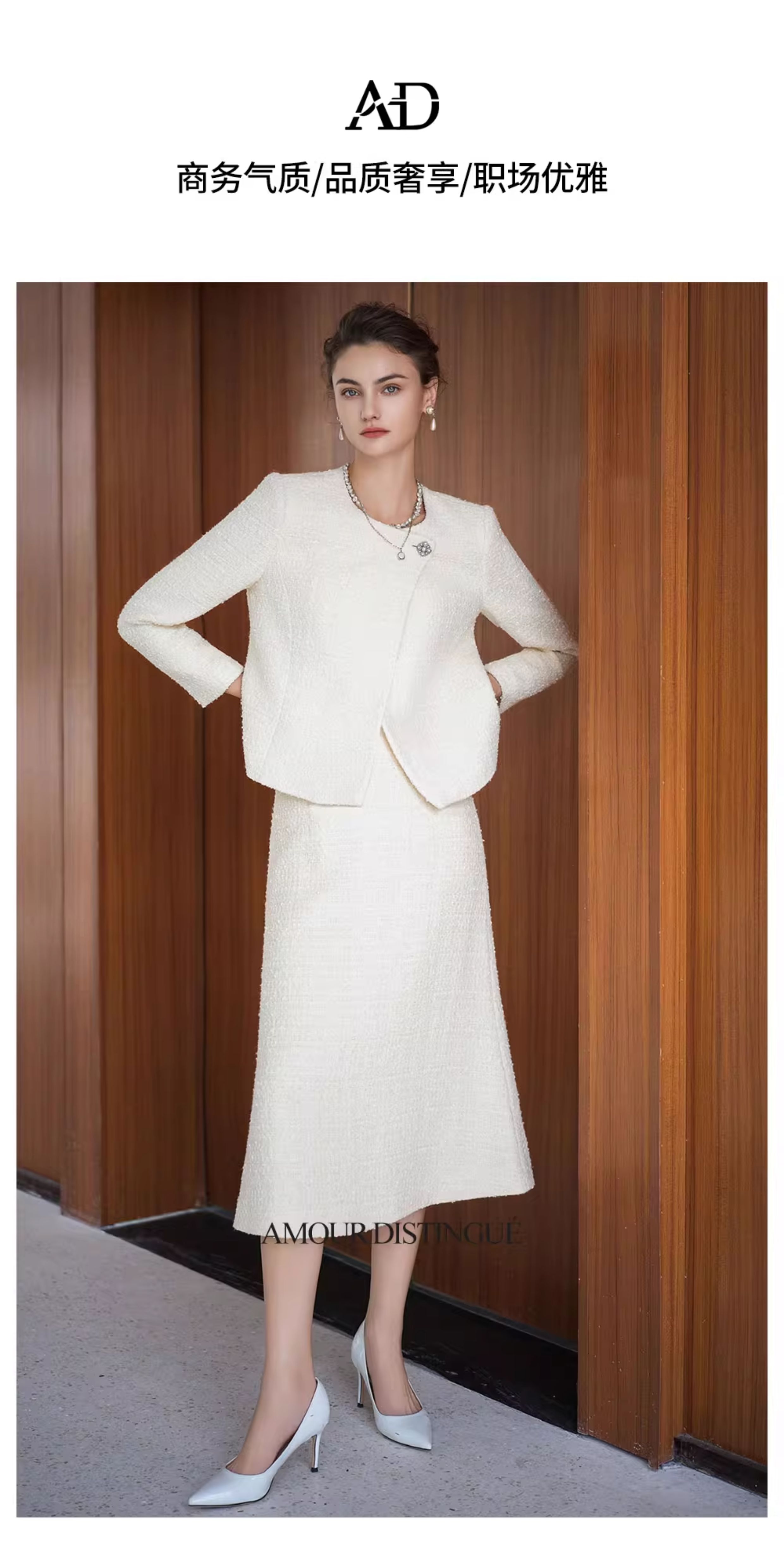 AD白色名媛小香风套装裙女2025新款秋冬高级感轻奢外套半身裙套装