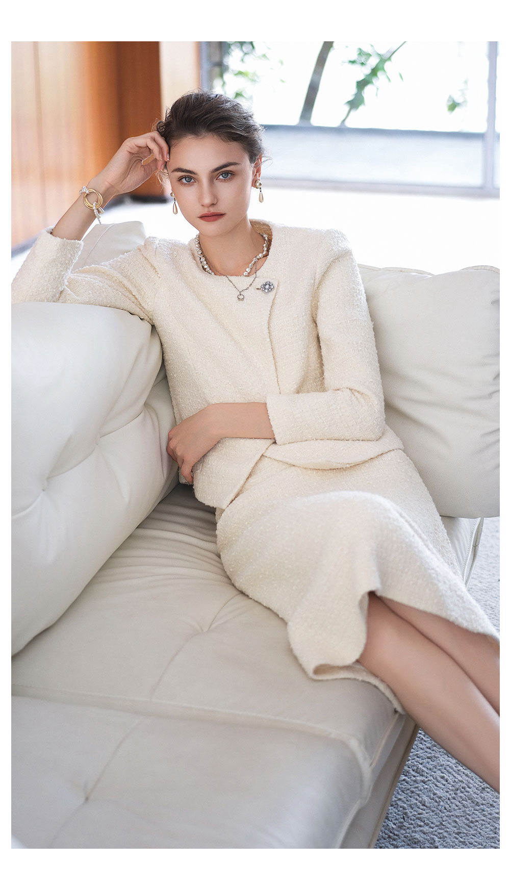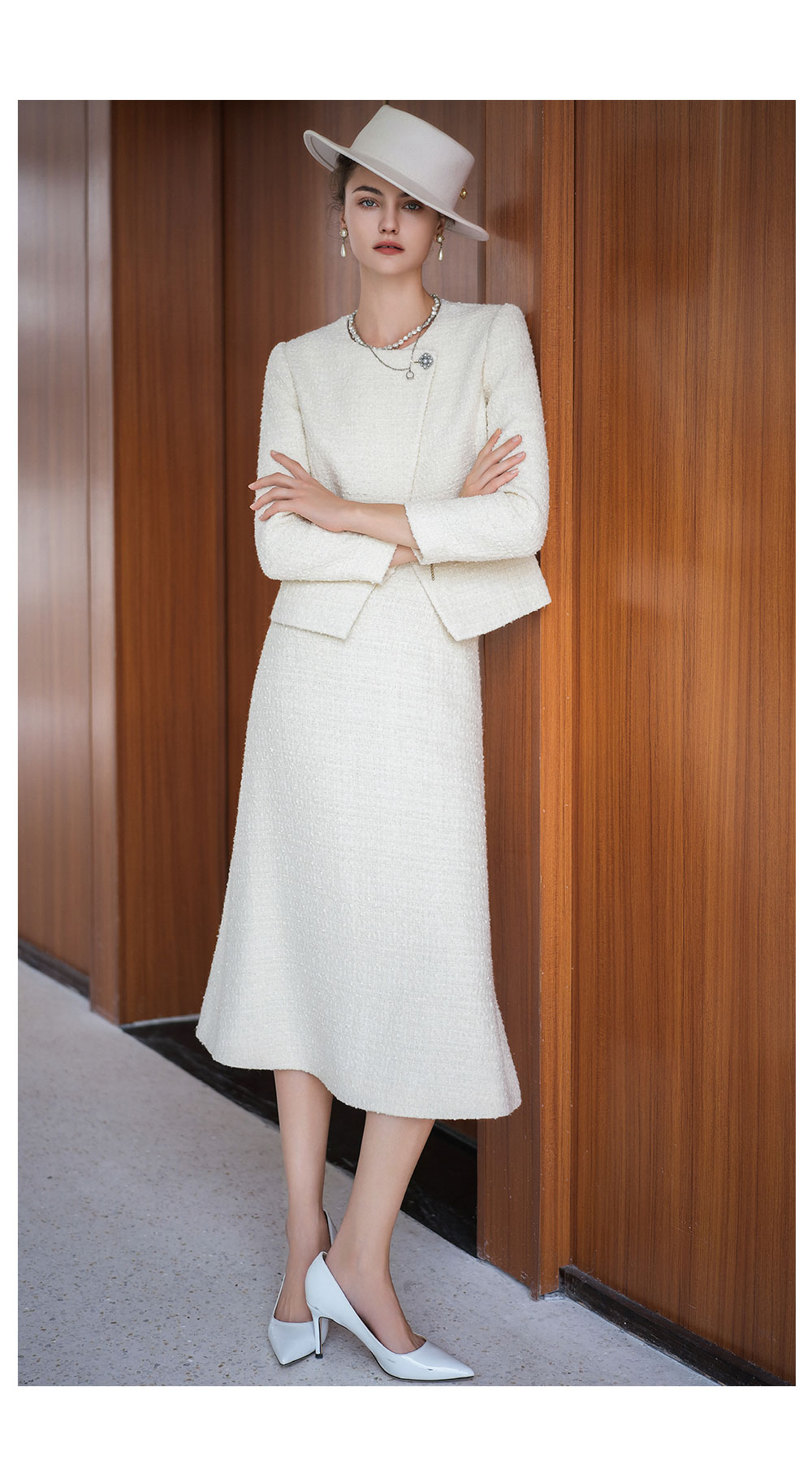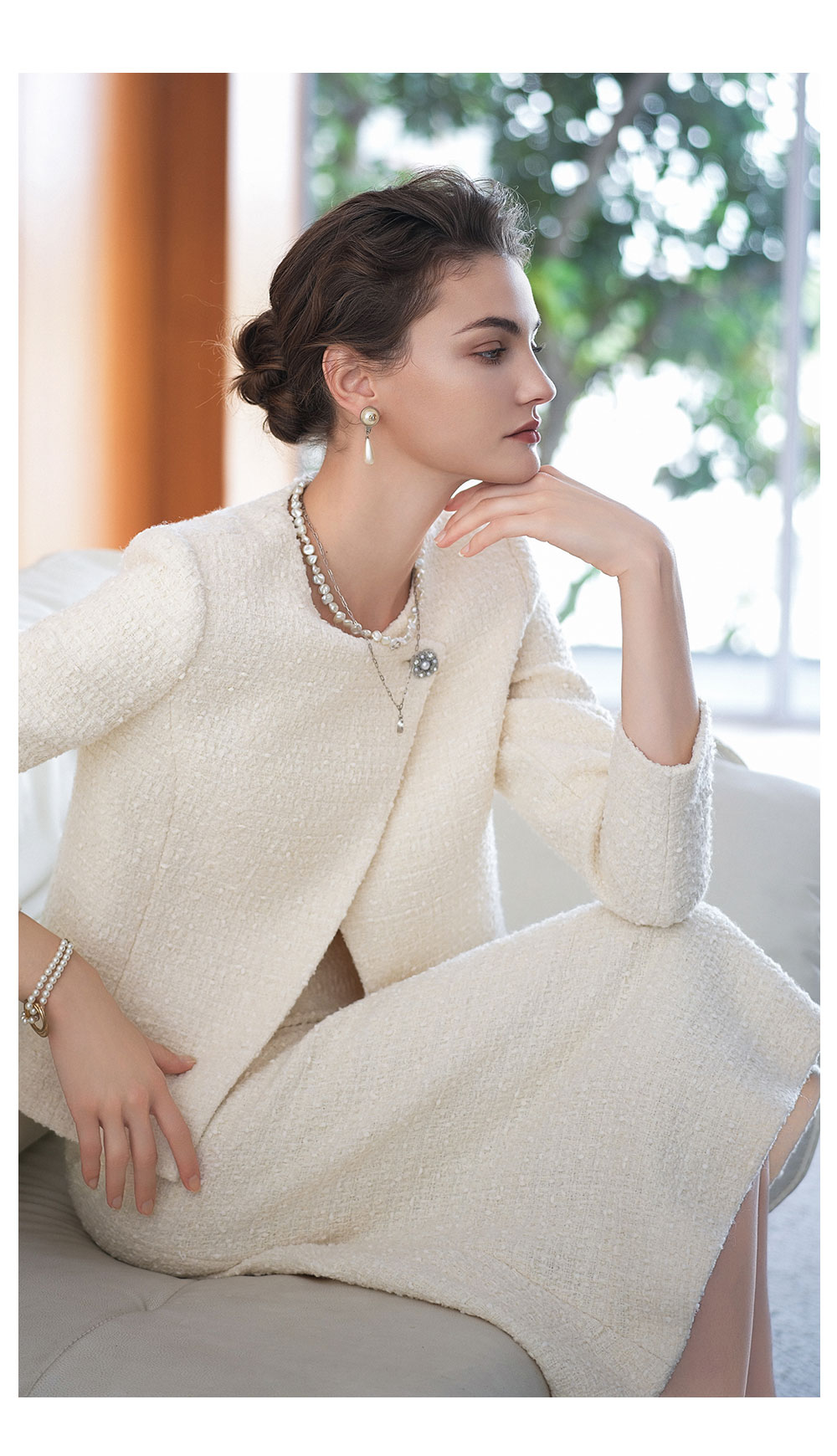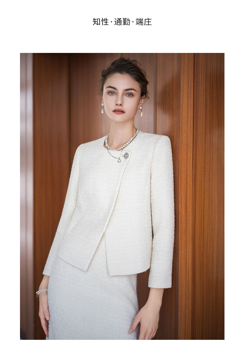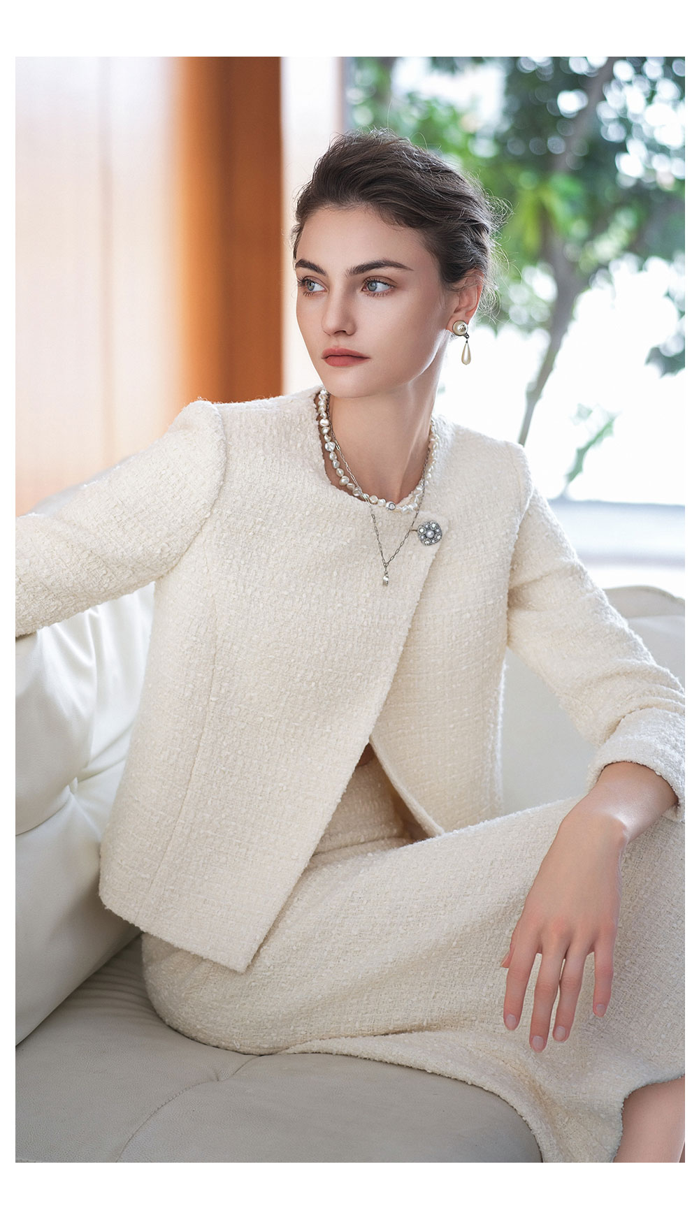 AD白色名媛小香风套装裙女2025新款秋冬高级感轻奢外套半身裙套装