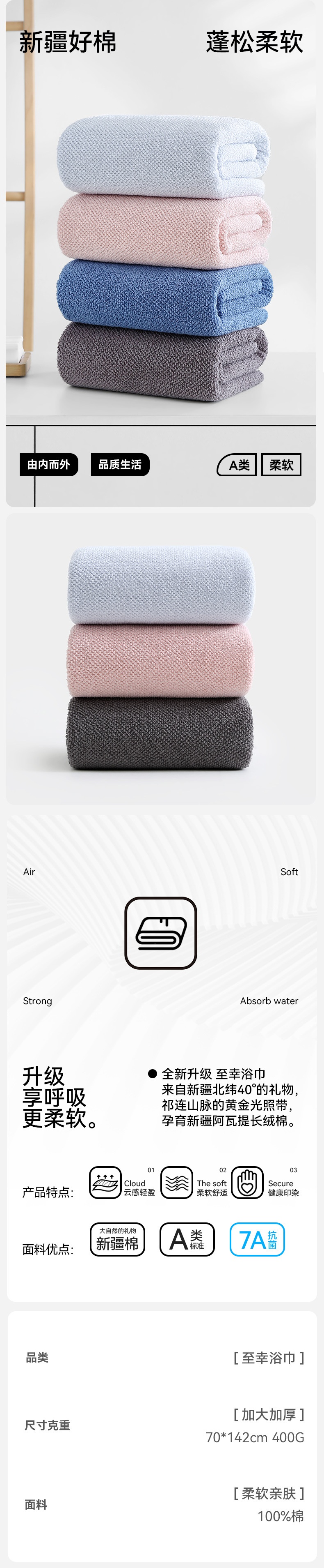 7A抗菌毛巾纯棉100全棉a类家用洗脸洗澡擦身柔软吸水纯棉毛巾浴巾套装