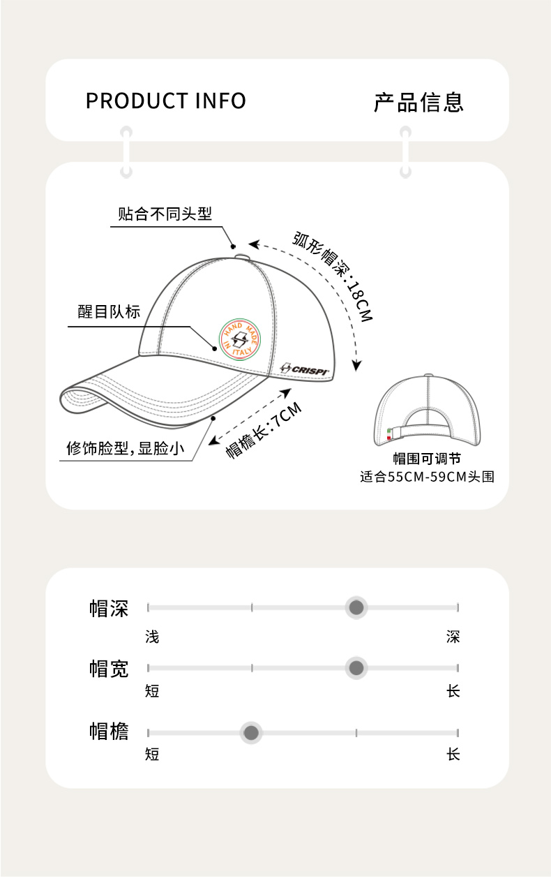 CRISPI 春季新品 时尚休闲LOGO棒球帽透气鸭舌帽显脸小遮阳帽男女同款纯色CP03250