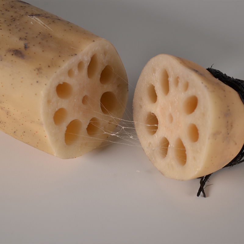 这款藕自带一层青泥巴,洗净后露出土黄色表皮,藕节粗壮,饱满匀称。