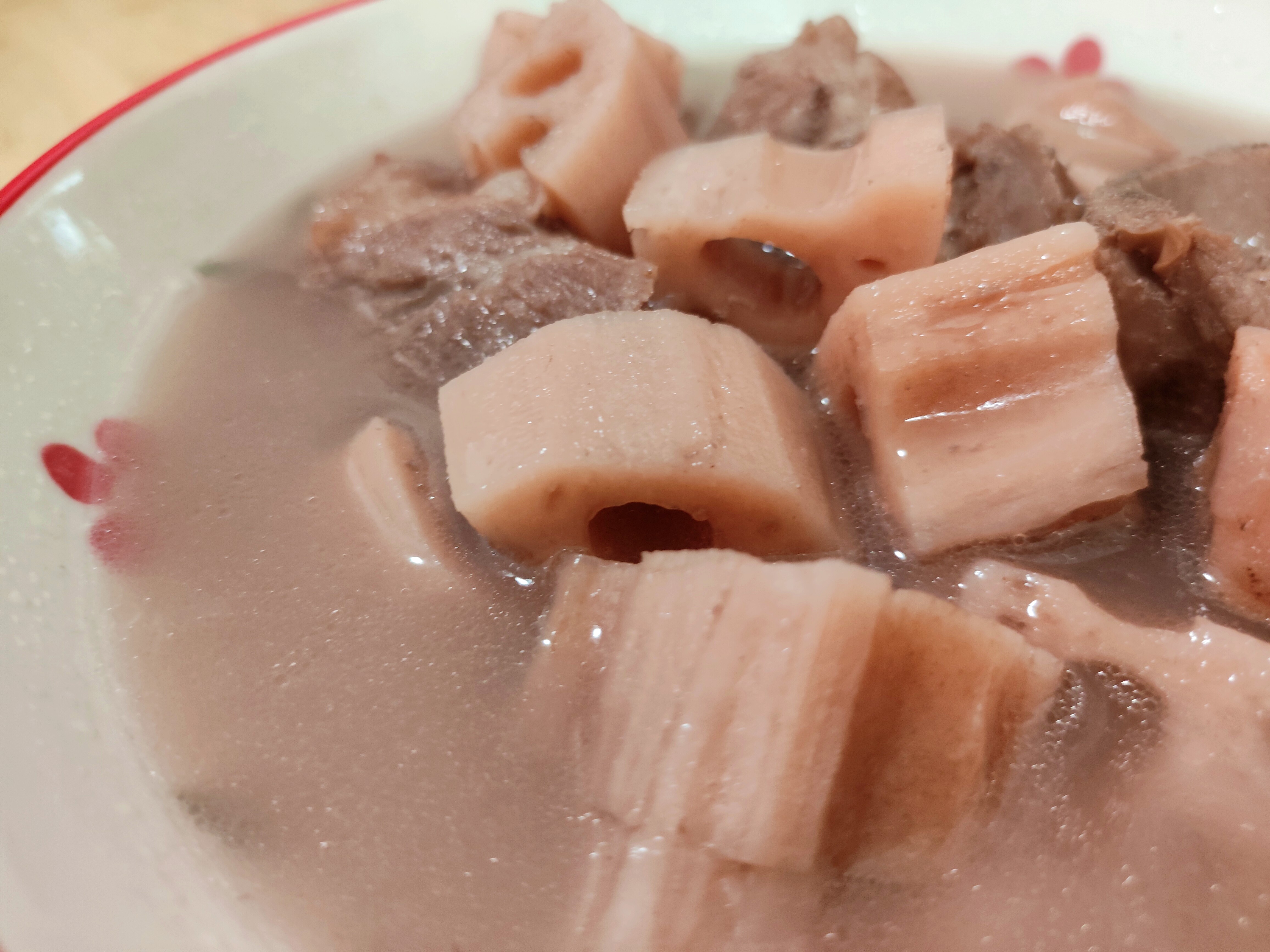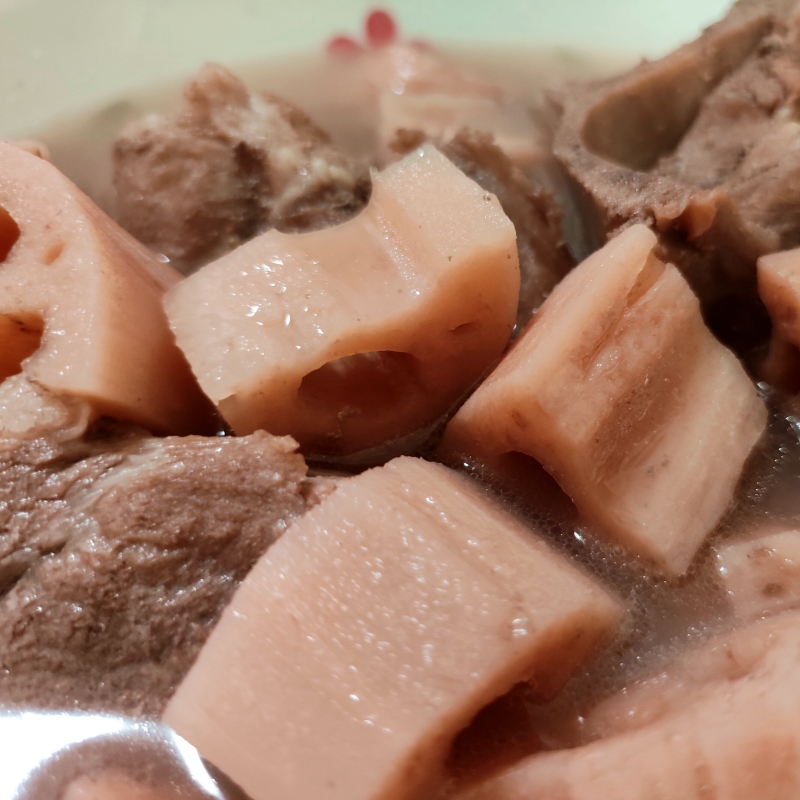 煲得够火候的话,牙齿一碰藕块就碎,咬下去还能拉出长长的丝,藕香浓郁,又粉又糯,特别绵软。