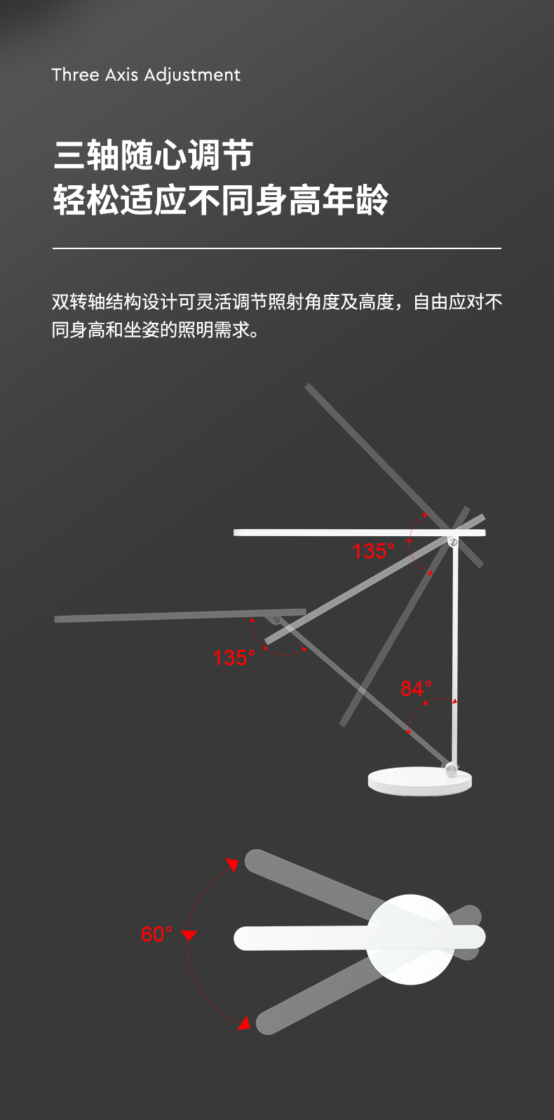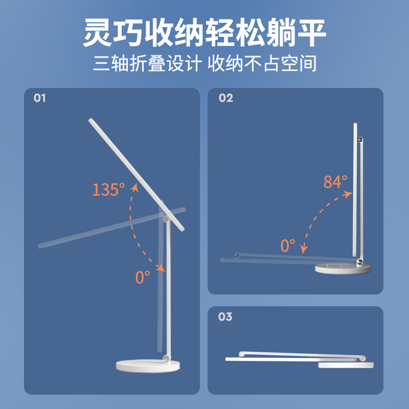 3. 三轴设计,可折叠,易收纳