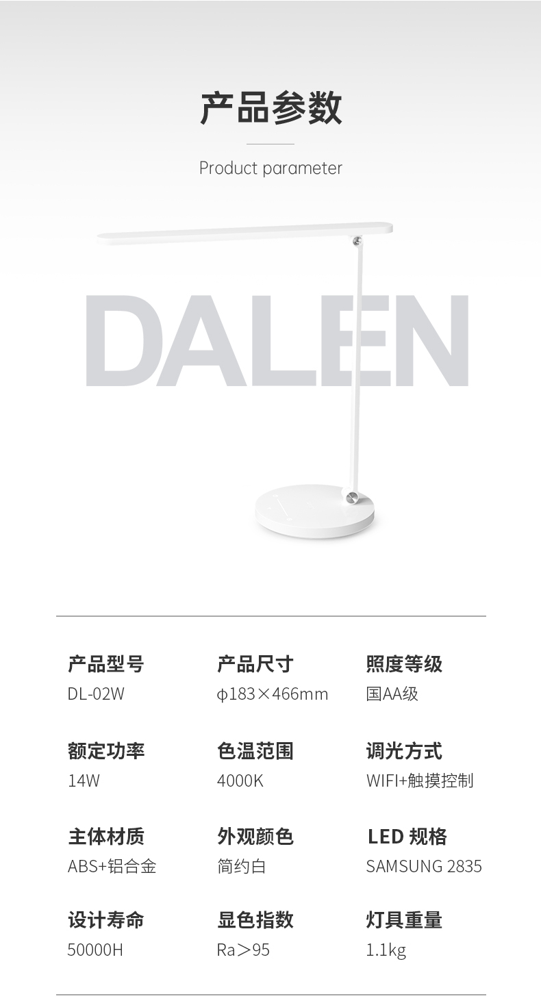 品名:达伦护眼台灯T1(DL-02W)
