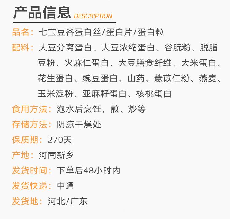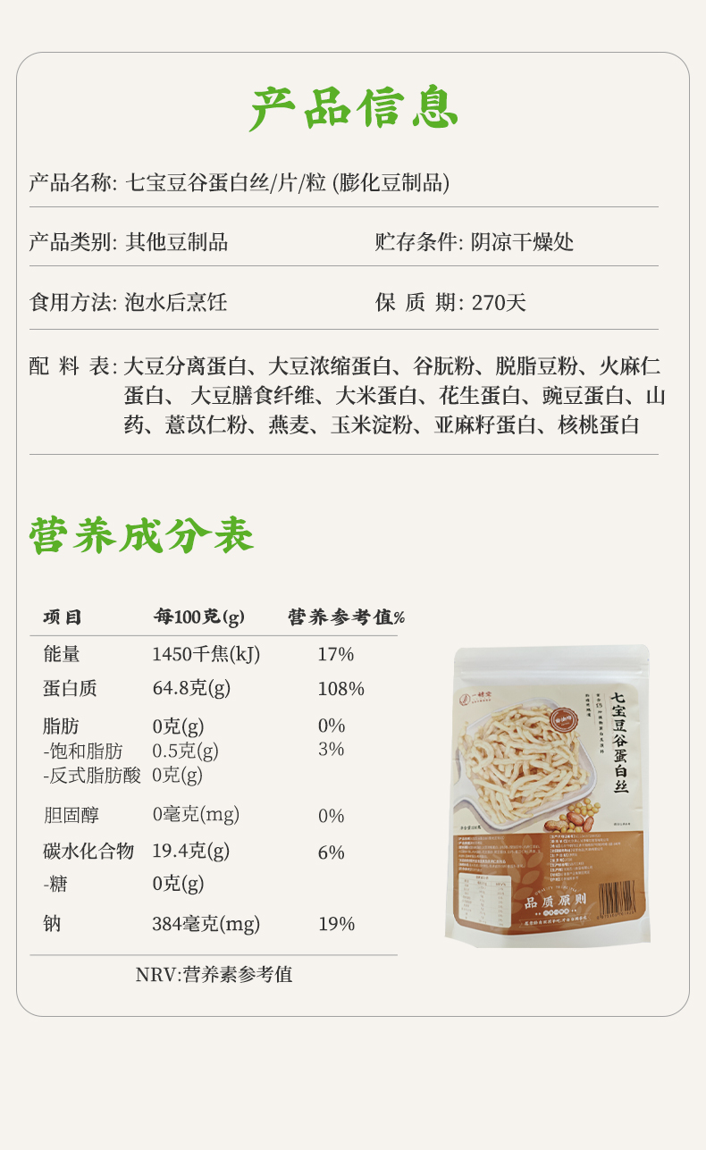 一穗堂 七宝豆谷蛋白丝/蛋白片/蛋白粒 拉丝蛋白 100g/袋