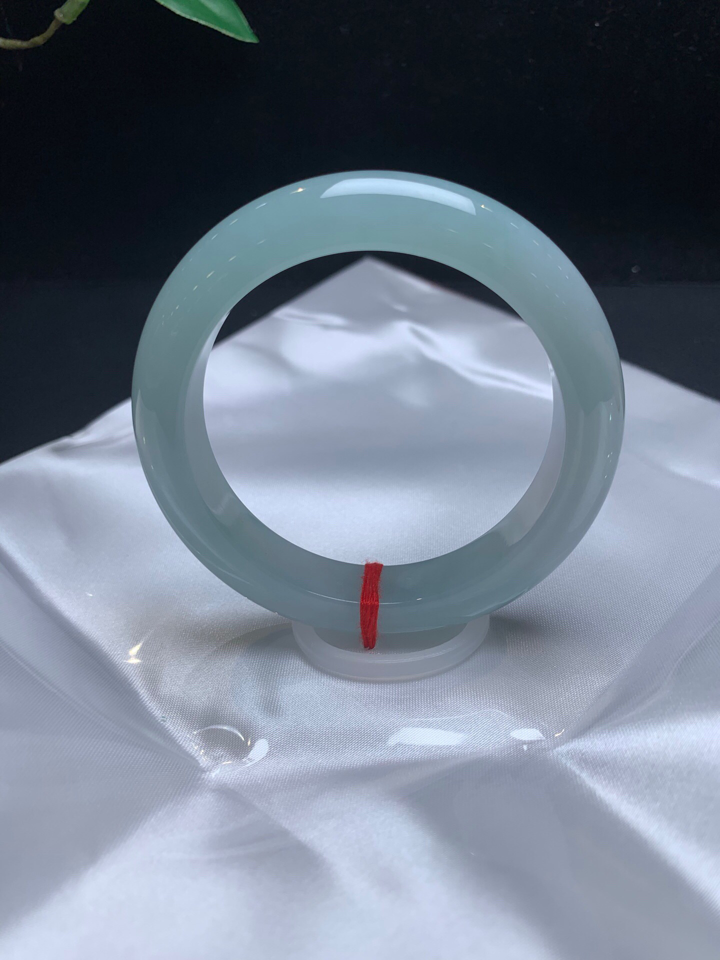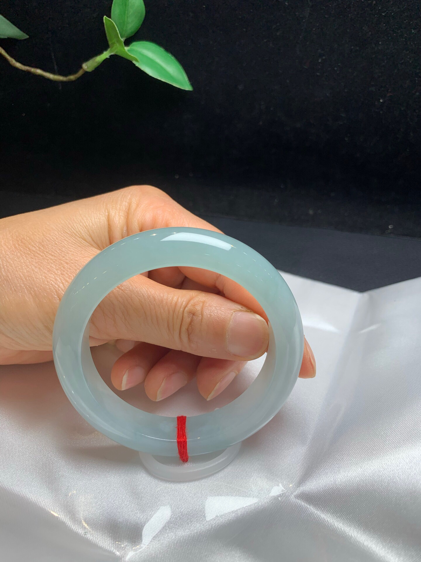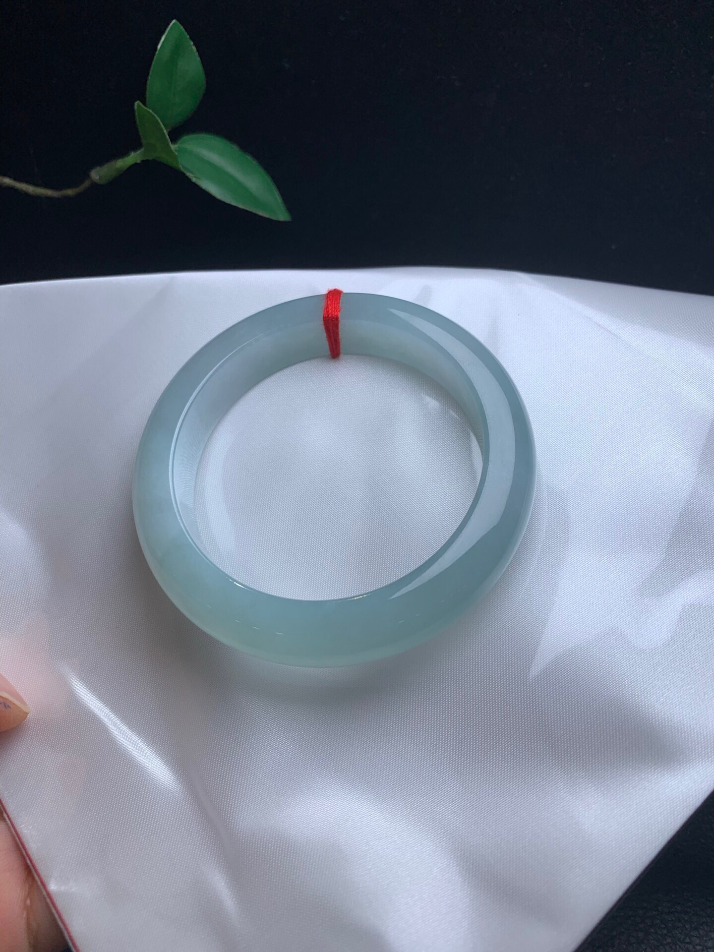 612692,54.5冰晴底手镯,12.8/9.mm、版型漂亮,整条带晴绿底色,润润的,均匀干净,完美。超值价💰19700 #优石客珠宝#香玉荟萃