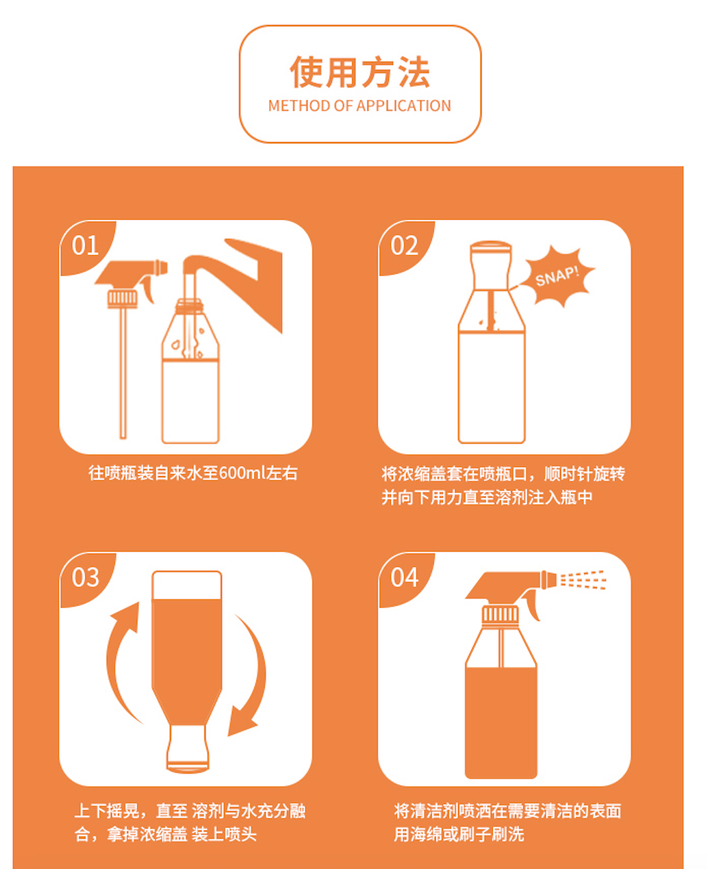 用清洁浓缩盖套住喷壶扭一下