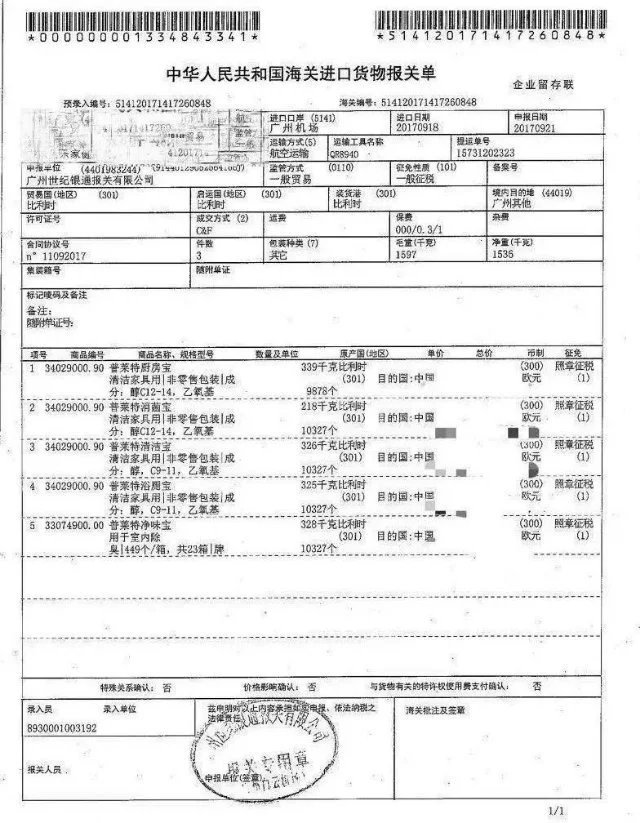 🔺合格进口报关单