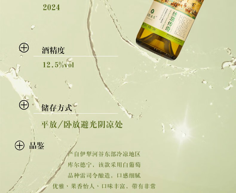 丝路酒庄国产11度传奇高级雷司令750mL干白葡萄酒新疆伊犁河谷产区2024年 传奇雷司令单支