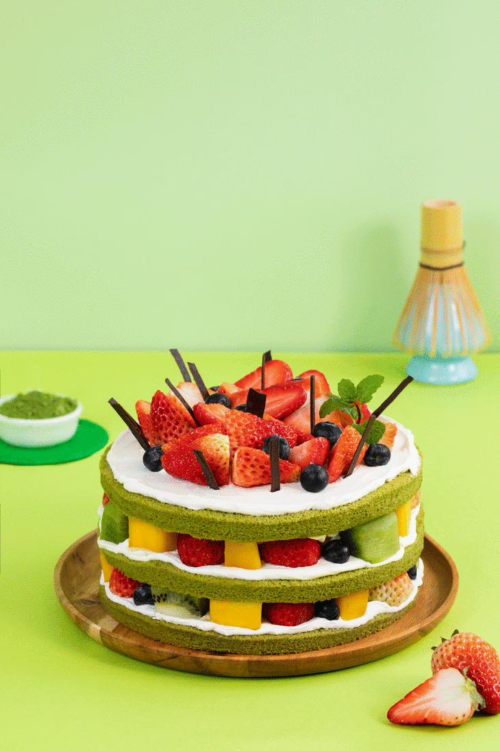 抹茶鲜果裸蛋糕-抹茶微甘,水果鲜甜,鲜果蛋糕的黄金配比,可选1.5/2.5/3.5/6磅(深圳/)