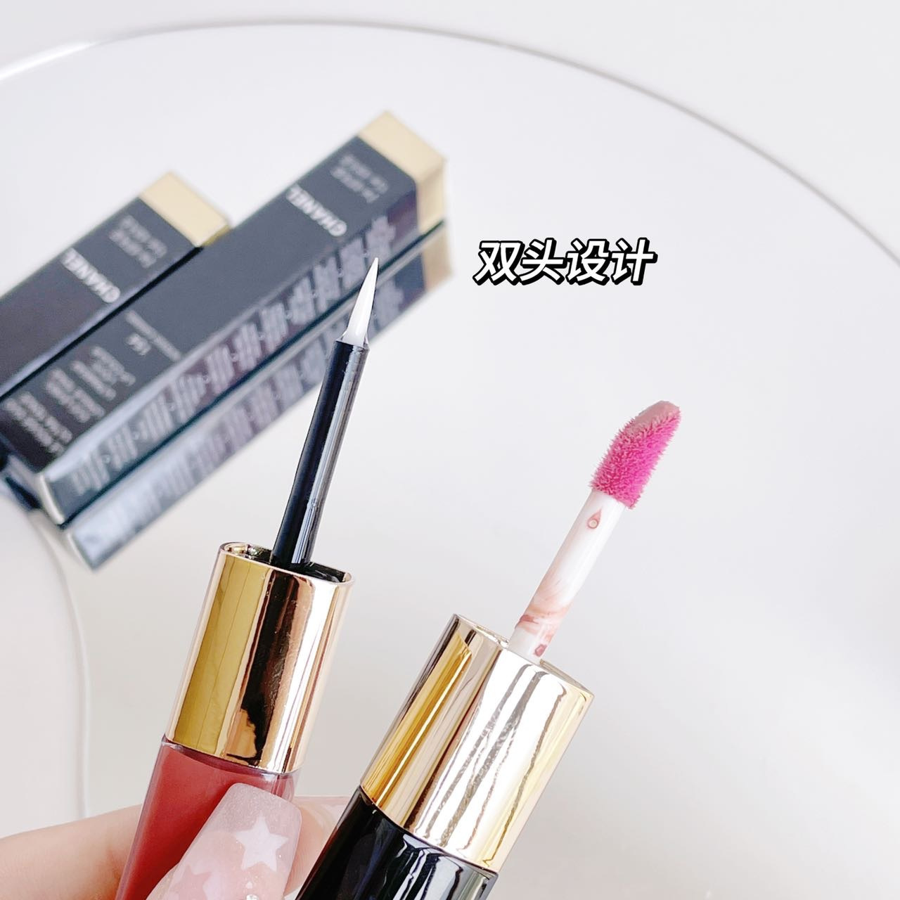 双头唇釉,叠加另外一头的透明唇釉注入了灵魂。超水润保湿,一点不油腻,等它慢慢成膜 嘴巴就像打了玻尿酸一样嘭起来,拥有健康唇色。