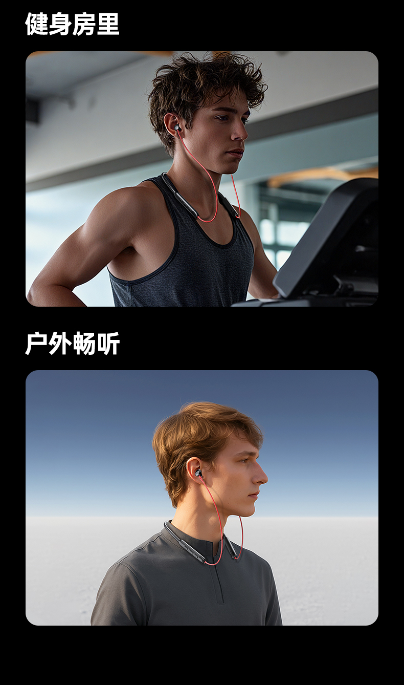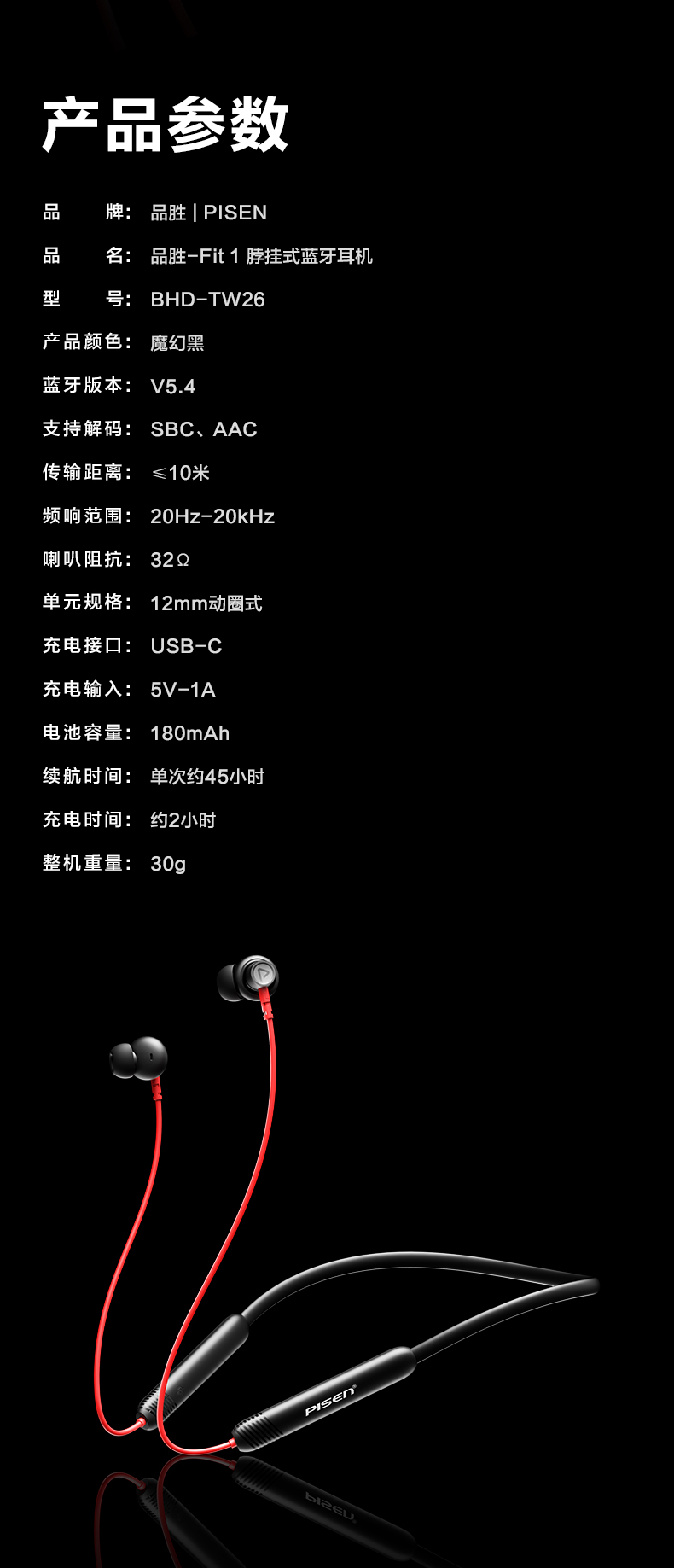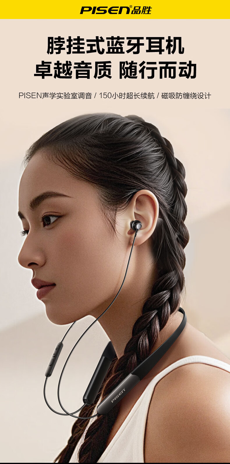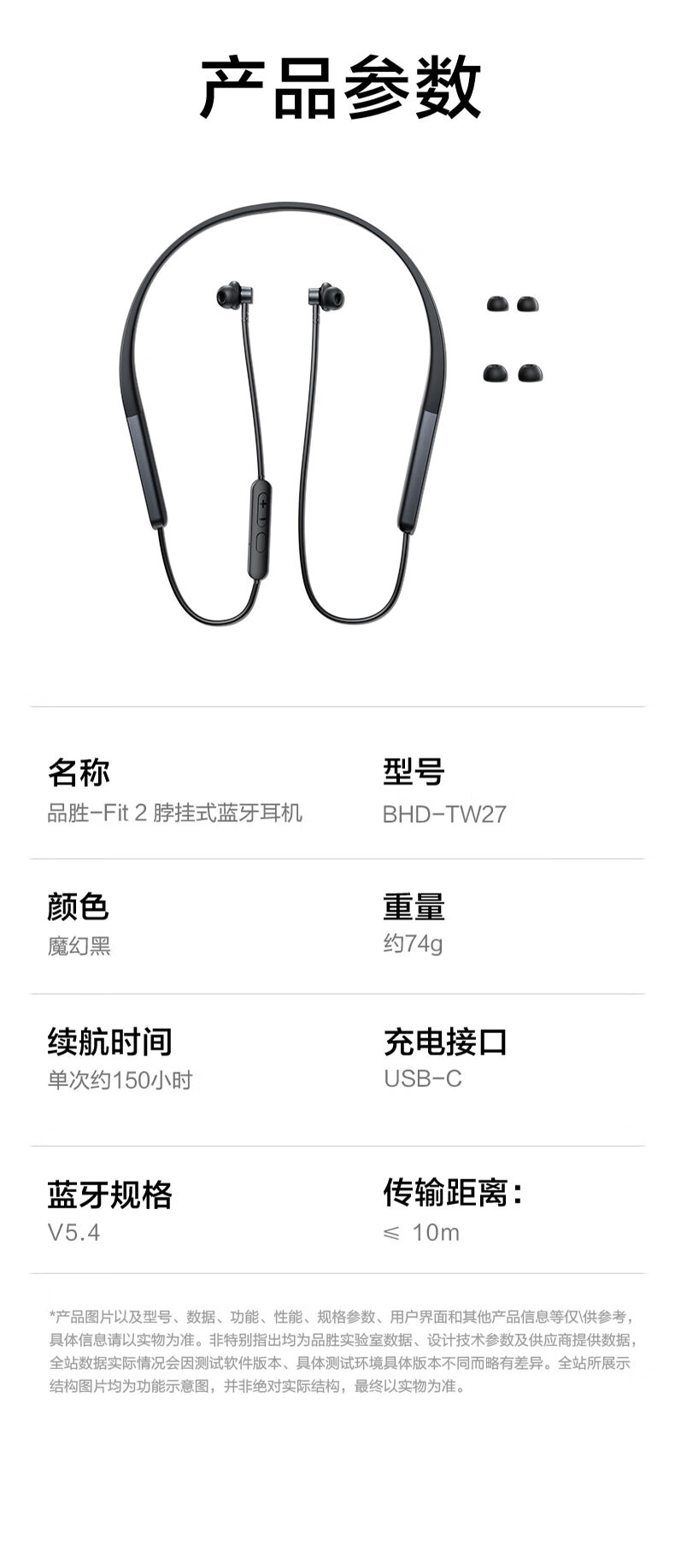 品胜 Fit1/Fit 2蓝牙耳机 挂脖式无线运动颈挂入耳式耳机 蓝牙5.4适用华为苹果小米
