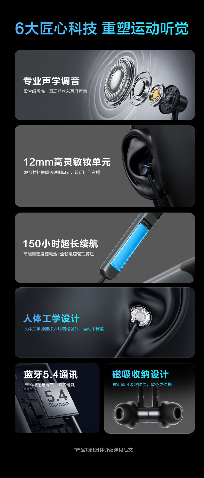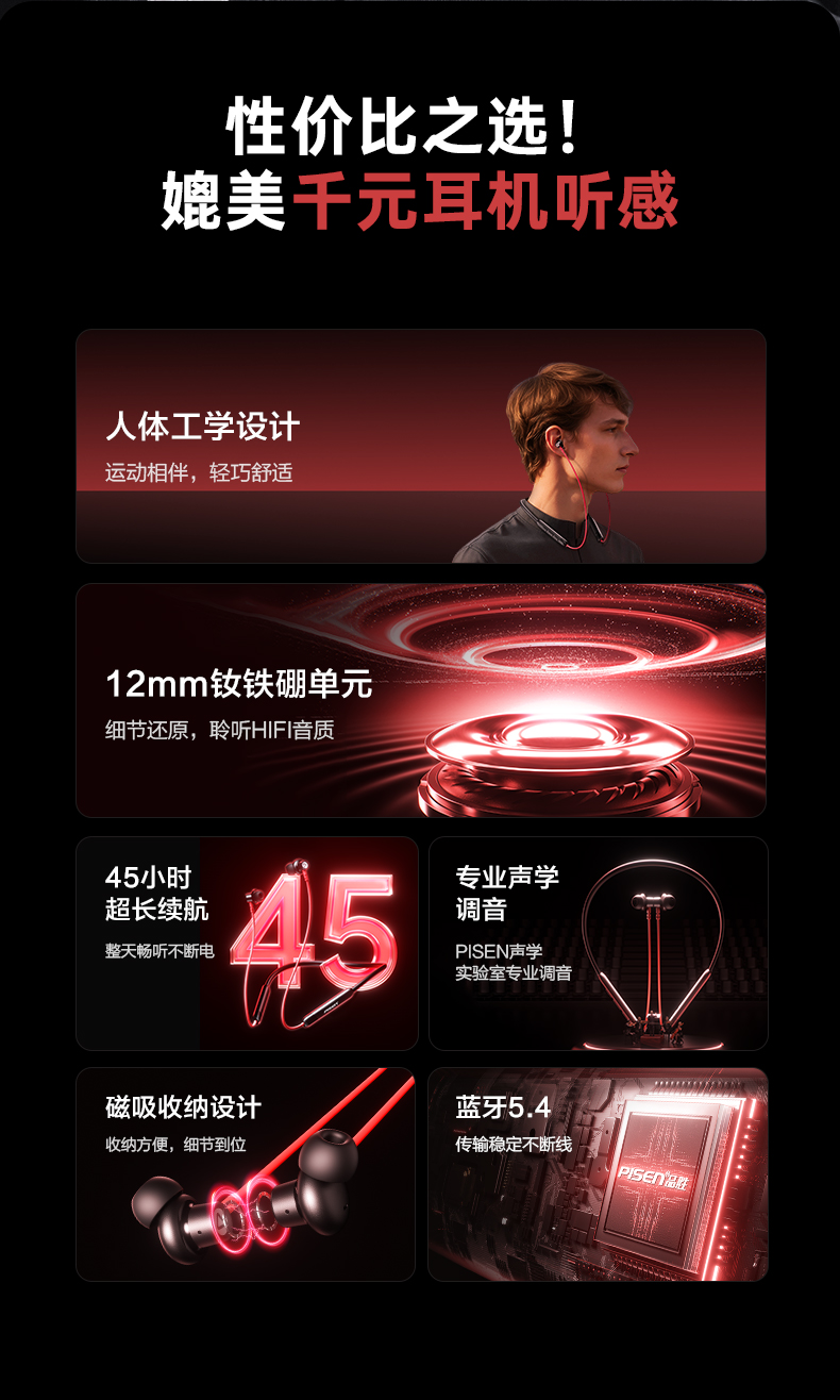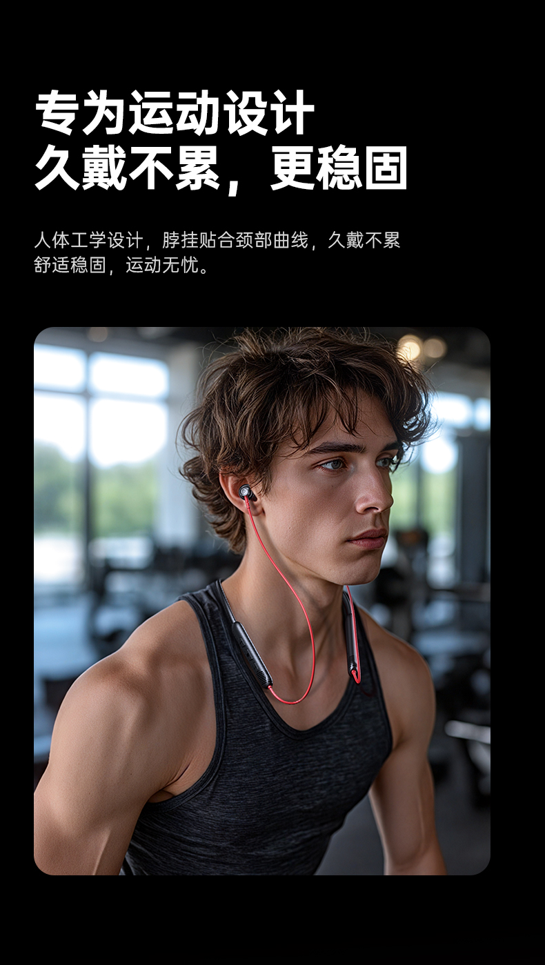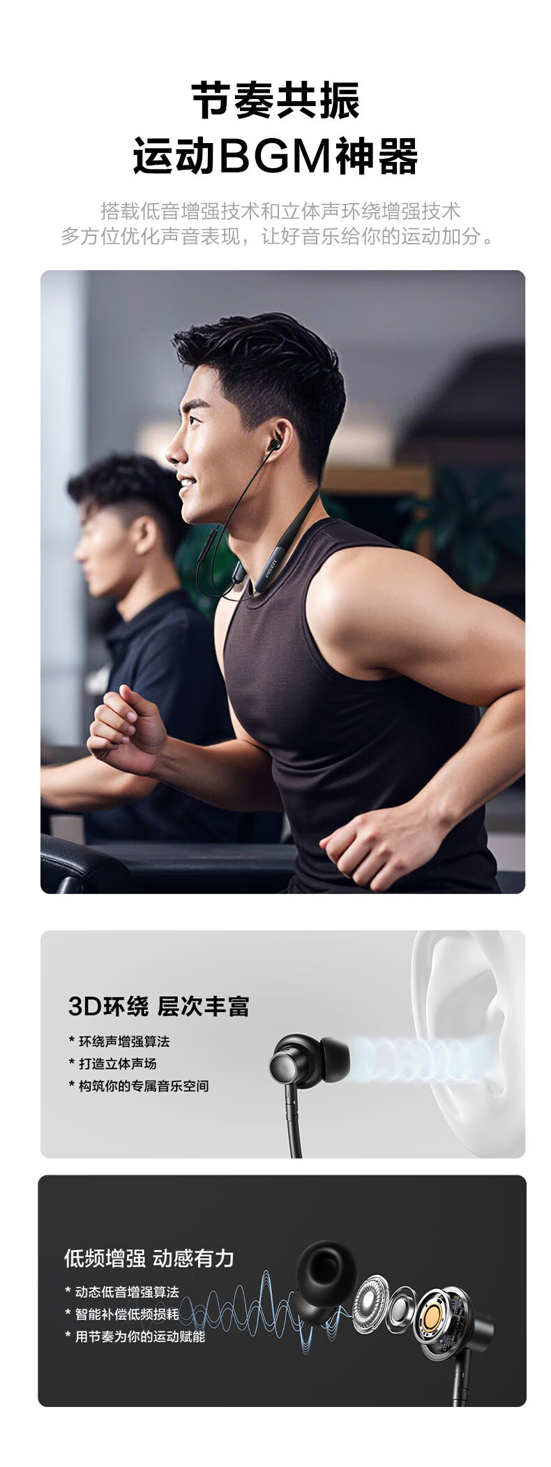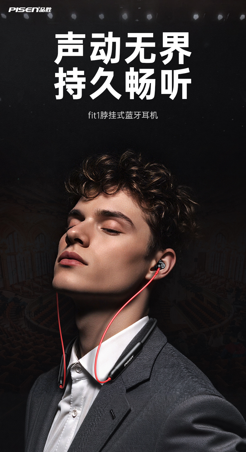 品胜 Fit1/Fit 2蓝牙耳机 挂脖式无线运动颈挂入耳式耳机 蓝牙5.4适用华为苹果小米