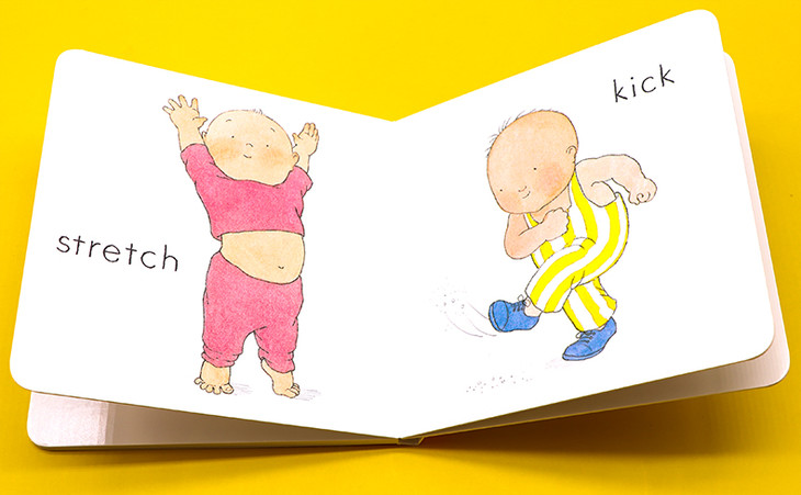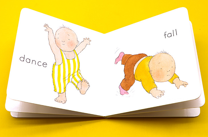 Helen Oxenbury特别擅长使用彩色铅笔,水彩以及不透明水彩来创作。从观察身边自家孩子入手,从了解孩子的原始需求出发。她在创作之前,会先自己揣摩角色之间的互动,从多方面观察,进而捕捉角色间各种姿态,动作上的细微差异。比如在上个世纪八十年代中期,在她引领繁荣的低幼纸板童书流行设计中,她总是习惯深入细致体察这个年龄段幼童的日常行为表情,并将之真实生动地通过画笔呈现,为读者带来极富生活气息的成长写照画面。