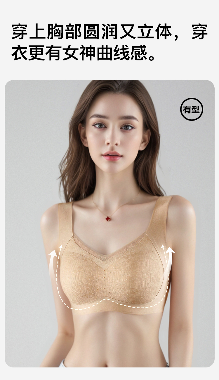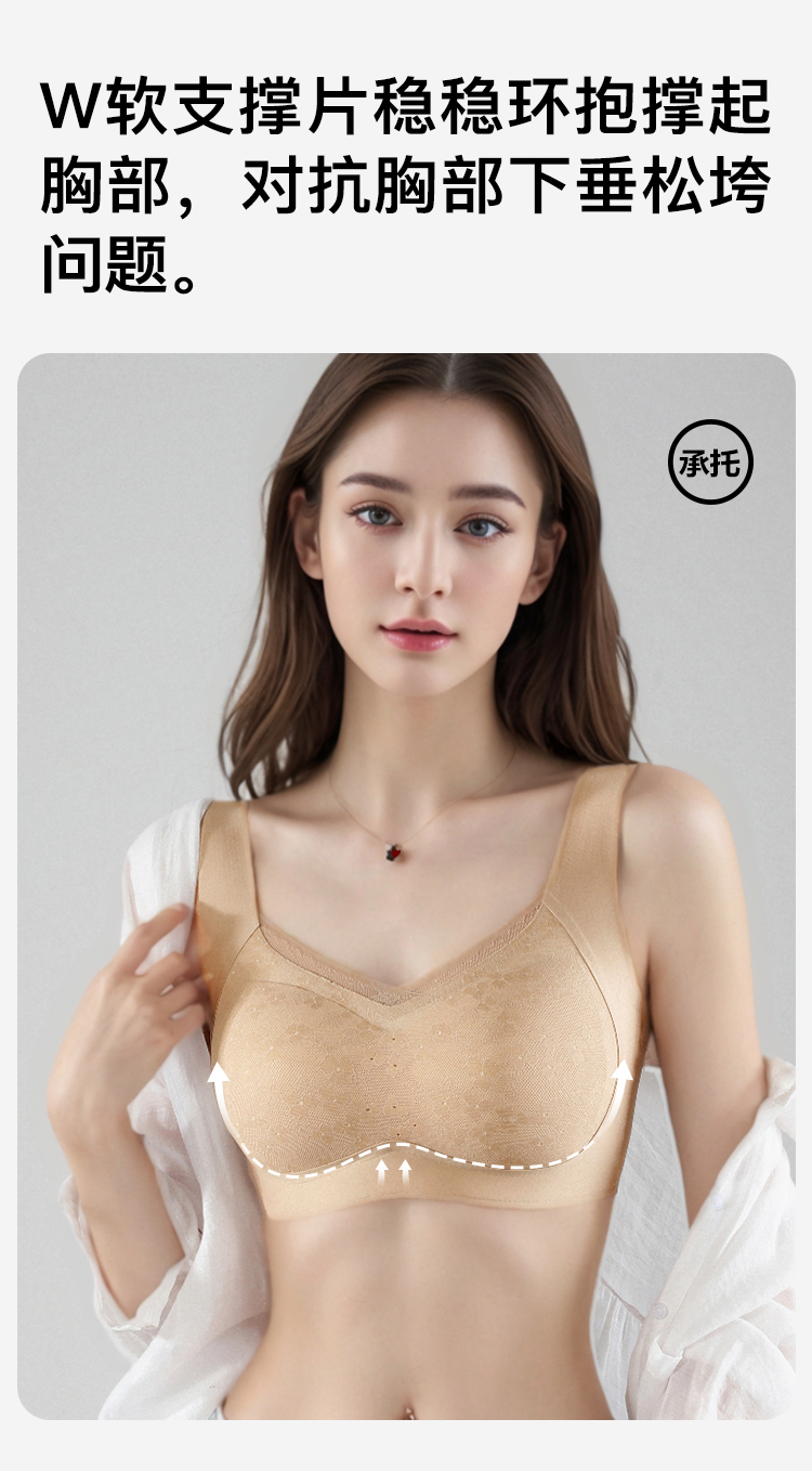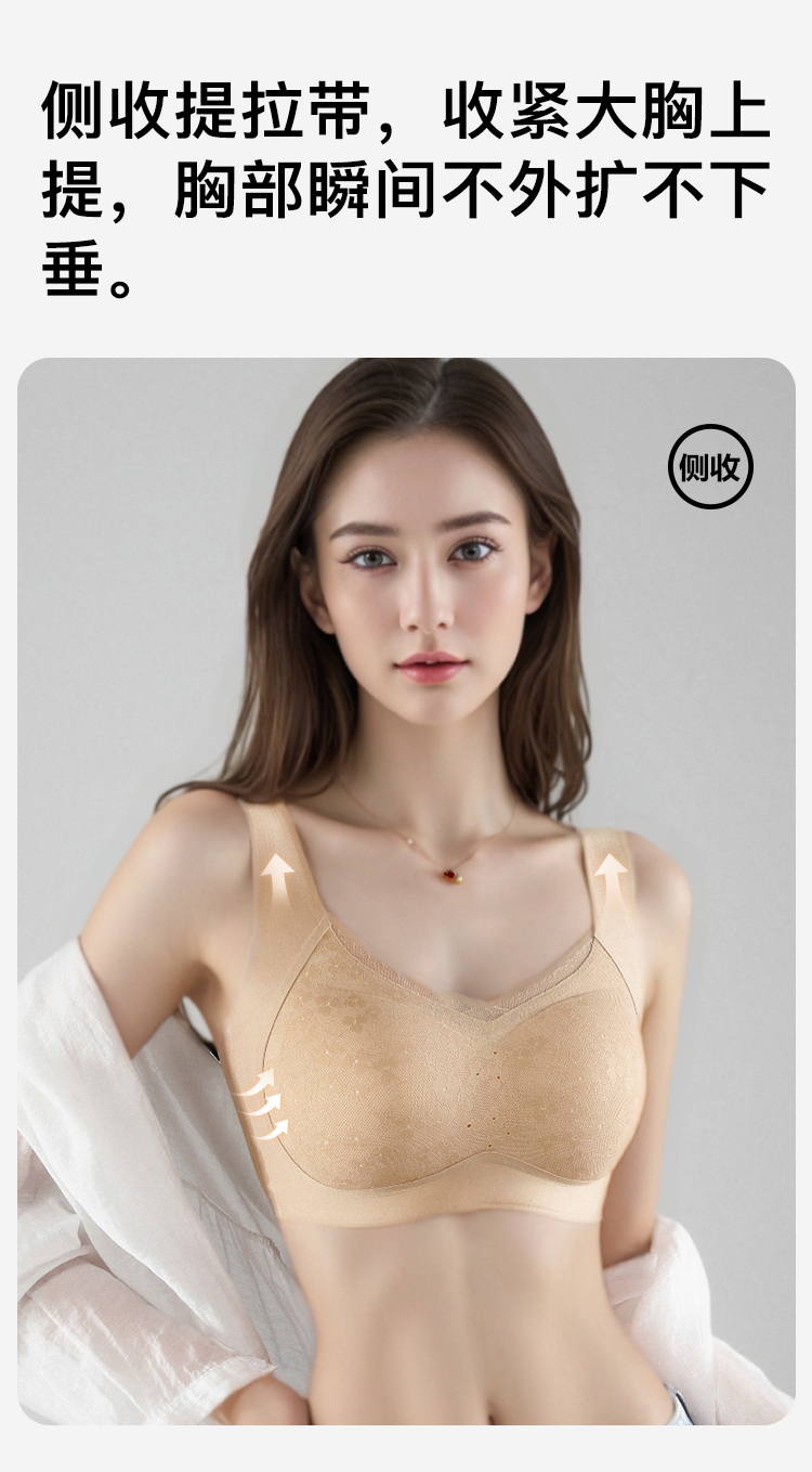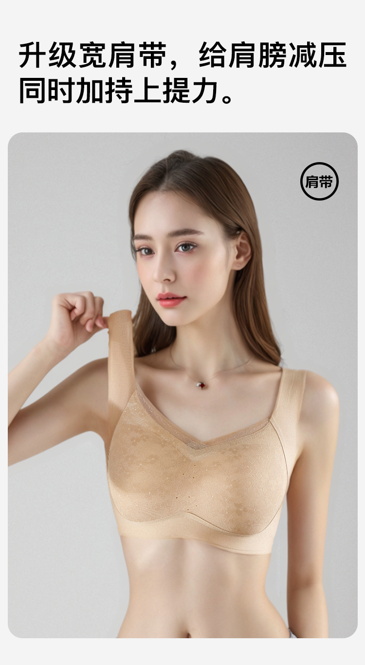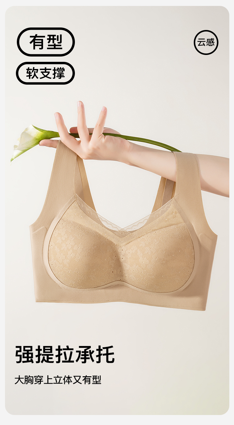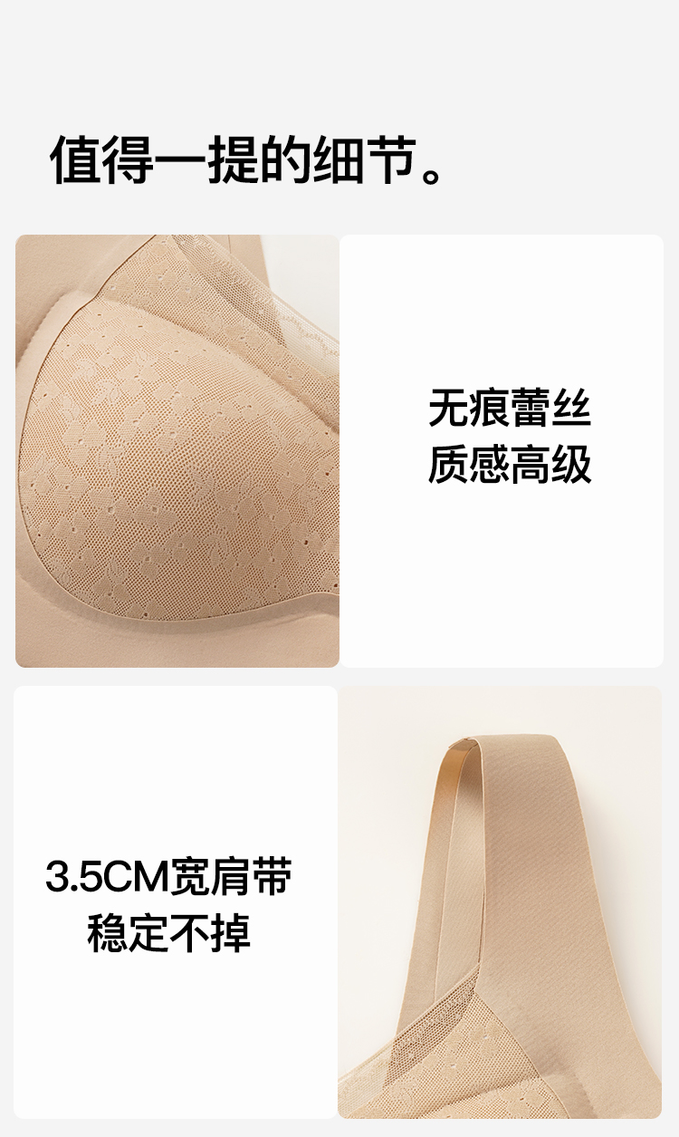【无痕粉底液内衣】大胸全包显小提拉防下垂蕾丝美背文胸无钢圈雅韵生花