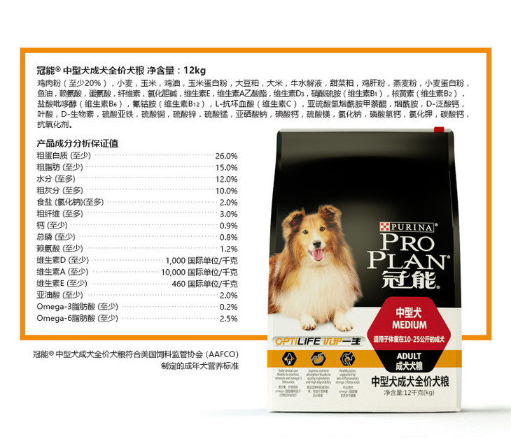 冠能中型犬成犬全价犬粮12kg