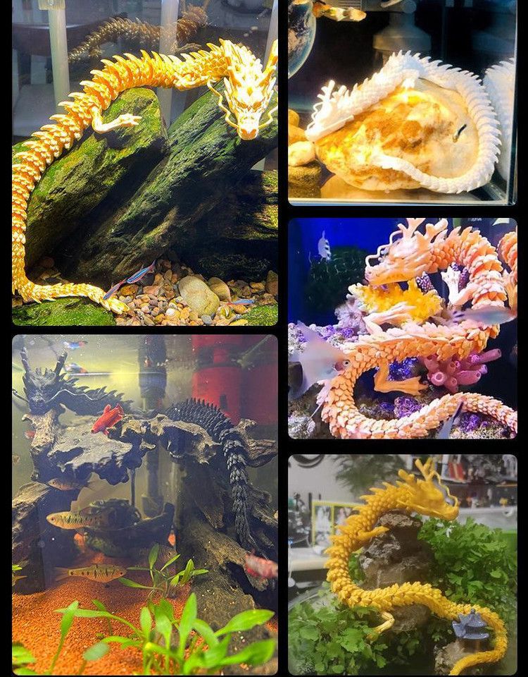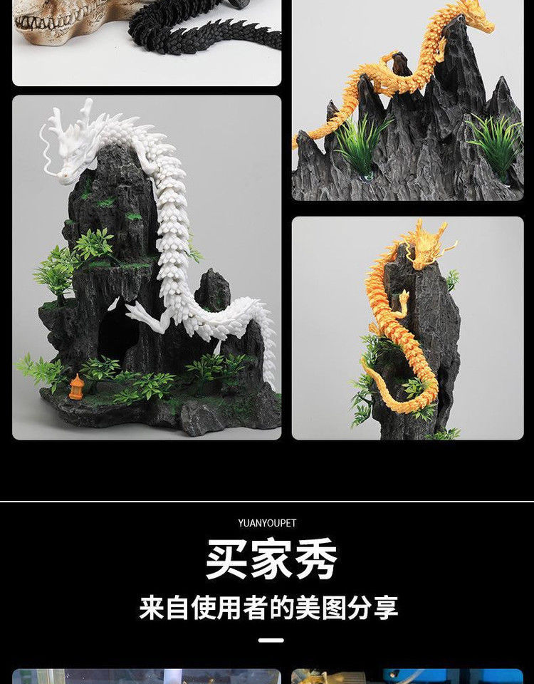 中国龙创意摆件鱼缸造景汽车装饰3d打印创意手办儿童玩具关节活动
