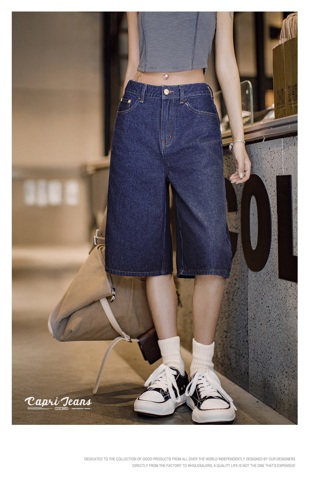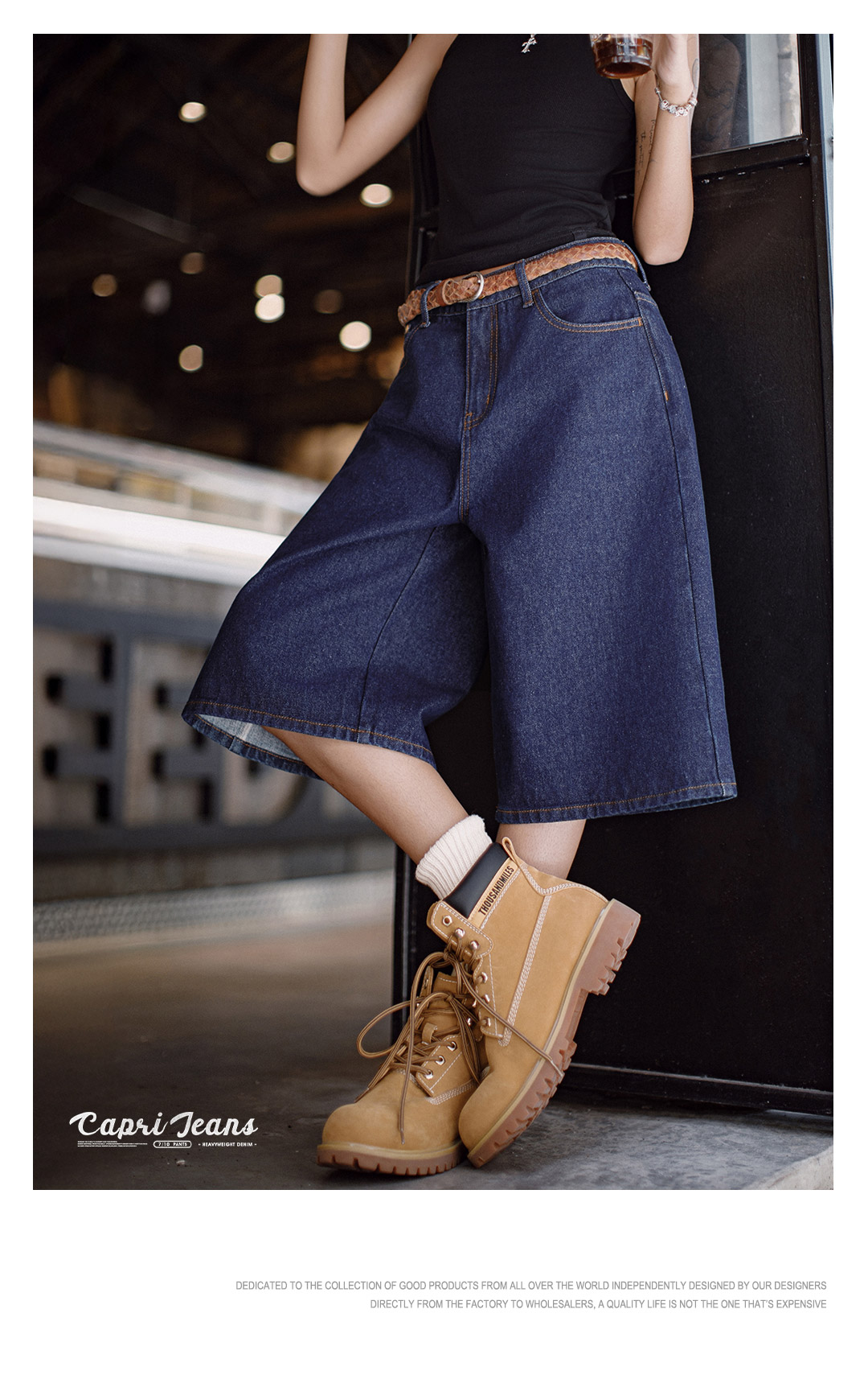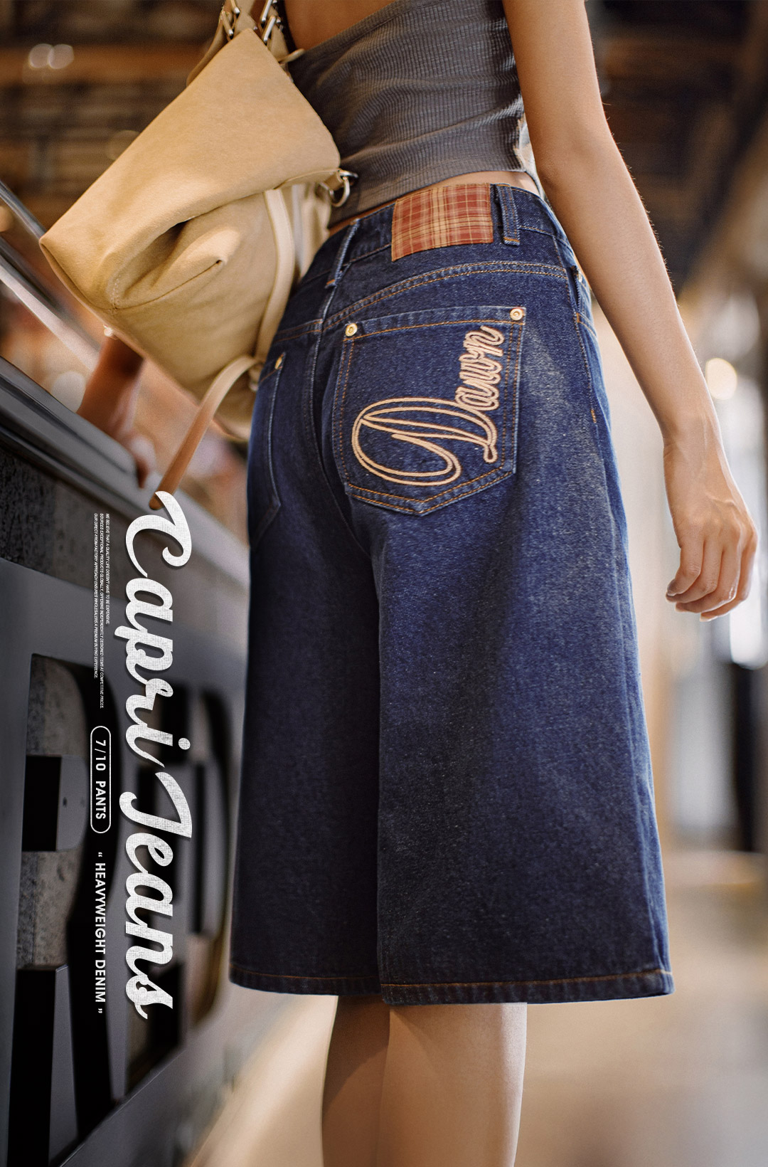 马登夏日复古深蓝丹宁牛仔七分裤新款阔腿显瘦小个子修腿型裤子女