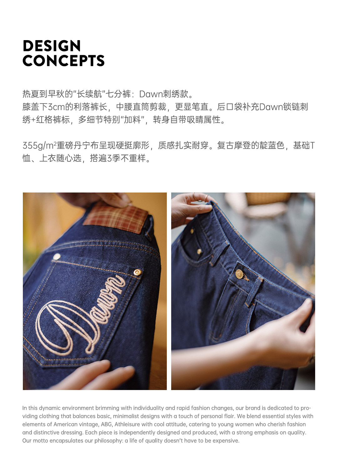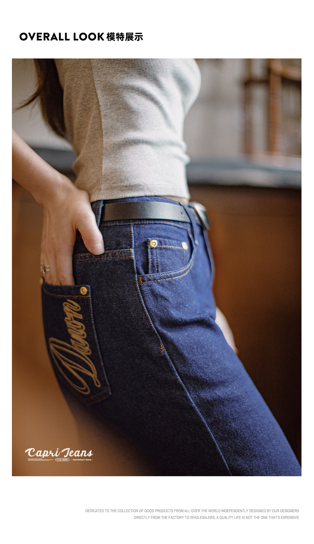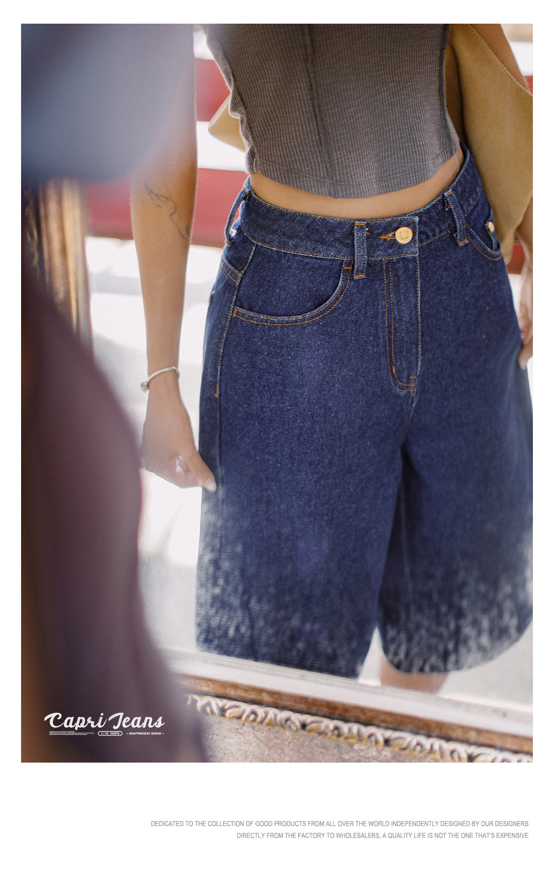 马登夏日复古深蓝丹宁牛仔七分裤新款阔腿显瘦小个子修腿型裤子女