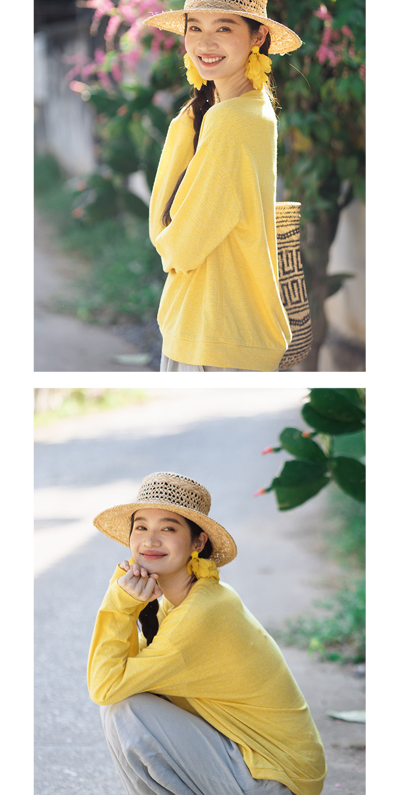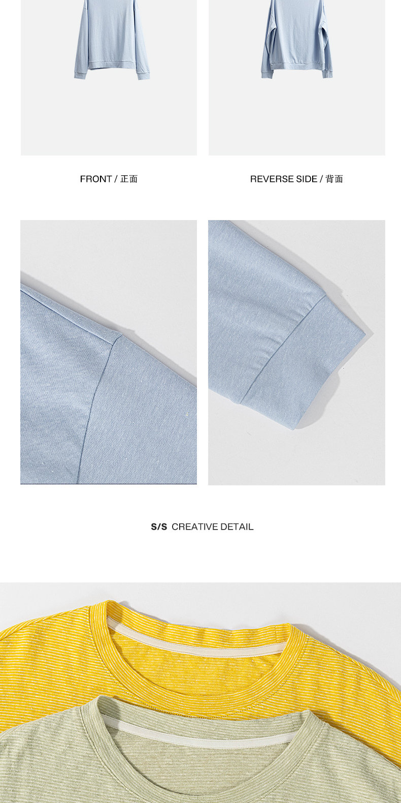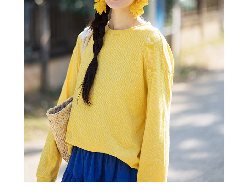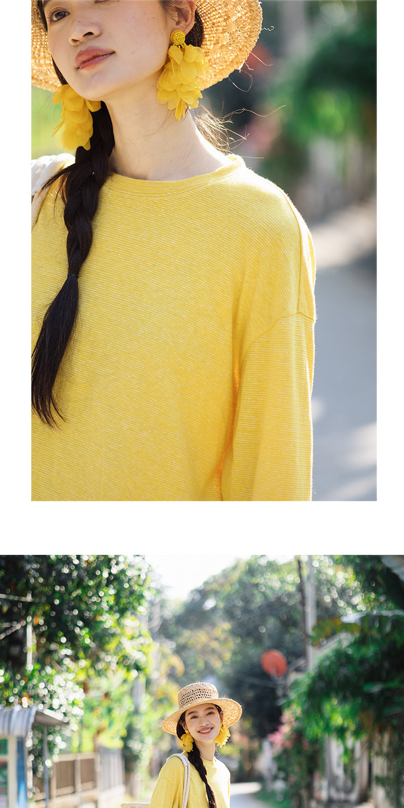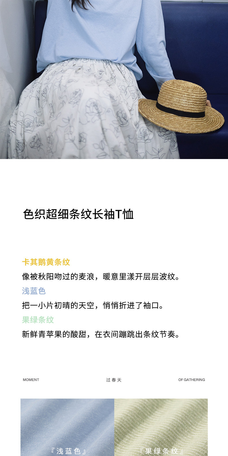 特绽放139朵/花的名字·圆领色织超细条纹落肩长袖卫衣版型T恤女