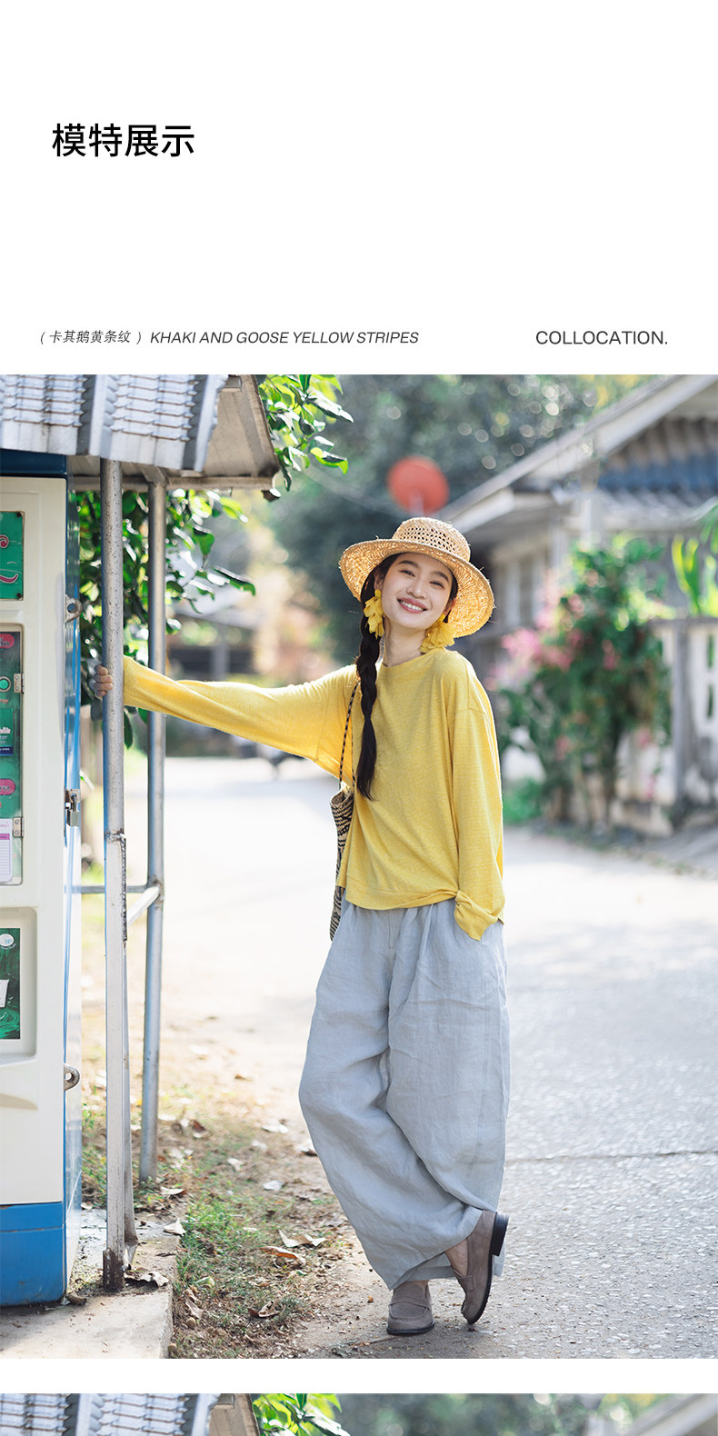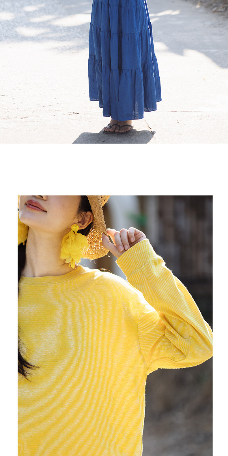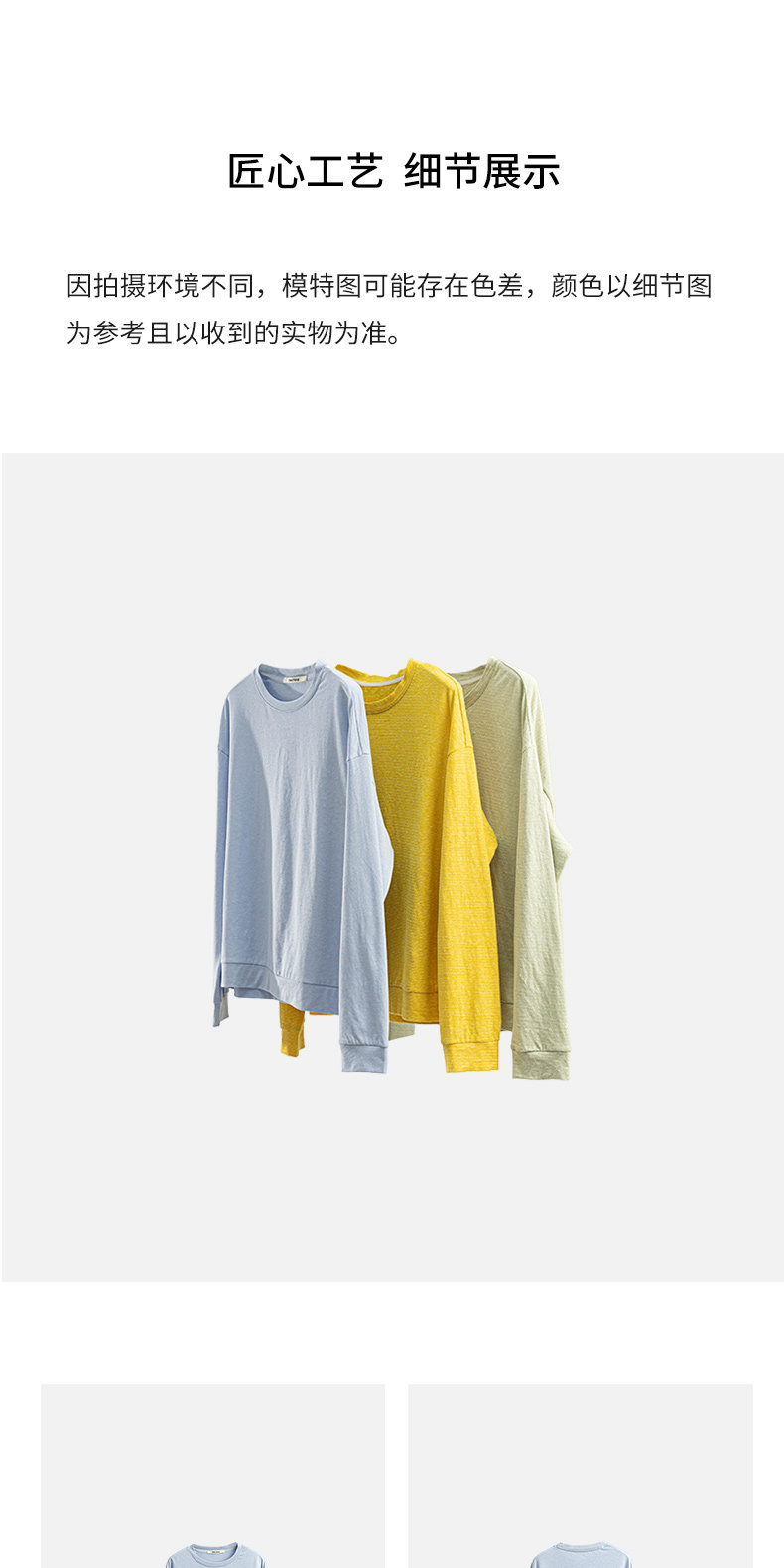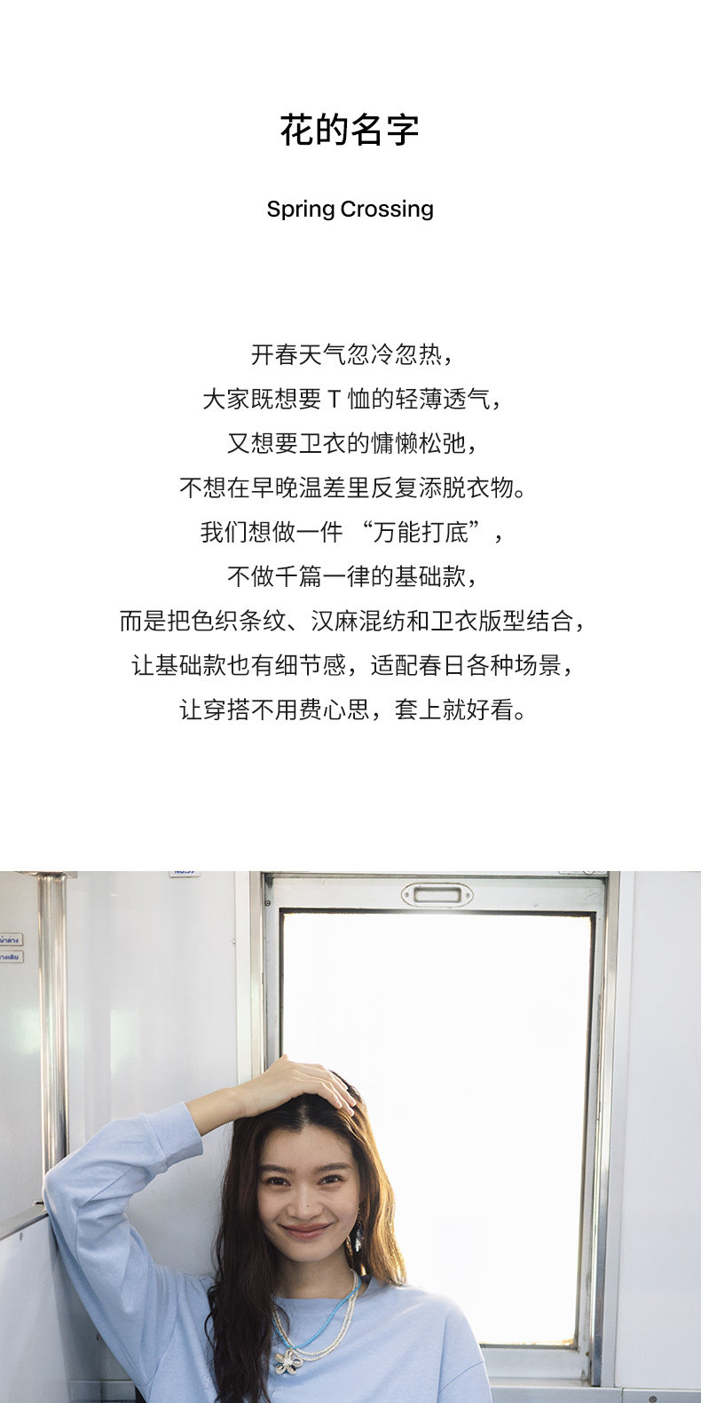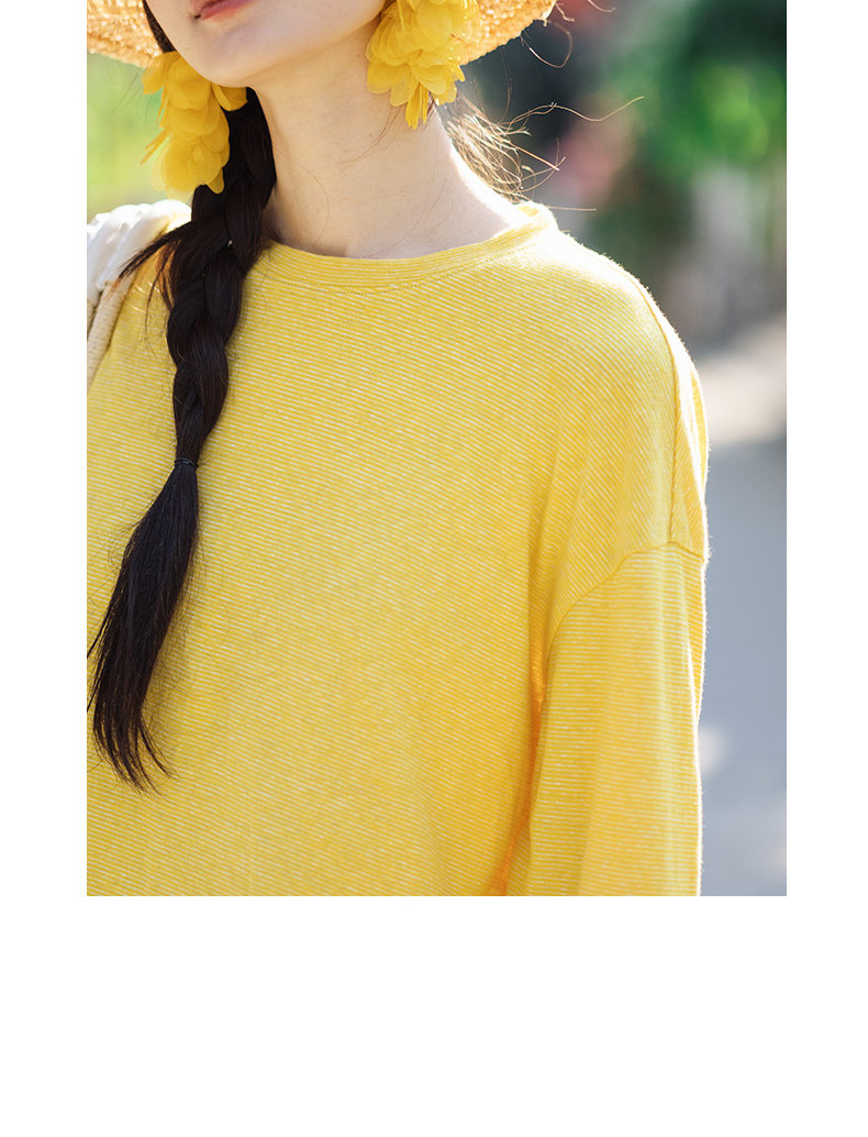 特绽放139朵/花的名字·圆领色织超细条纹落肩长袖卫衣版型T恤女