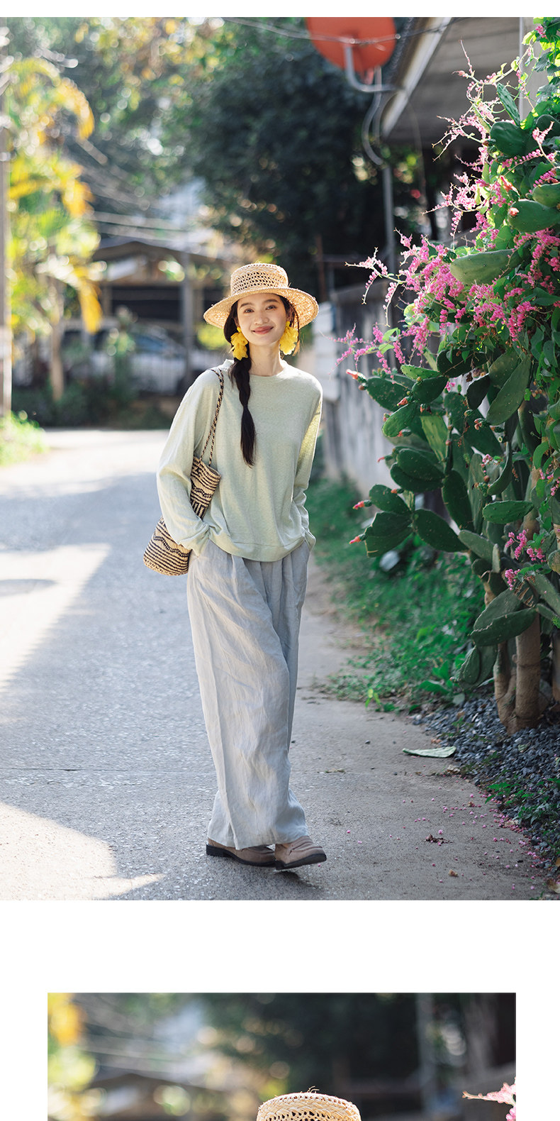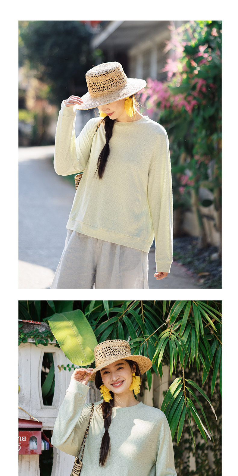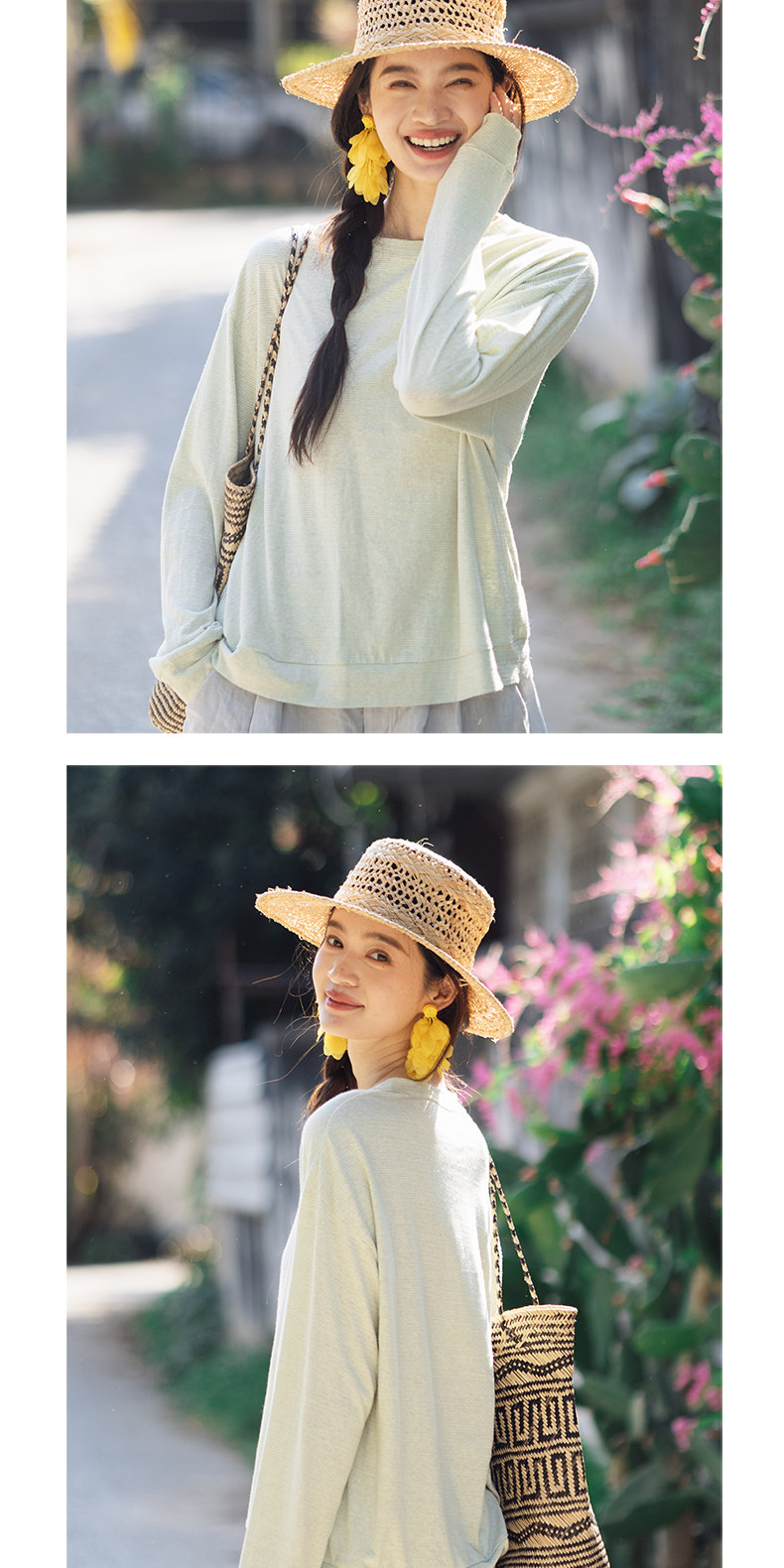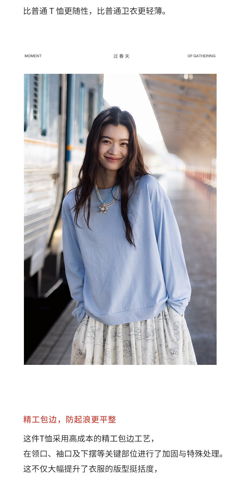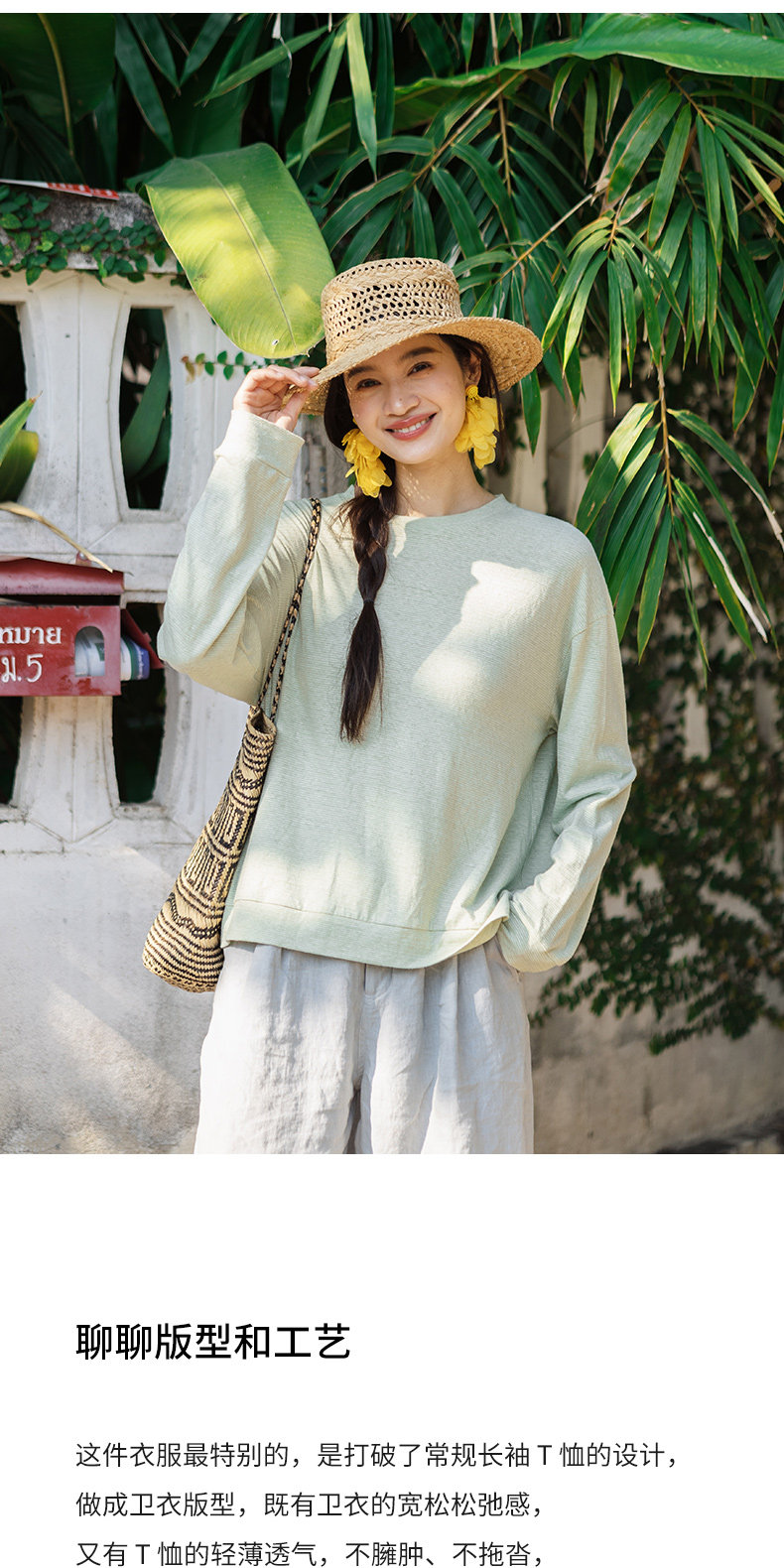 特绽放139朵/花的名字·圆领色织超细条纹落肩长袖卫衣版型T恤女