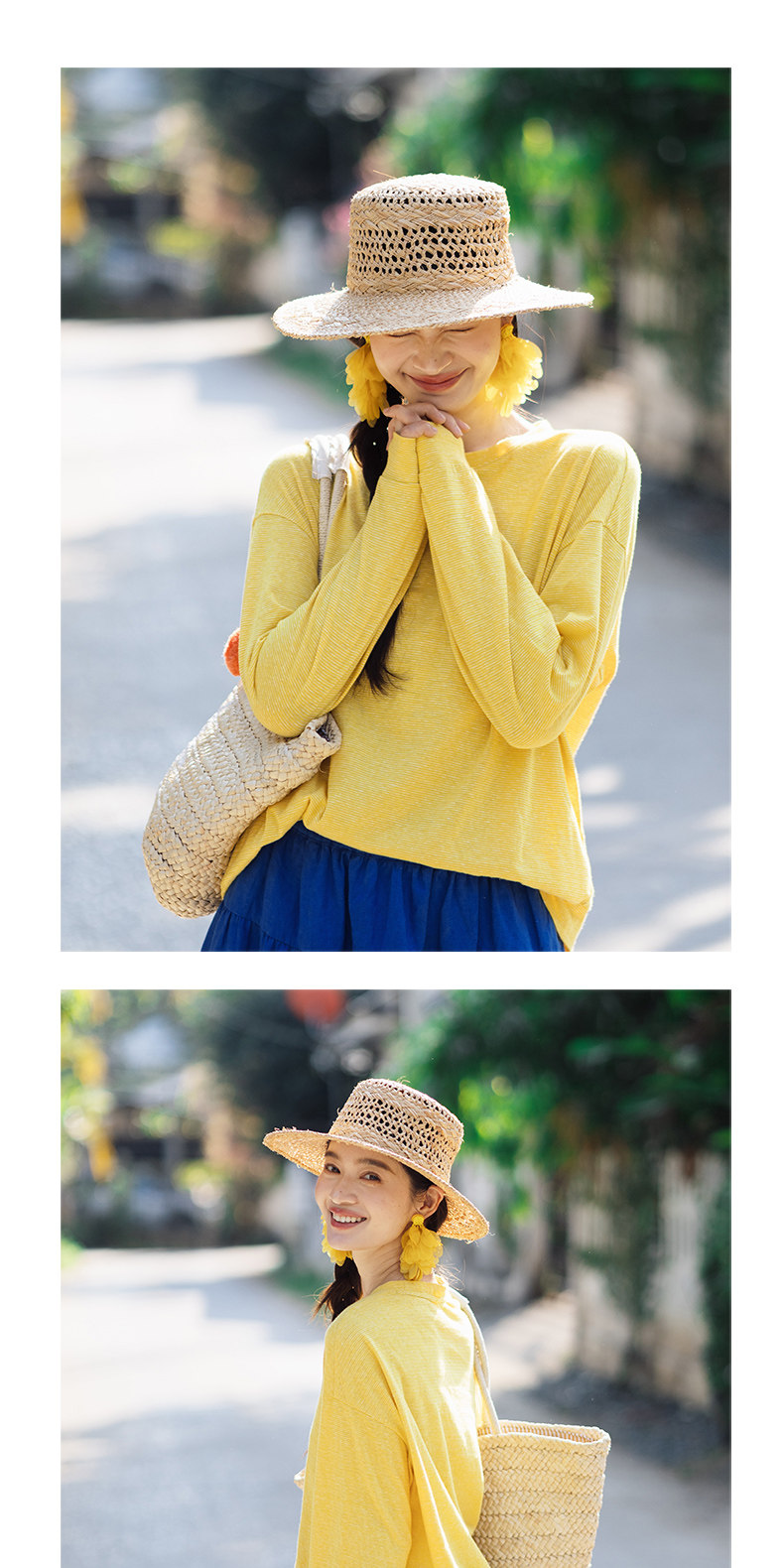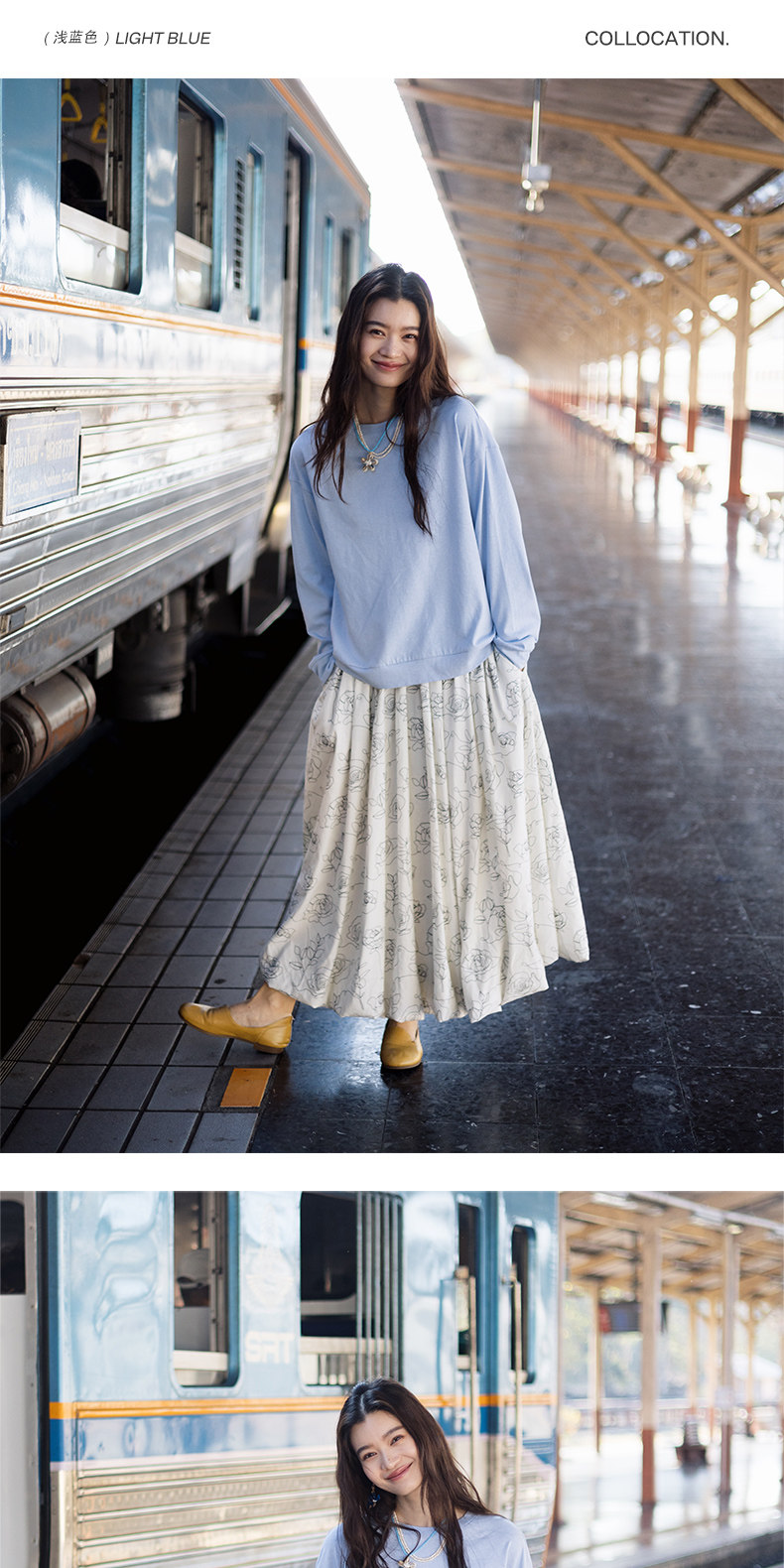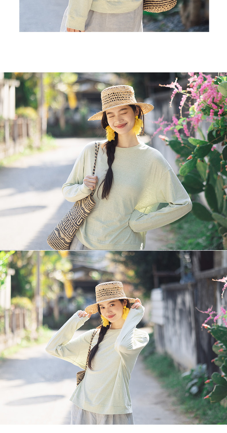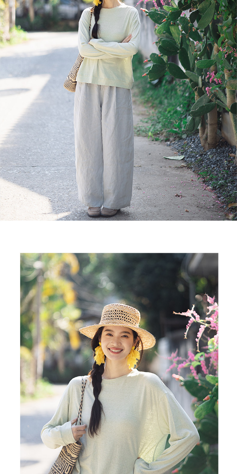 特绽放139朵/花的名字·圆领色织超细条纹落肩长袖卫衣版型T恤女