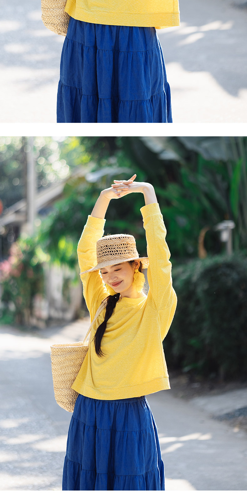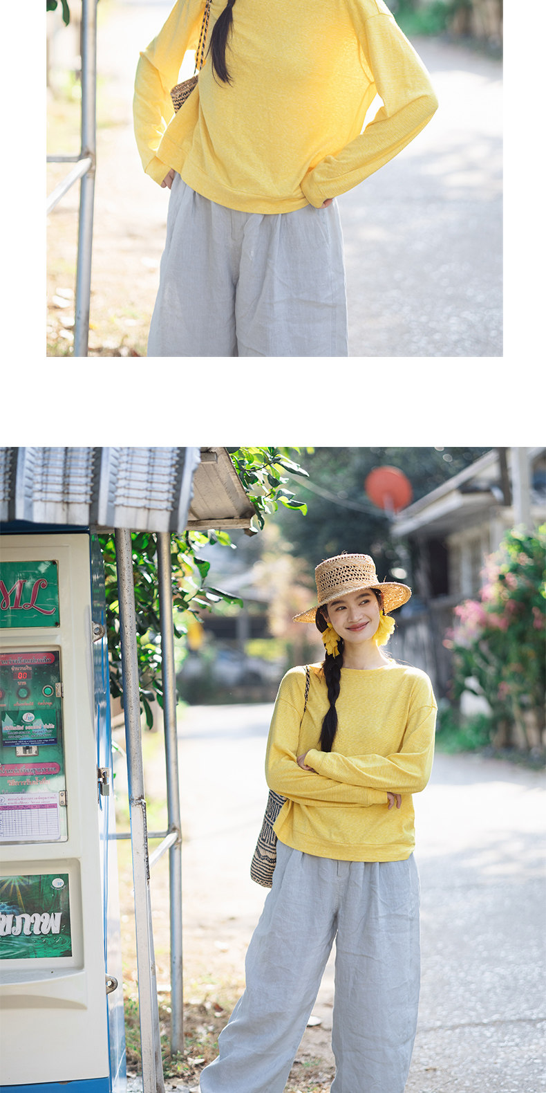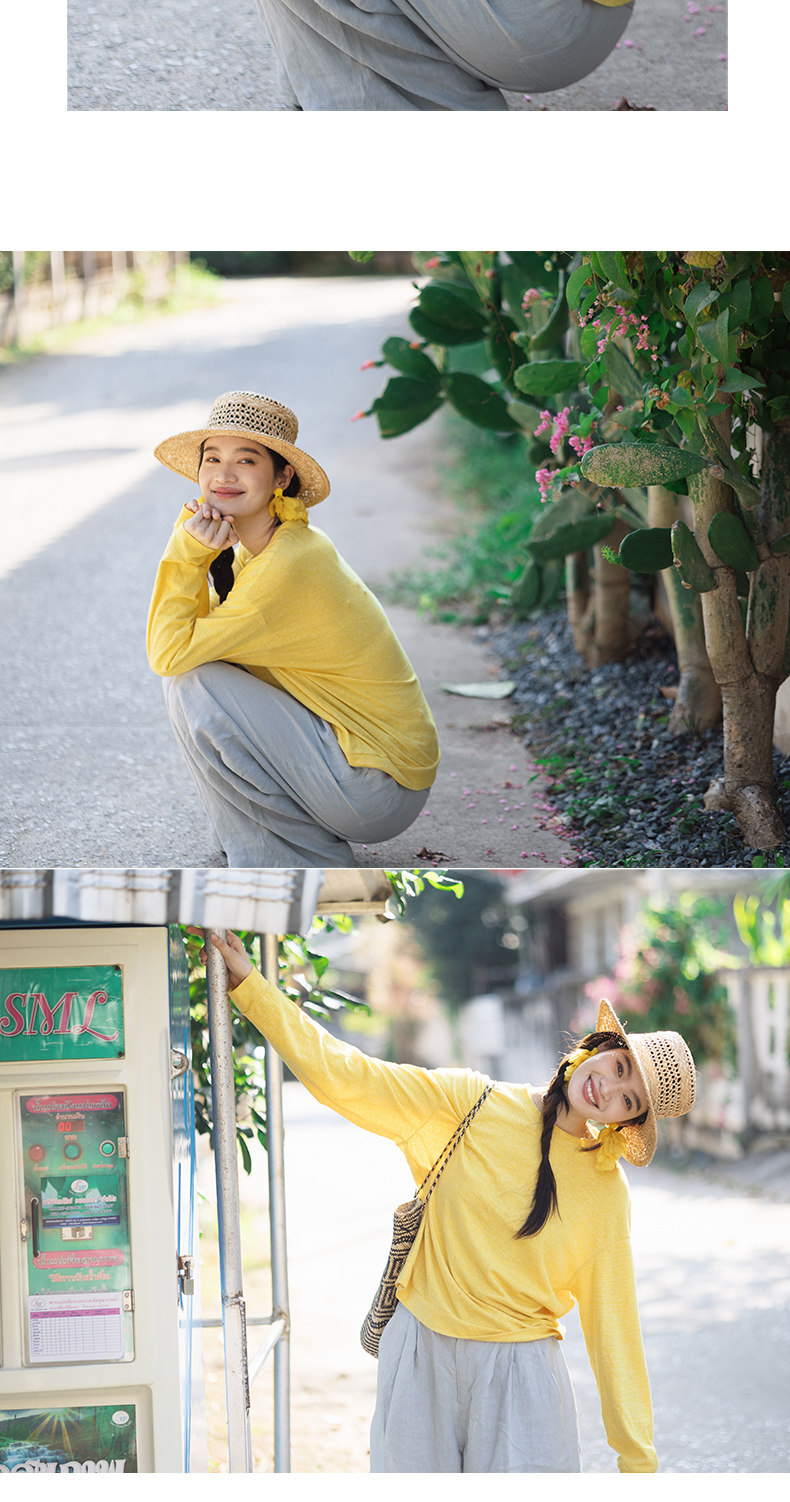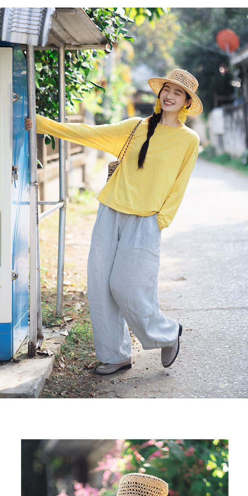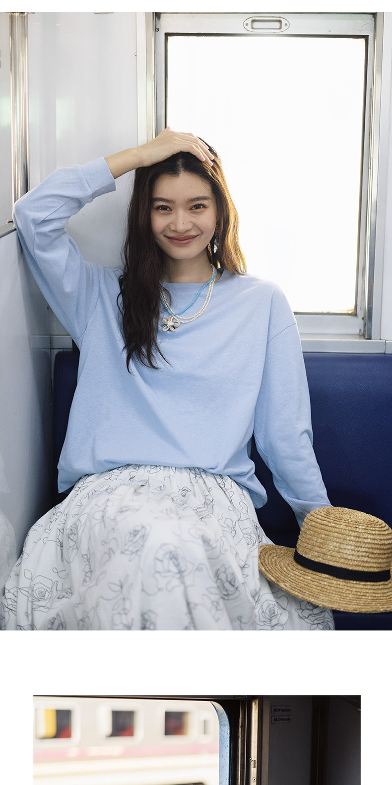 特绽放139朵/花的名字·圆领色织超细条纹落肩长袖卫衣版型T恤女
