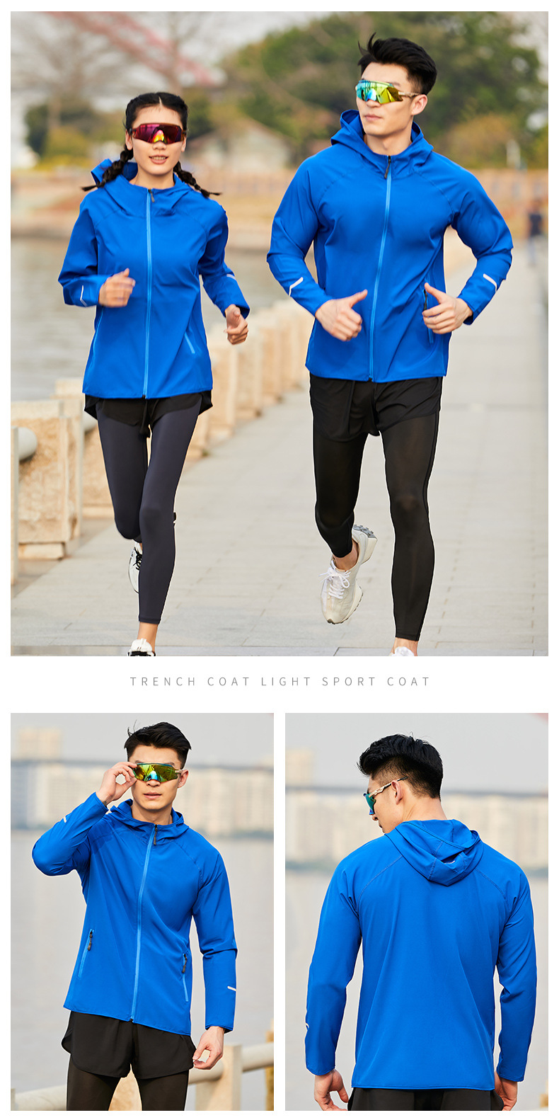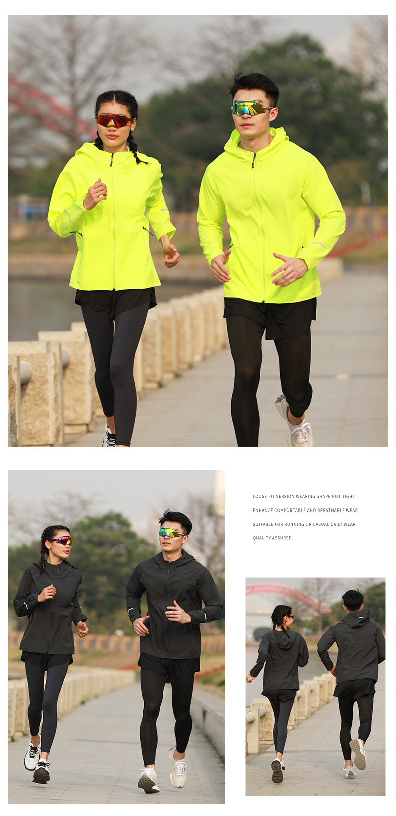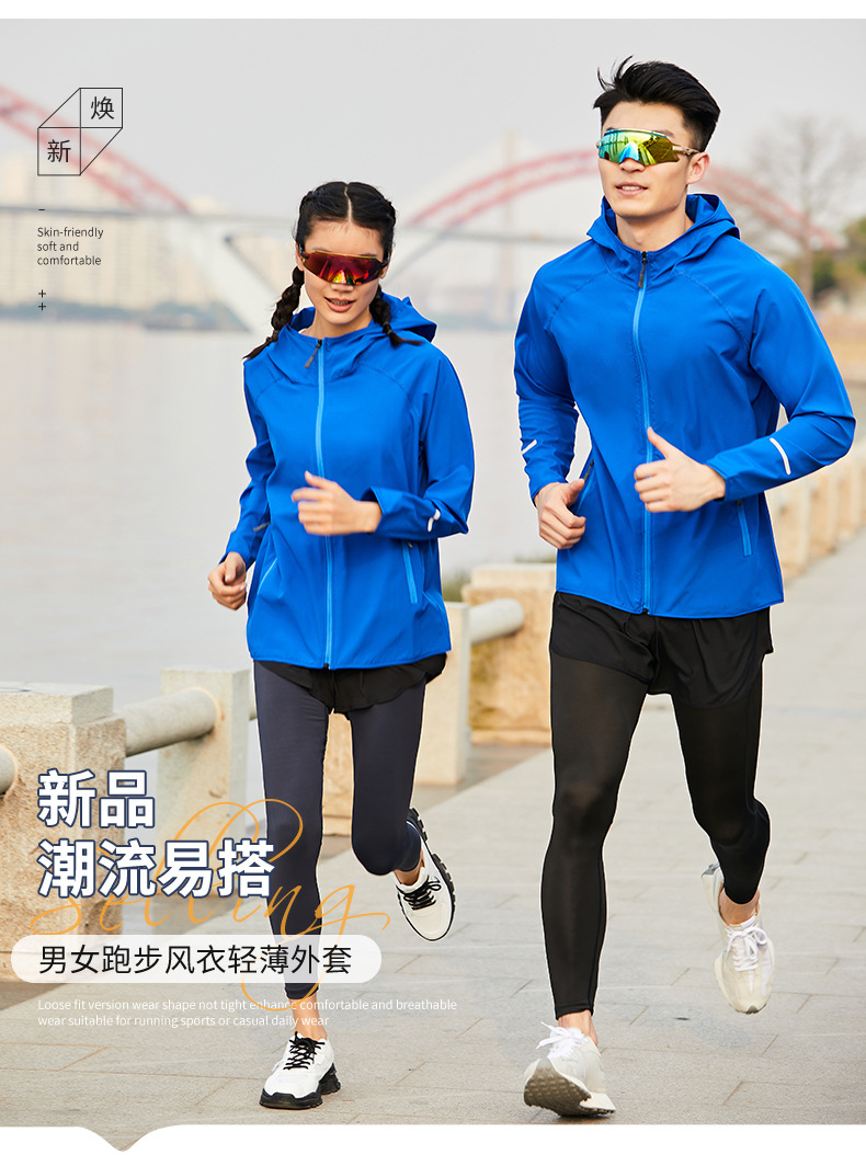 【商城特惠69元】菲路普跑步风衣轻薄透气运动外套春秋季四面弹户外长袖拉链帽衫荧光男女